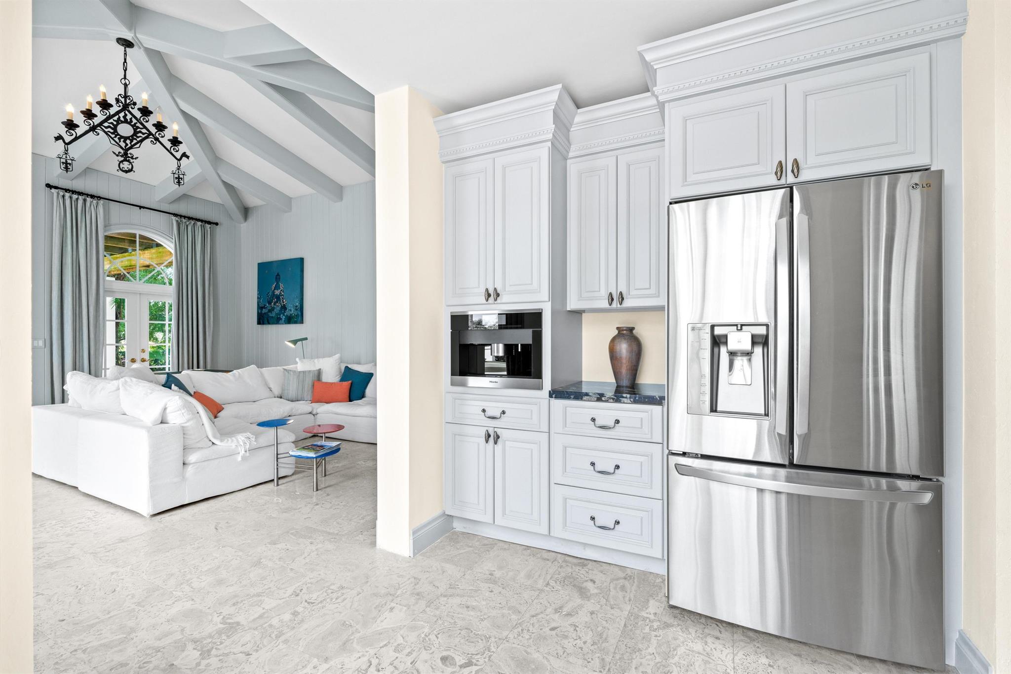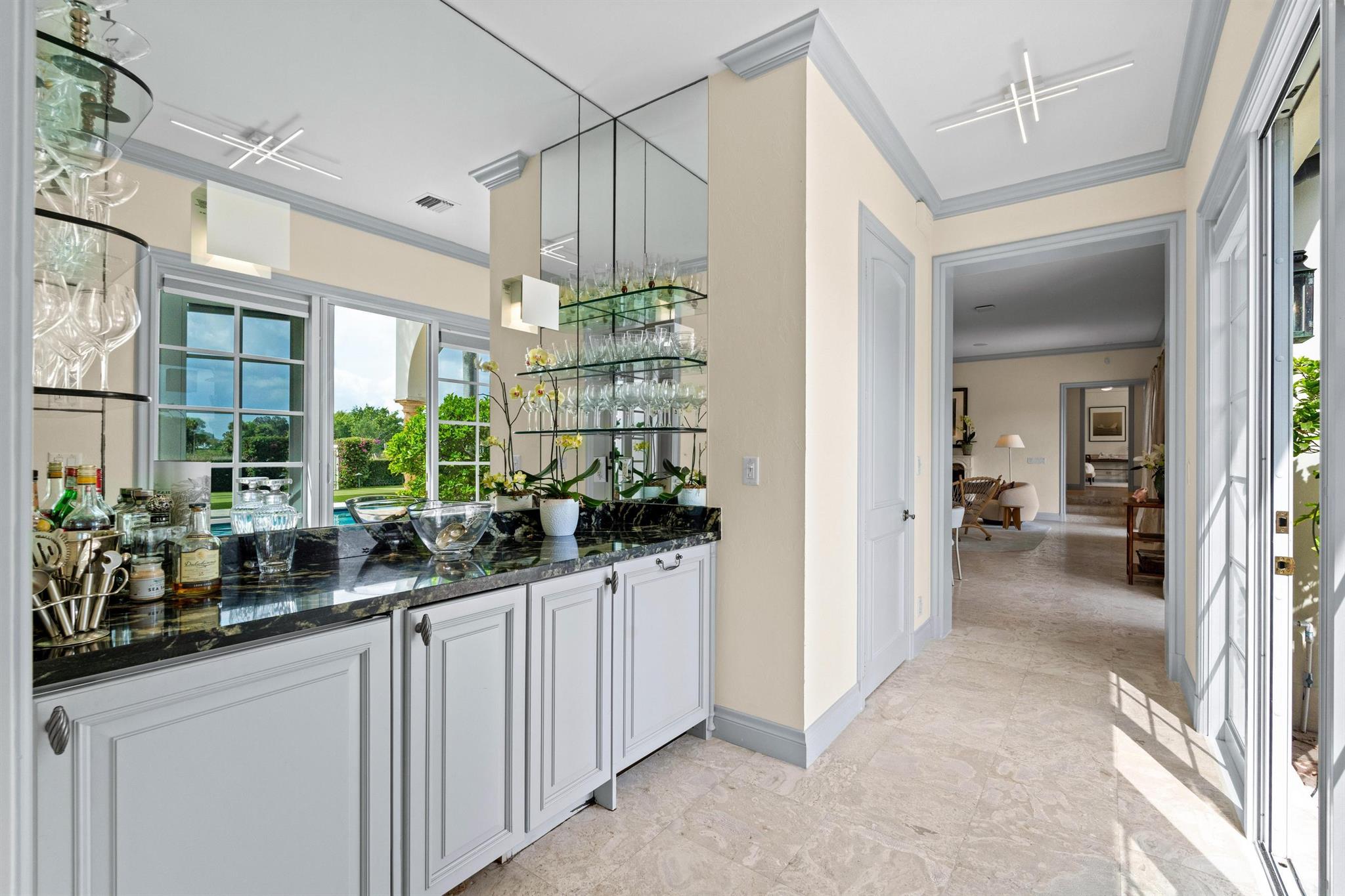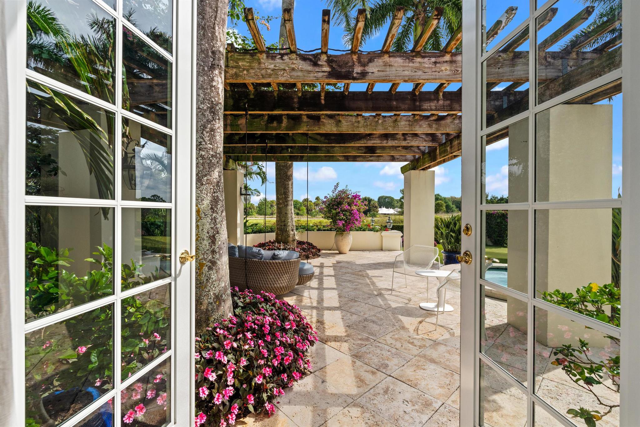Luxury meets timeless elegance in this stunning 5-bedroom, 6.1-bath estate in the Palm Beach Polo Club, surrounded by lush tropical landscaping and serene preserve views. From the moment you enter through the private front courtyard, you'll be captivated by the European-inspired charm, marble and wood flooring, and abundant natural light streaming through custom shutters and French doors. The thoughtfully designed floor plan offers a 3-way bedroom split for ultimate privacy. The primary suite is conveniently located on the main floor, featuring direct access to a tranquil sitting area under a pergola by the pool. Upstairs, two bedrooms and two baths overlook the preserve from a private balcony, while an additional two-bedroom, two-bath guest suite sits above the 3-car garage,