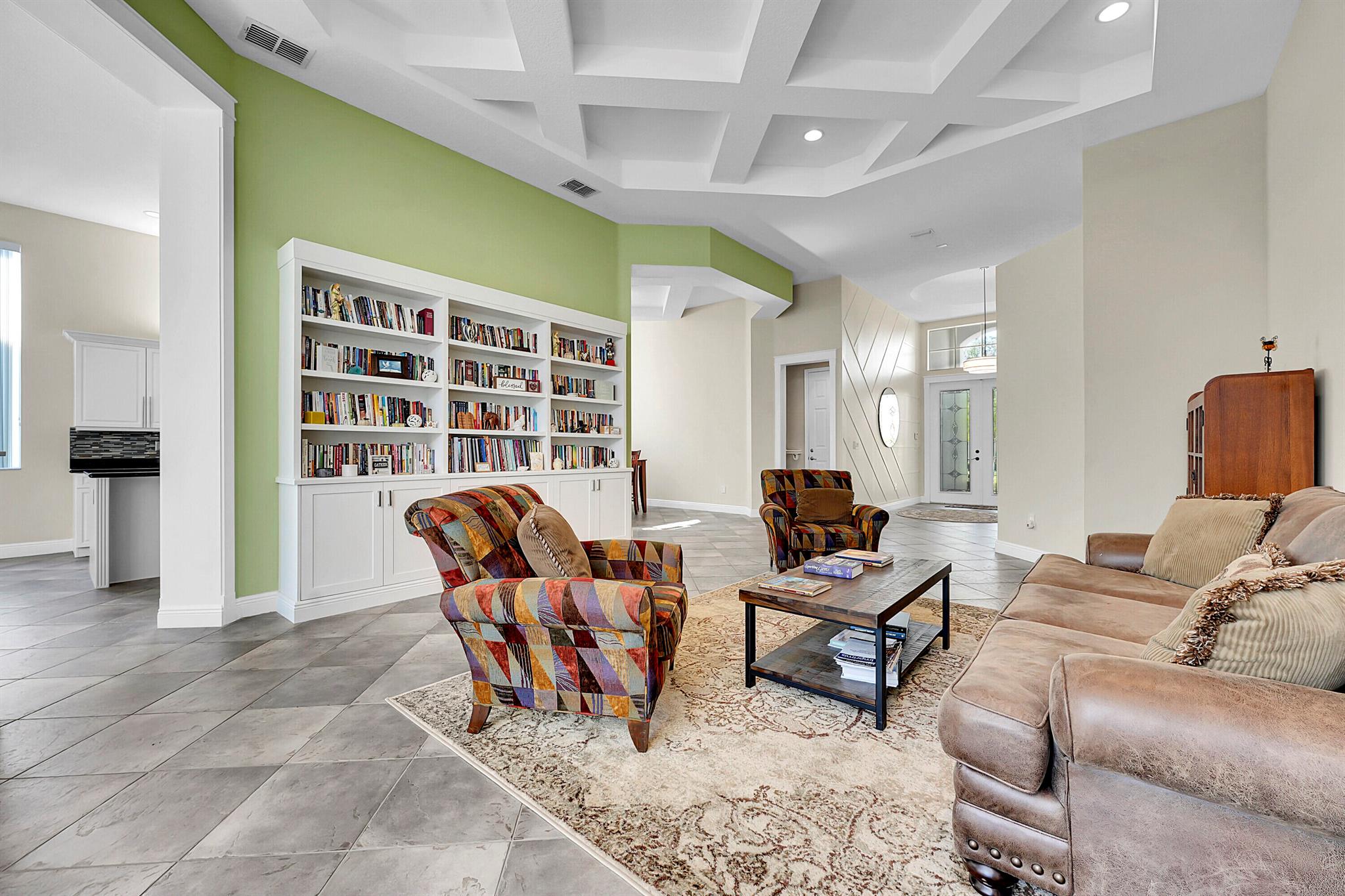 Beautiful 4BR, 3.5BA home in gated Town Park at Tradition with a spacious 19' x 19' bonus room--ideal as a 5th bedroom or recreation space. The grand foyer opens to a great room with coffered ceilings, crown molding, and a screened lanai overlooking preserve views. Gourmet kitchen features stainless steel appliances and double ovens, flowing into the family room. The luxurious primary suite offers dual walk-in closets, double vanities, tiled shower, and soaking tub. Community amenities include pool, clubhouse, tennis, pickleball, gym, and billiards. Recent upgrades: new AC (2025), 2024 water heater, exterior paint, patio, kitchen paint, custom bookcase, trim, roof cleaned, and backyard palms.