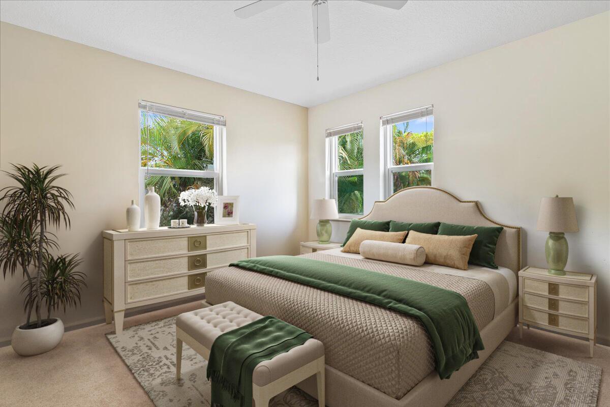 Discover the perfect blend of comfort and convenience in this stunning 3-bedroom, 2.5-bath which has the MASTER Bedroom on the 1st level with a private bathroom and walk in closets. Recent updates, including a new roof, AC, and hot water heater and you'll never be caught off guard again with a whole-house generator hookup, providing peace of mind during power outages. 24/7 guarded security, onsite management, fitness center, tennis, pickleball, basketball, playground, card rooms, theater, game room, shuffleboard, BBQ Grills & huge pool area w/ Jacuzzi. HOA dues include landscaping, internet & cable & it's all managed by a dedicated activity director. Plus, enjoy the convenience of lawn, cable & internet all included in your monthly HOA. Schedule a tour today!