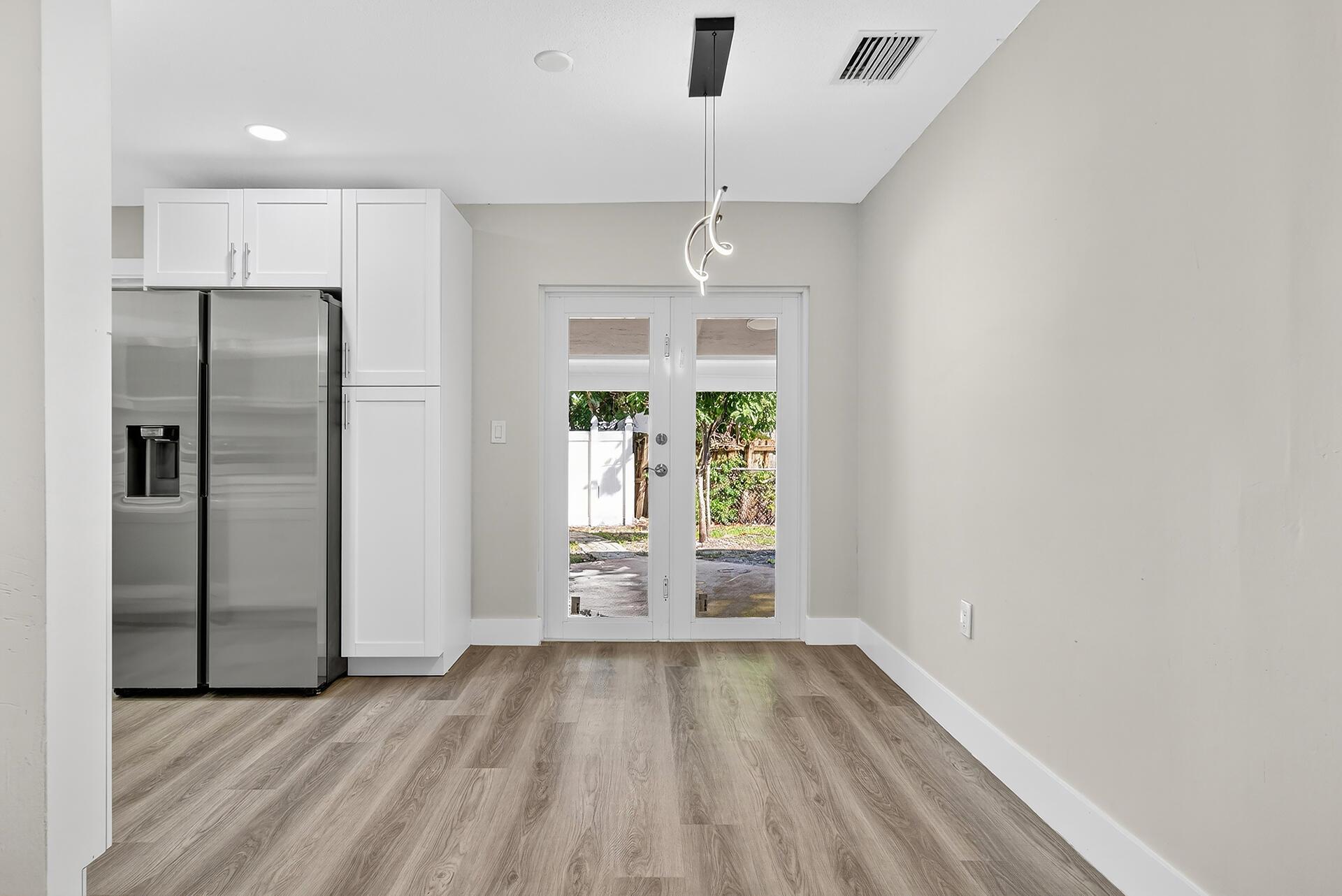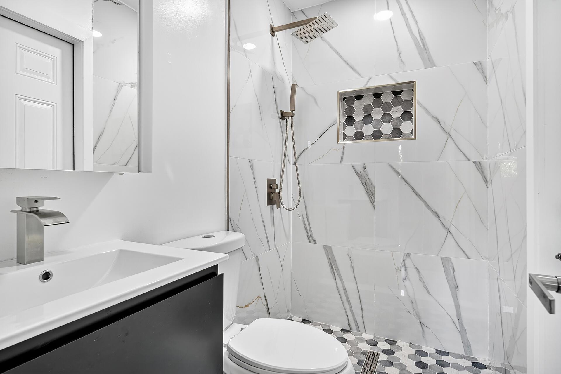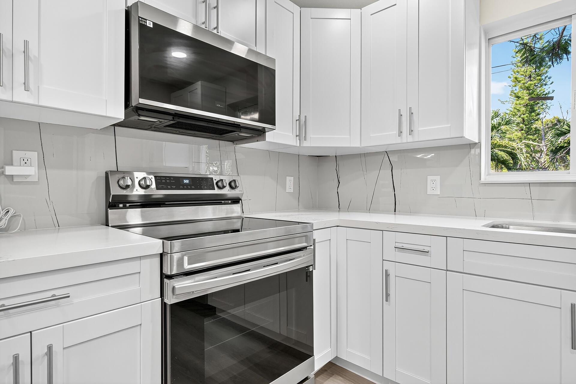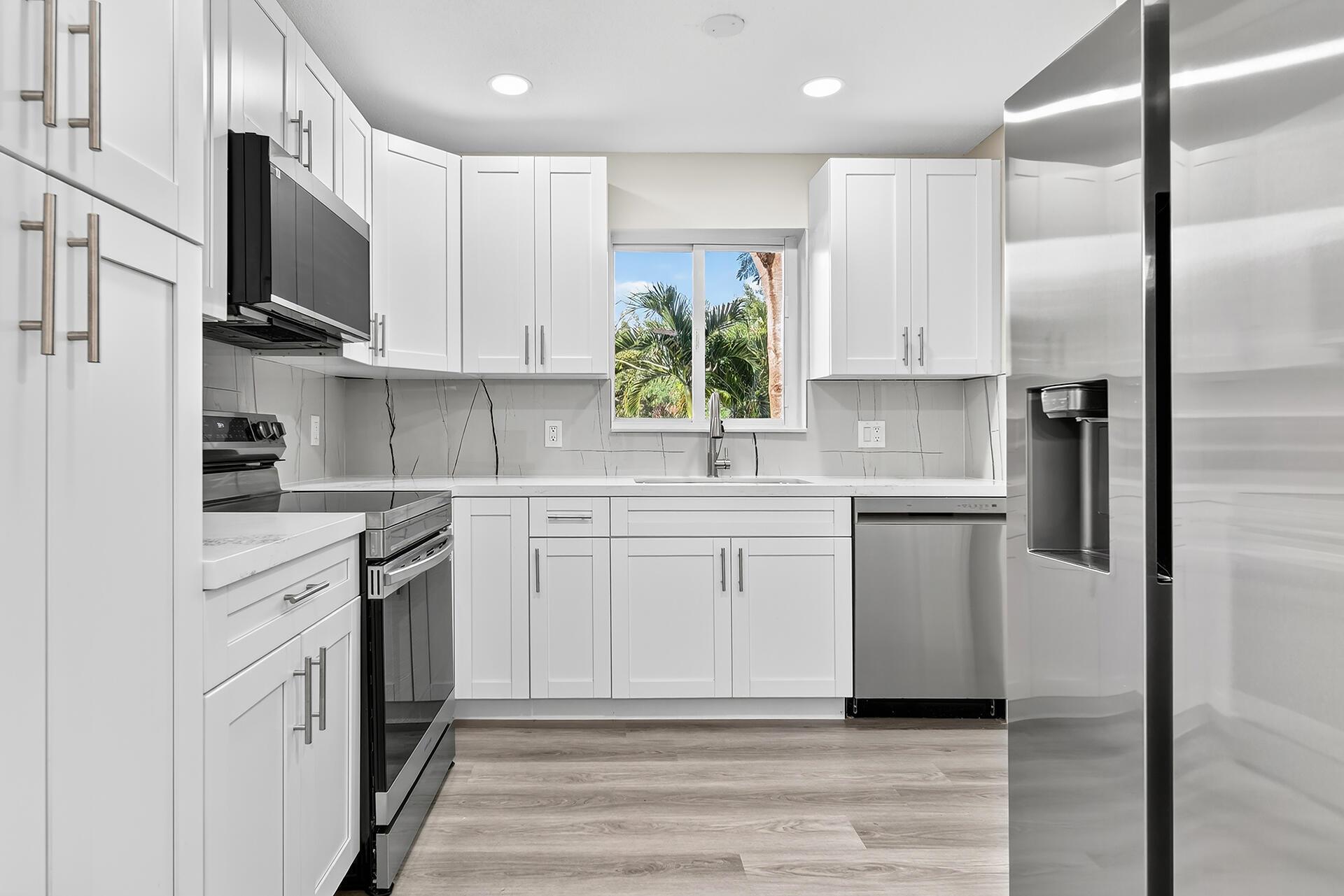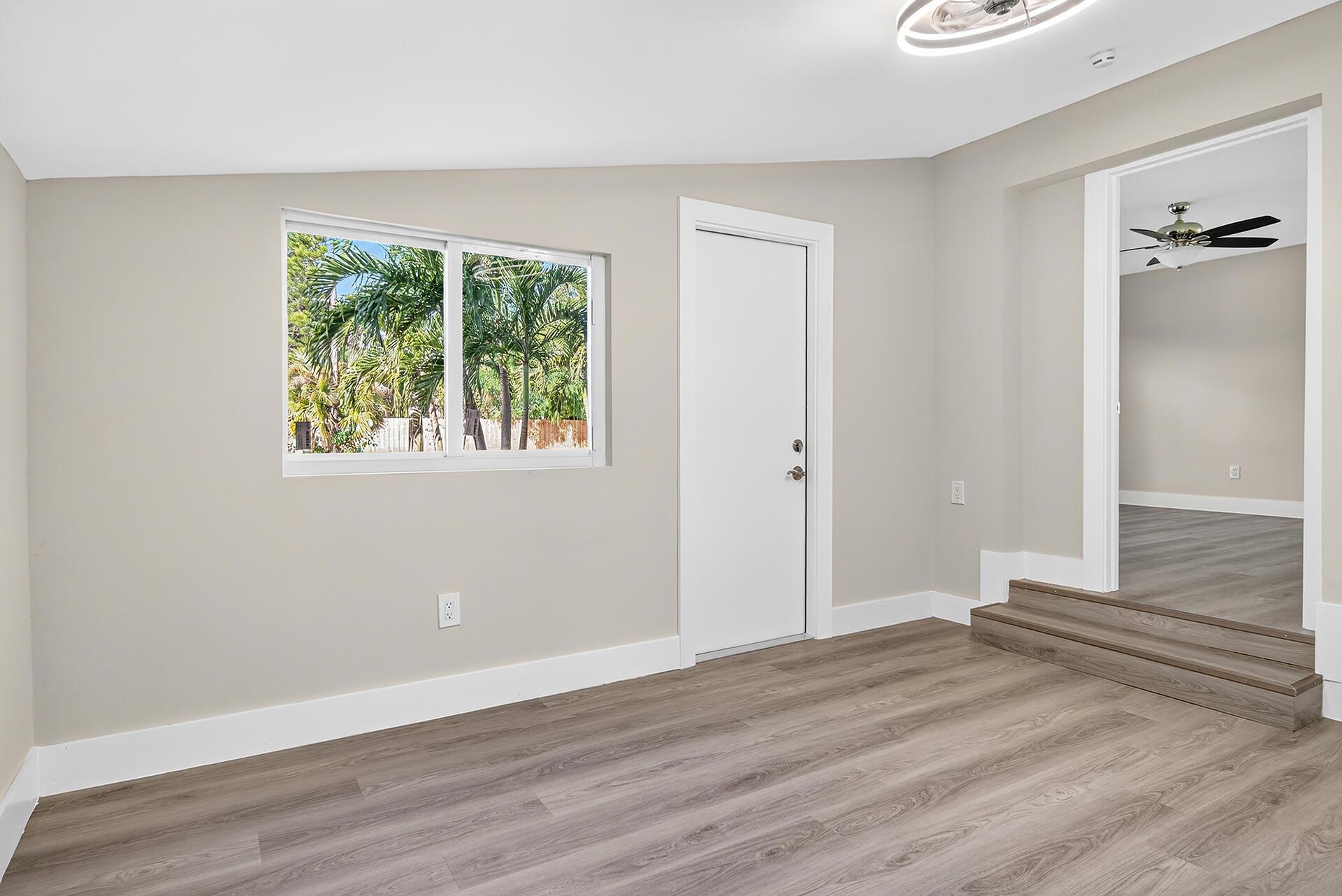 Don't miss the opportunity to live in the heart of WPB, make this house your home, use it as rental income, or both. NO HOA. Fully renovated, featuring a newer roof ('19), water heater ('21), HVAC ('24), and brand-new impact windows. The modern kitchen features new shaker cabinets, elegant quartz countertops, and a porcelain backsplash, complemented by new Samsung appliances and a LG dishwasher ('24). All baths were updated with contemporary finishes. New vinyl flooring, recessed lighting, painted inside and out, and a new driveway. Enjoy the convenience of two side entrances, for guests or potential rental income. Spacious backyard, with a Shed, mango trees, and room for a pool. Includes security cameras. Located near the airport, shopping, dining, and highways. Move-in ready!