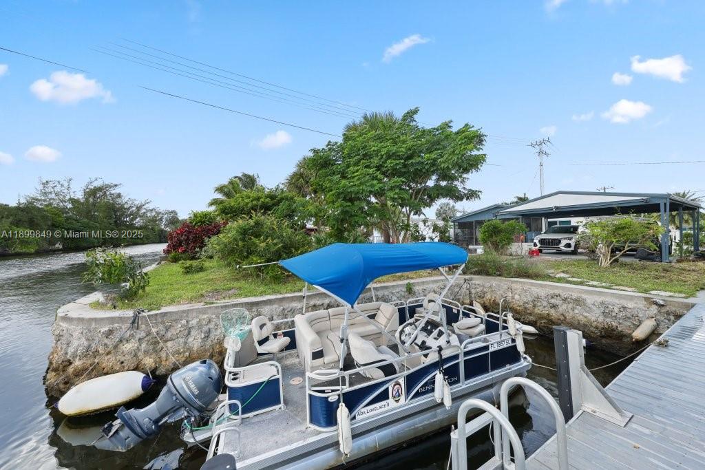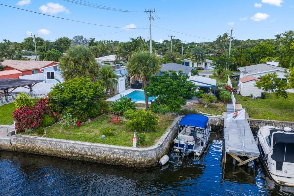 Upscale WATERFRONT home with mid-century flair in the hidden gem of Melaleuca Gardens! Enjoy total privacy on a spacious lot with an open concept layout, marble floors, high-end European cabinets, and massive windows flooding the space with natural light. Versatile den with attached bath can easily convert to a 2nd bedroom. Kitchen is perfect for entertaining with ample storage. Remodel in the last few years include roof, paint, impact/soundproof windows & doors, electrical panel, and A/C ducts, Heated pool and water heater. Relax on the screened porch or dock your boat (fits 45'+) at the shared dock with 100 feet of seawall. For boaters - Ocean access minutes to intercoastal and inlet. Beautiful gardens. Boat/RV parking, carport. Close to the airport, shopping, beach, dining & more!