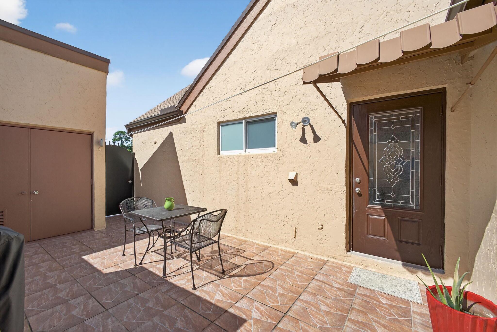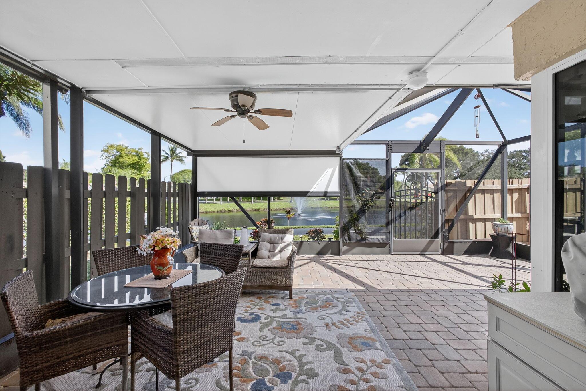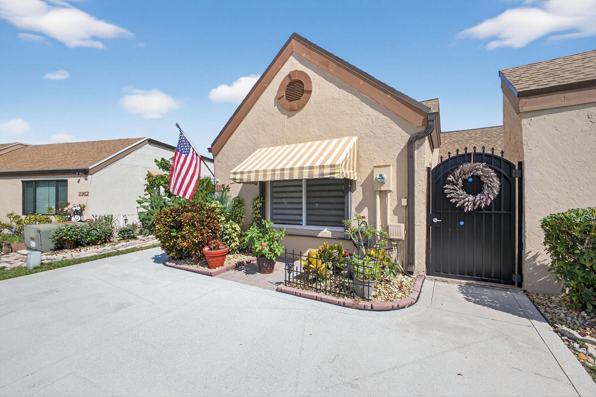 Welcome to 11154 Curry Drive! One of the nicest villas in the Gardens of Woodberry conveniently located off PGA Blvd W of I-95 & E of Turnpike. Meticulously maintained end unit where you will experience quality upgrades and renovations. Effortless move-in living. New 2025 Roof and gutters, impact windows and sliding doors. new air conditioner, hw heater, new interior doors, freshly painted interior and exterior. Recently renovated Wood kitchen with granite counters features 2025 GE stainless steel appliances. No Carpet - all porcelain tile throughout. Relax on the screen enclosed patio and lanai with beautiful water view.. Screen room features a new remote electric sun/privacy shade. There is an additional private patio located off the kitchen with a storage room & new security gat