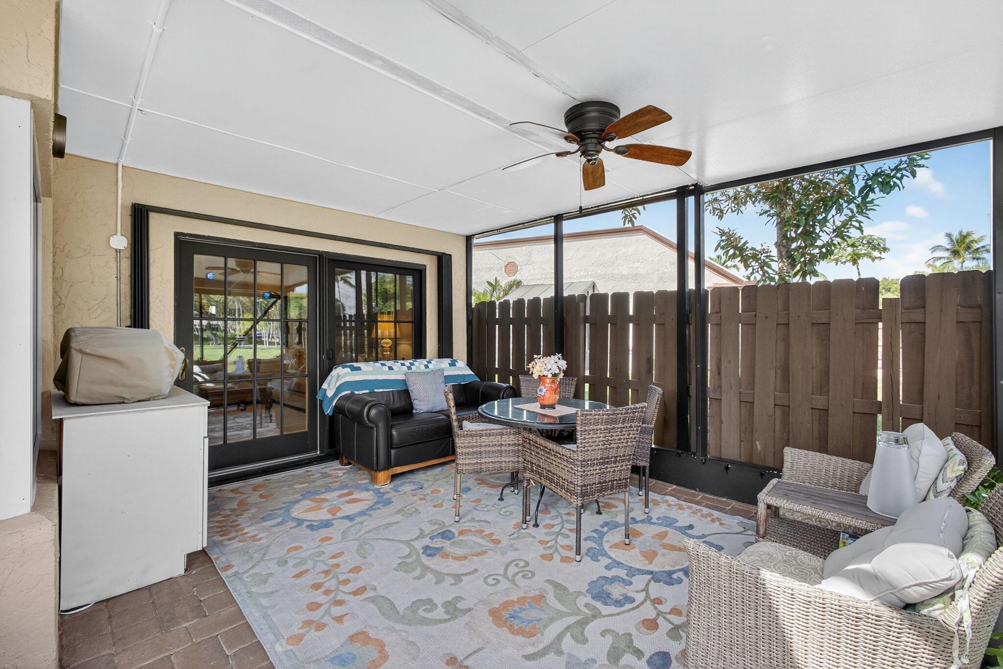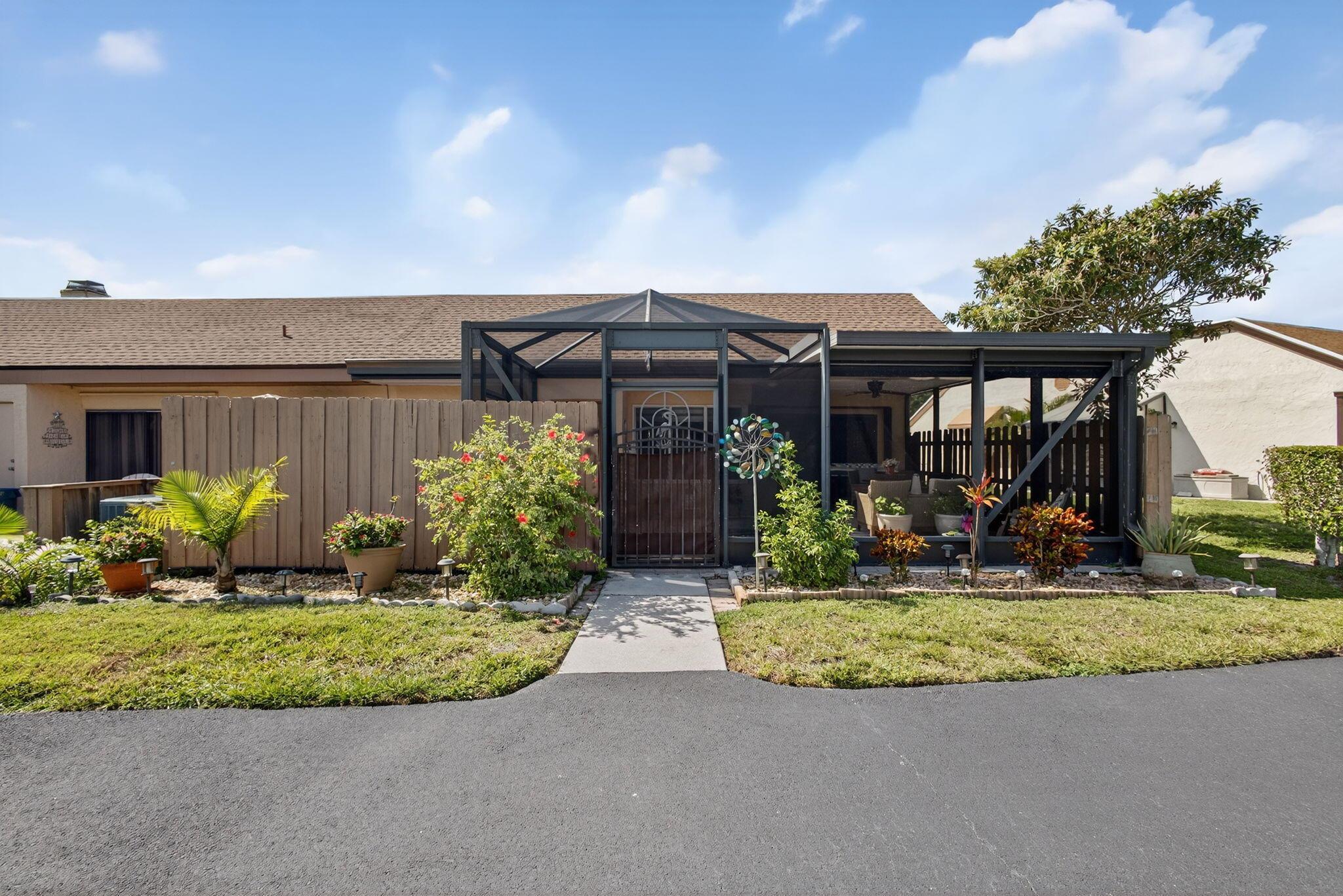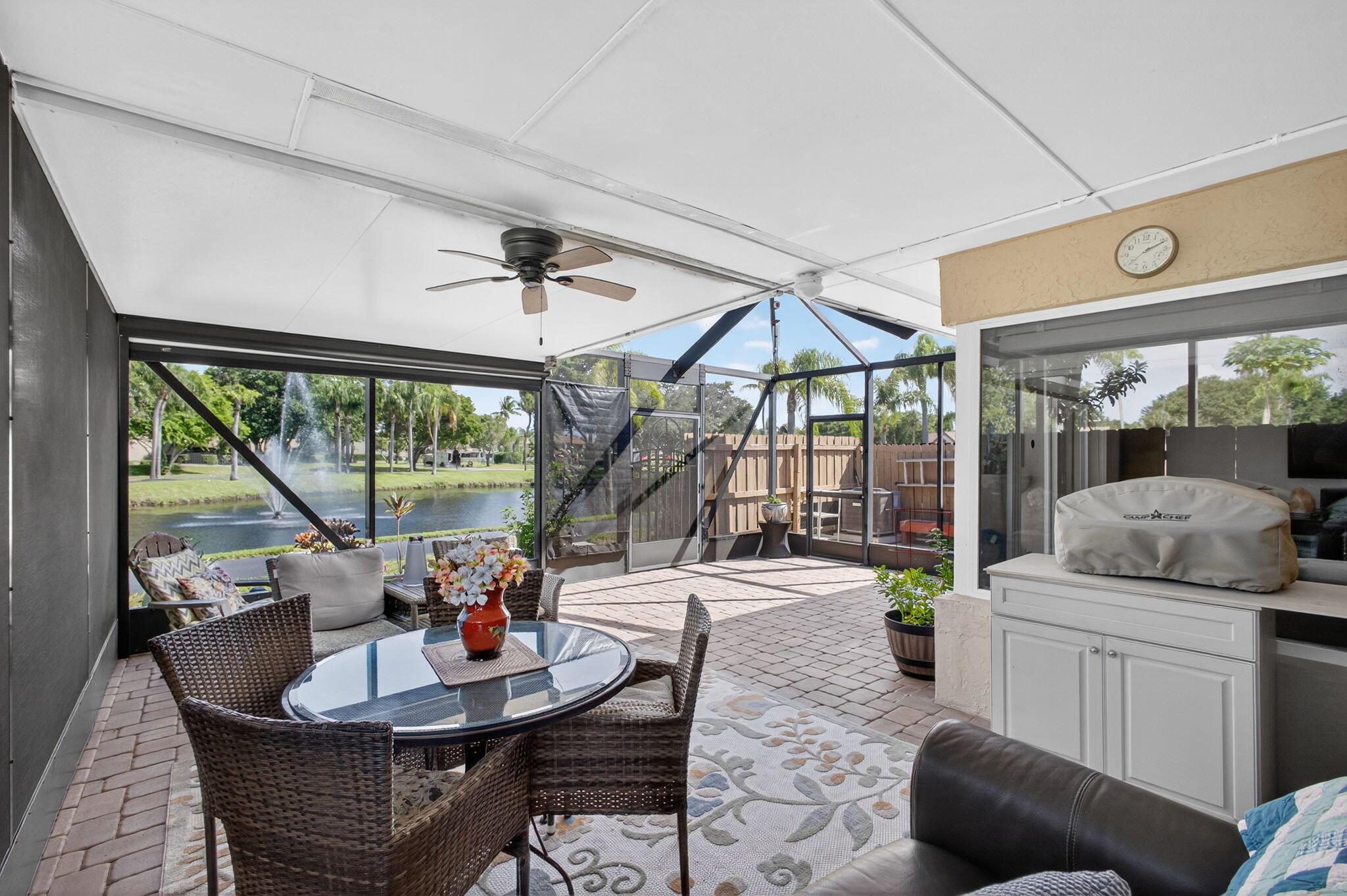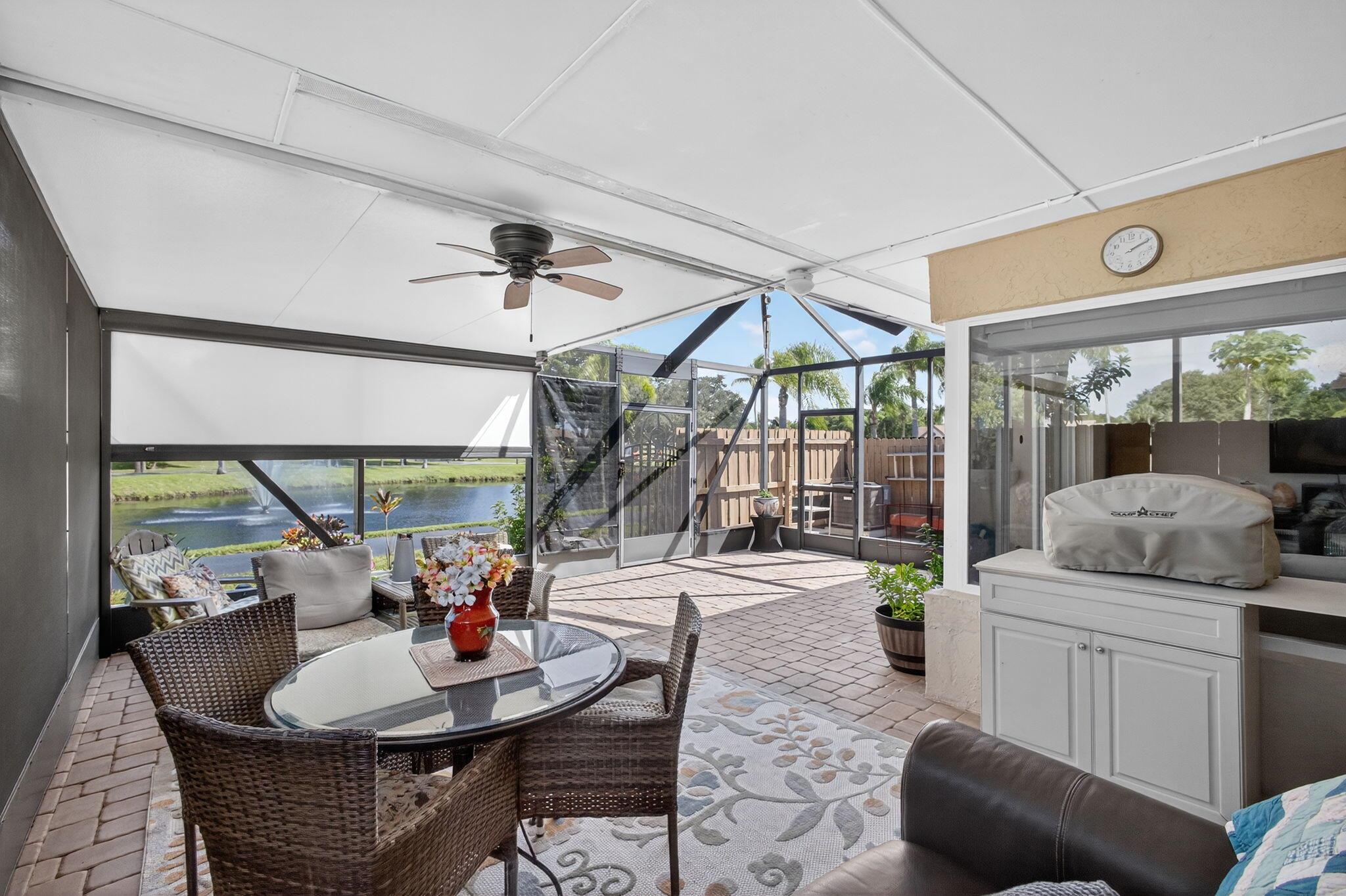 Welcome to 11154 Curry Drive! One of the nicest villas in the Gardens of Woodberry conveniently located off PGA Blvd W of I-95 & E of Turnpike. Meticulously maintained end unit where you will experience quality upgrades and renovations. Effortless move-in living. New 2025 Roof and gutters, impact windows and sliding doors. new air conditioner, hw heater, new interior doors, freshly painted interior and exterior. Recently renovated Wood kitchen with granite counters features 2025 GE stainless steel appliances. No Carpet - all porcelain tile throughout. Relax on the screen enclosed patio and lanai with beautiful water view.. Screen room features a new remote electric sun/privacy shade. There is an additional private patio located off the kitchen with a storage room & new security gat