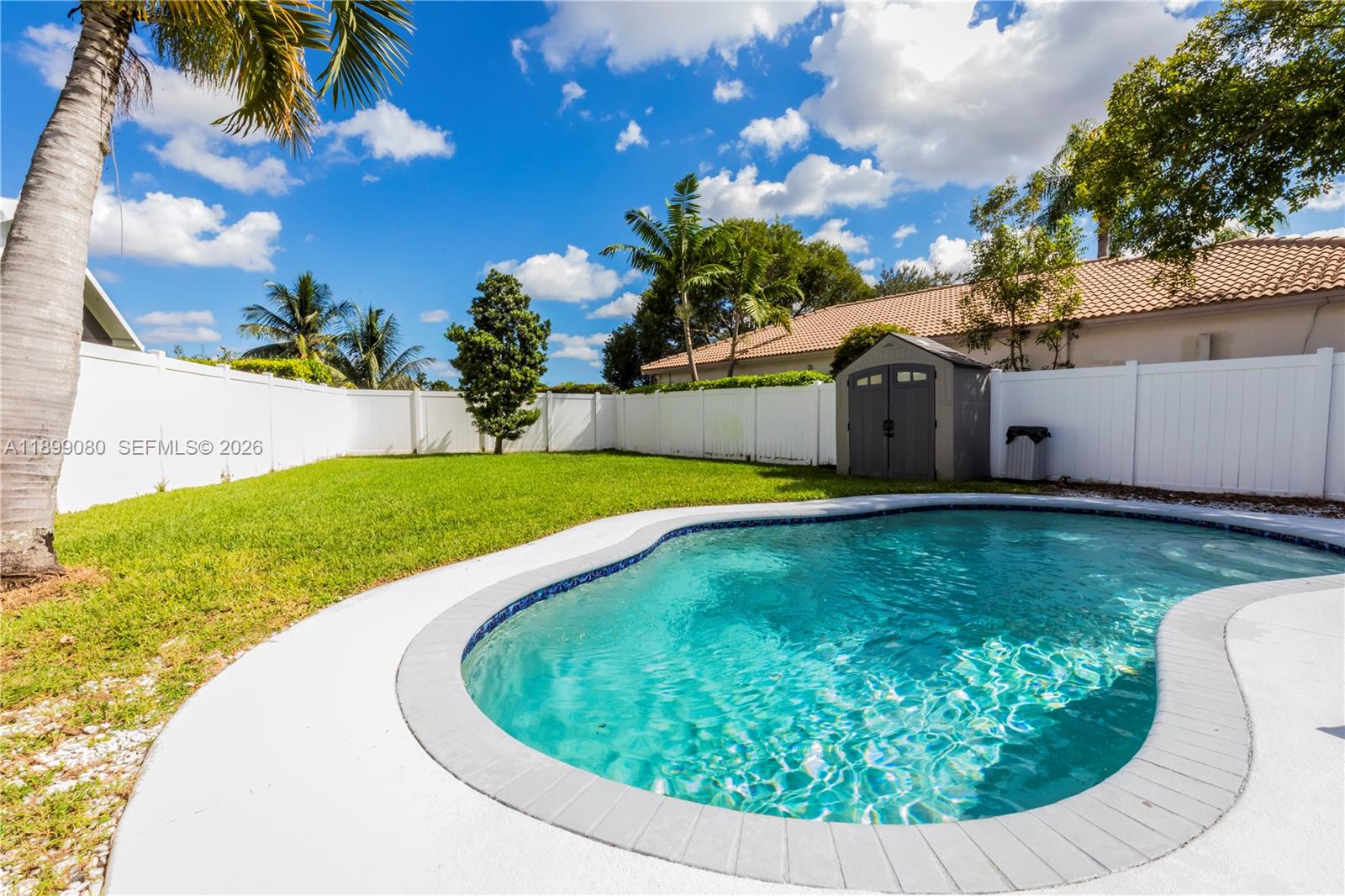 LOVELY HOUSE IN THE HEART OF EMERALS ESTATES , NEW ROOF 2025. HIGH IMPACT MODERN WINDOWS 2024. VERY SPACIOUS AND BRIGHT LIVING AREAS, ONE BEDROOM OR OFFICE IN GROUND FLOOR , VERY NICE & SPACIOUS UPGRADED NEW KITCHEN CABINET WITH TOP QUALITY GRANITE COUNTER TOP W/ BREAKFAST BAR, WHOLE HOME WATER FILTER, SEMI NEW STAINLESS STEEL FRENCH REFRIGERATOR, SEMI NEW WASHER & DRYER, DISPOSAL, BIG LARGE MASTER BEDROOM & WALK IN CLOSET, BEAUTIFUL FULLY FENCED LARGE BACKYARD WITH PRIVATE POOL HEATED AND SALTY WATER, COMMUNITY INCLUDE INTERNET ,HOME ALARM , CABLE AND LAWN MAINTENANCE INCLUDED TOO IN A SECURED GATED COMMUNITY, TOP RATED A+ SCHOOLS, VERY CLOSE TO I-75 ,NEW COMMUNITY POOL, GYM & PLAY AREA SOON, LOTS OF SPACE AND READY TO MOVE IN, IT WILL QUICKLY SALE , A MUST SEE !