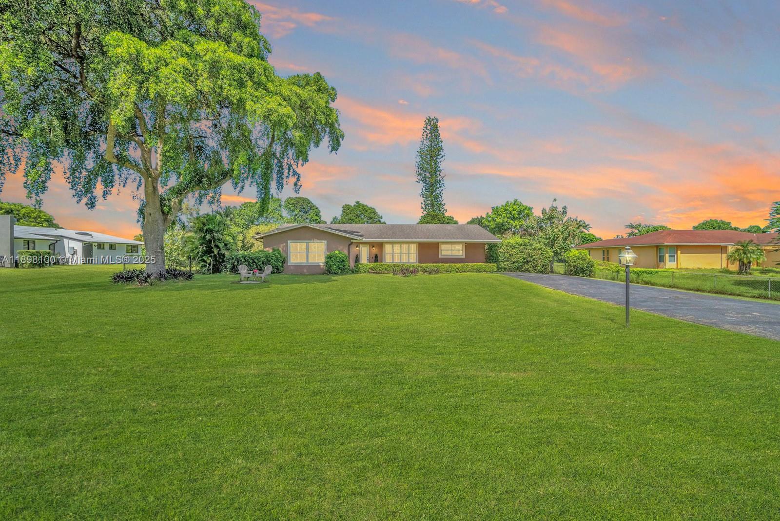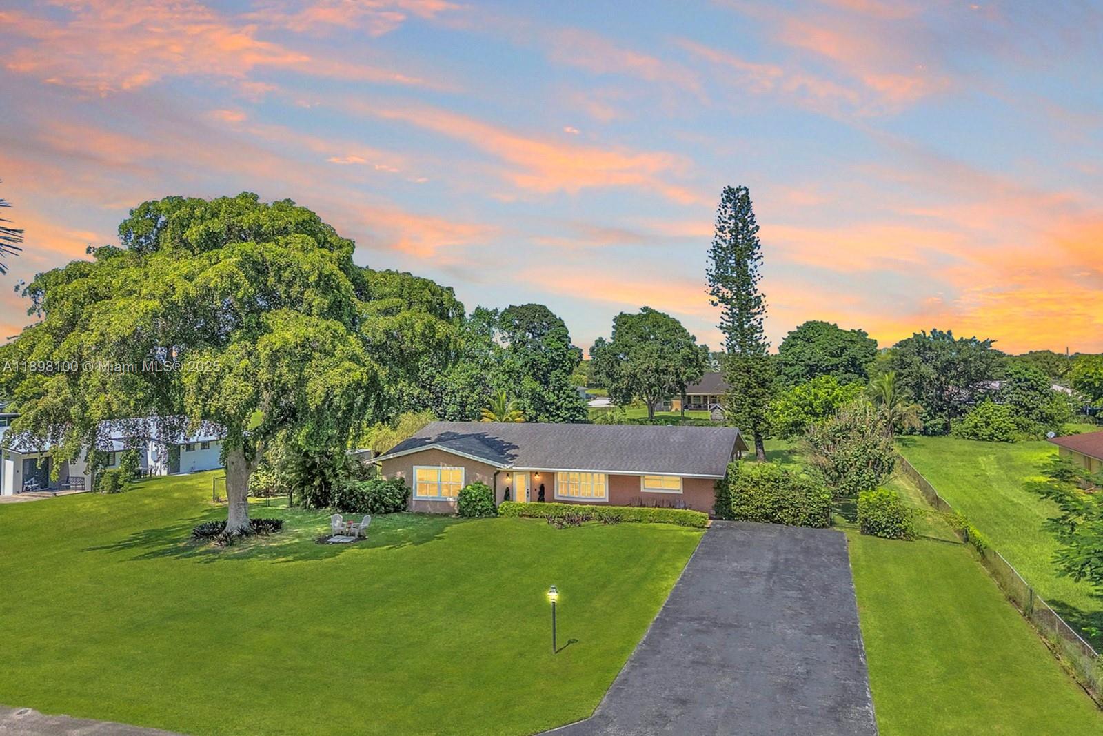 Spectacular 4 bed 2 bath home nestled on an expansive 42,890 sq ft lot on a cul-de-sac street in highly desirable Southwest Ranches. Beautifully updated home featuring elegant living spaces, split floor plan w spacious primary + 2 large bedrooms in main house & 4th room w its own exterior entrance for guests, in-laws or office. Enjoy natural light throughout from the full impact doors & windows. Open layout includes an updated kitchen w wood-style cabinetry, granite countertops, stainless steel appliances & a large counter-height seating. Step outside to an expansive backyard w a gorgeous covered patio, fire pit area large shed for extra storage & utility room. Property features a large front yard & long, oversized driveway. Home offers peaceful country-style living with city conveniences.