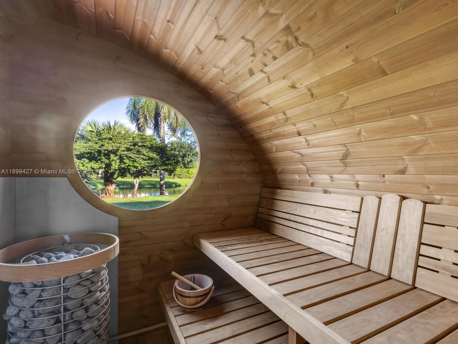 One of a kind gorgeous cul-de-sac estate on 1.78 acres w/tropical privacy landscaping, water-views on 3 sides features a custom pool w/grotto, waterfalls, 2 hot tubs, waterslide & lighting controlled by your phone. New roof, winery wall, entire pool makeover-including resurfacing & new pool pumps, a large sauna & outdoor covered entertaining area w/TV. Gorgeous quartz counter top kitchen, center island & butlers pantry, step down full bar, private office, cabana bath & so much more! Large primary bedroom w/dual shower heads & separate entrances. Elaborate summer gas kitchen entertainment area w/3 wine refrigerators, pizza oven, 38" BBQ grill, flat-top stove, 2 refrigerators, and so much more. Full house generator, 1000 gallon propane tank. Alarm. All impact windows and doors. A MUST SEE!
