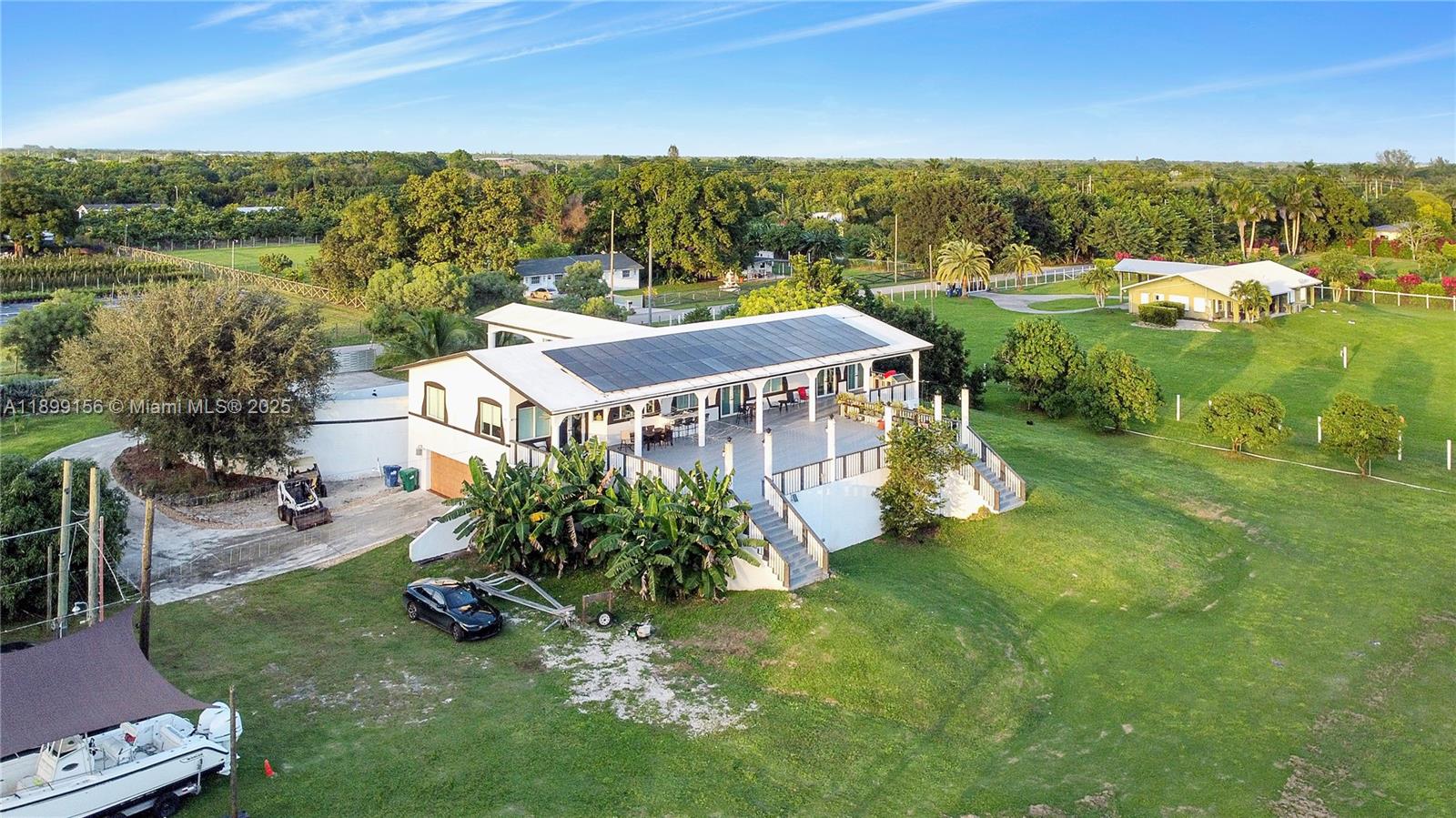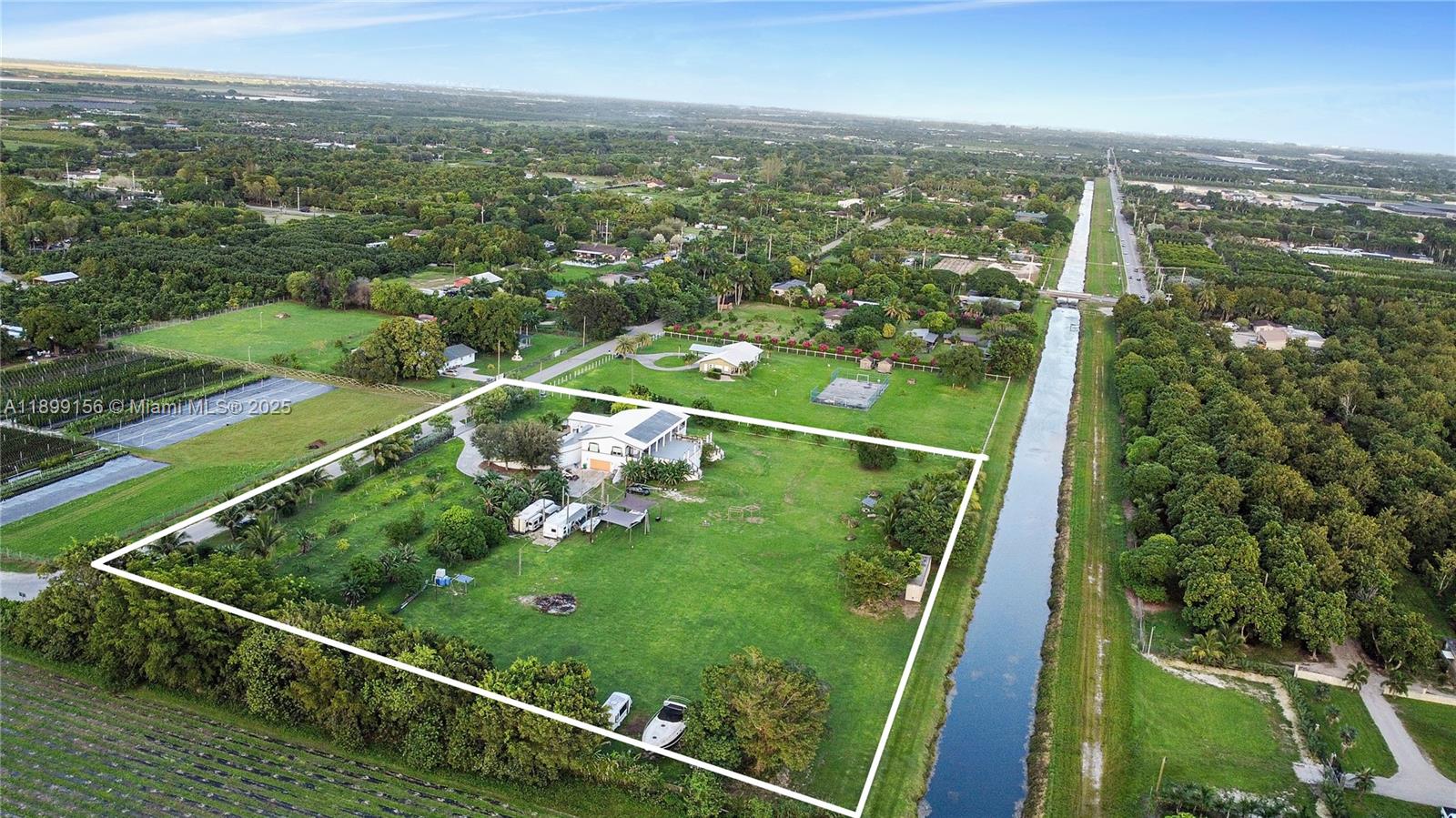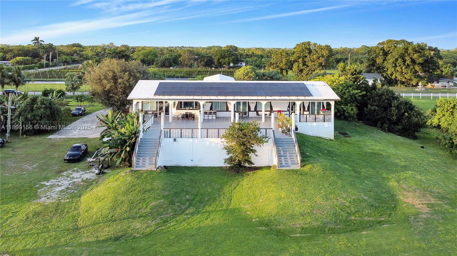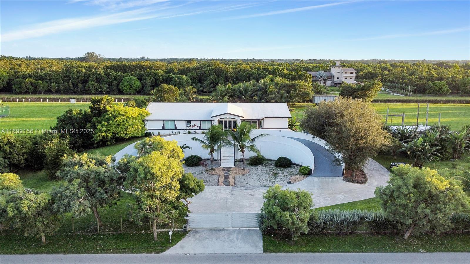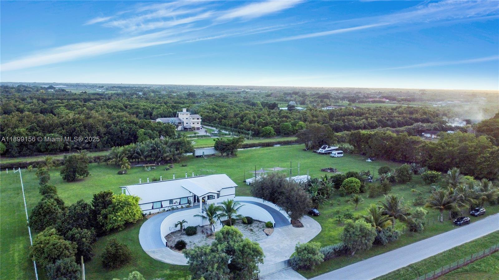 Stunning 2019-built ranch estate on nearly 4 acres in the highly sought-after Redlands! This 6BR/6BA luxury home offers over 11,000 sq ft of living space with a circular driveway entrance & high-end finishes throughout. Designed for sustainability & privacy, the property features 60 solar panels with a 20KW InPhase battery backup, EV charging stations & fertile land with mature mango, papaya & carambola trees. Enjoy a concrete roof, PGT impact windows/doors & full hurricane-proof construction. Includes a fully built underground bunker/garage with space for up to 18–20 vehicles, wine cellar & a pool shell with piping under the deck. Horse trails & the scenic C-102 canal nearby! Lot can be divided and 2-3 homes can be built for a true multi-generational compound!