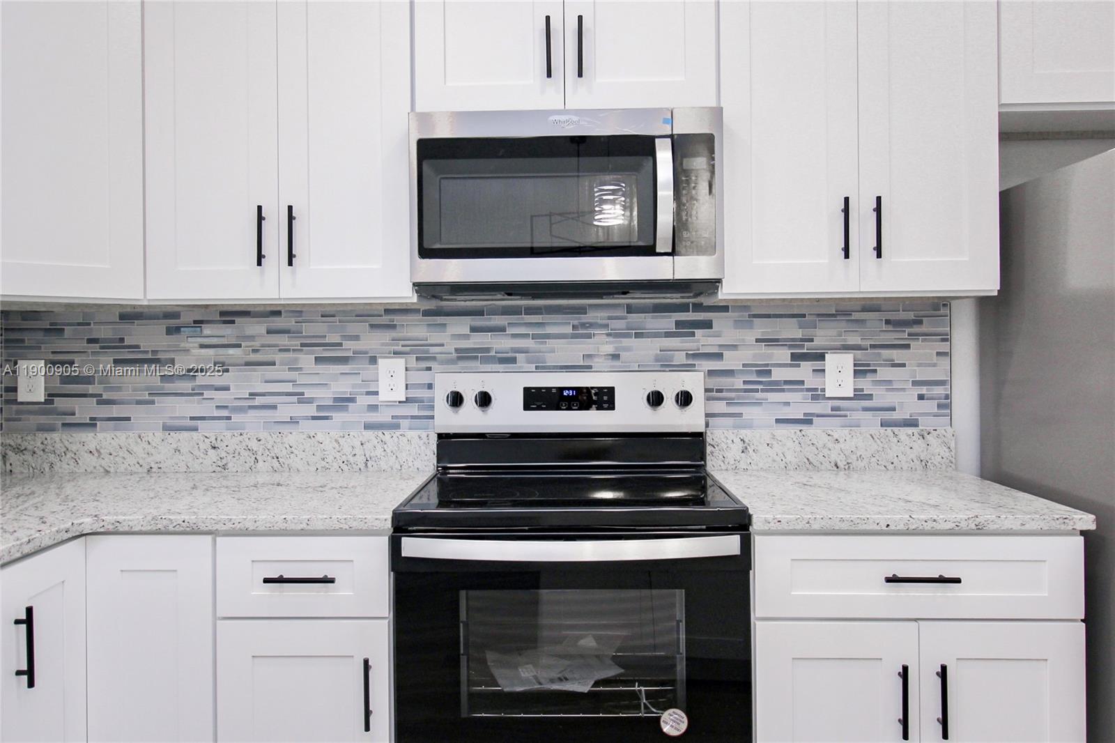 Stunning New Construction Home (2025). This modern 3-bedroom, 3-bath home offers an open-concept layout, high ceilings, and luxury finishes throughout. Experience smart home living with a Wi-Fi ceiling fan, LED mirrors with defogger, and elegant porcelain tile floors. The chef’s kitchen showcases granite countertops, a designer backsplash, and brand-new Whirlpool stainless steel appliances. Enjoy a dedicated laundry room with a utility sink for added convenience. Outdoor features include a covered lanai with ceiling fan, spacious backyard, 4-zone irrigation system, and stylish tile accents. Oversized 2-car garage with attic ladder and French doors with built-in blinds complete this move-in ready Florida dream home