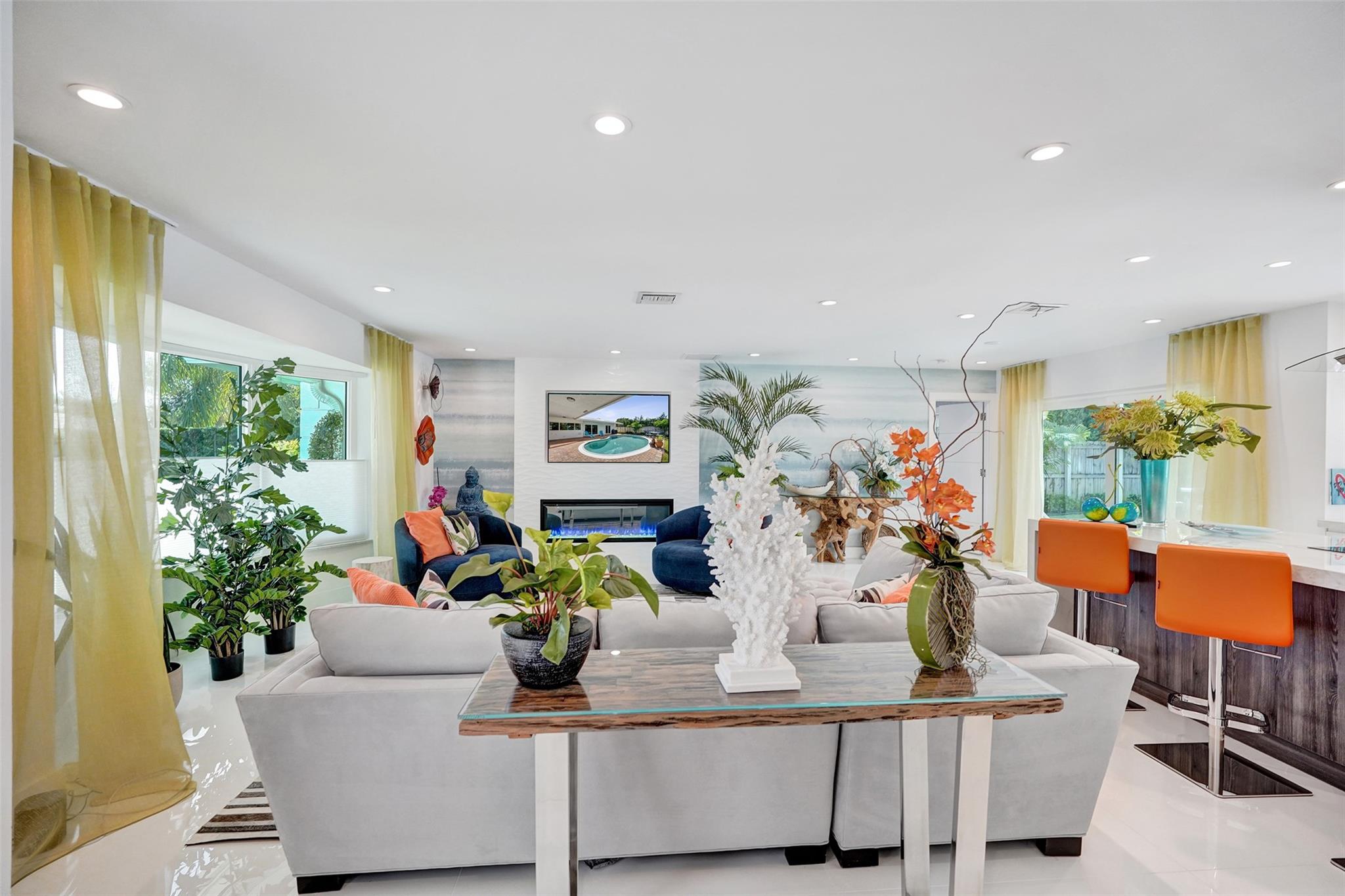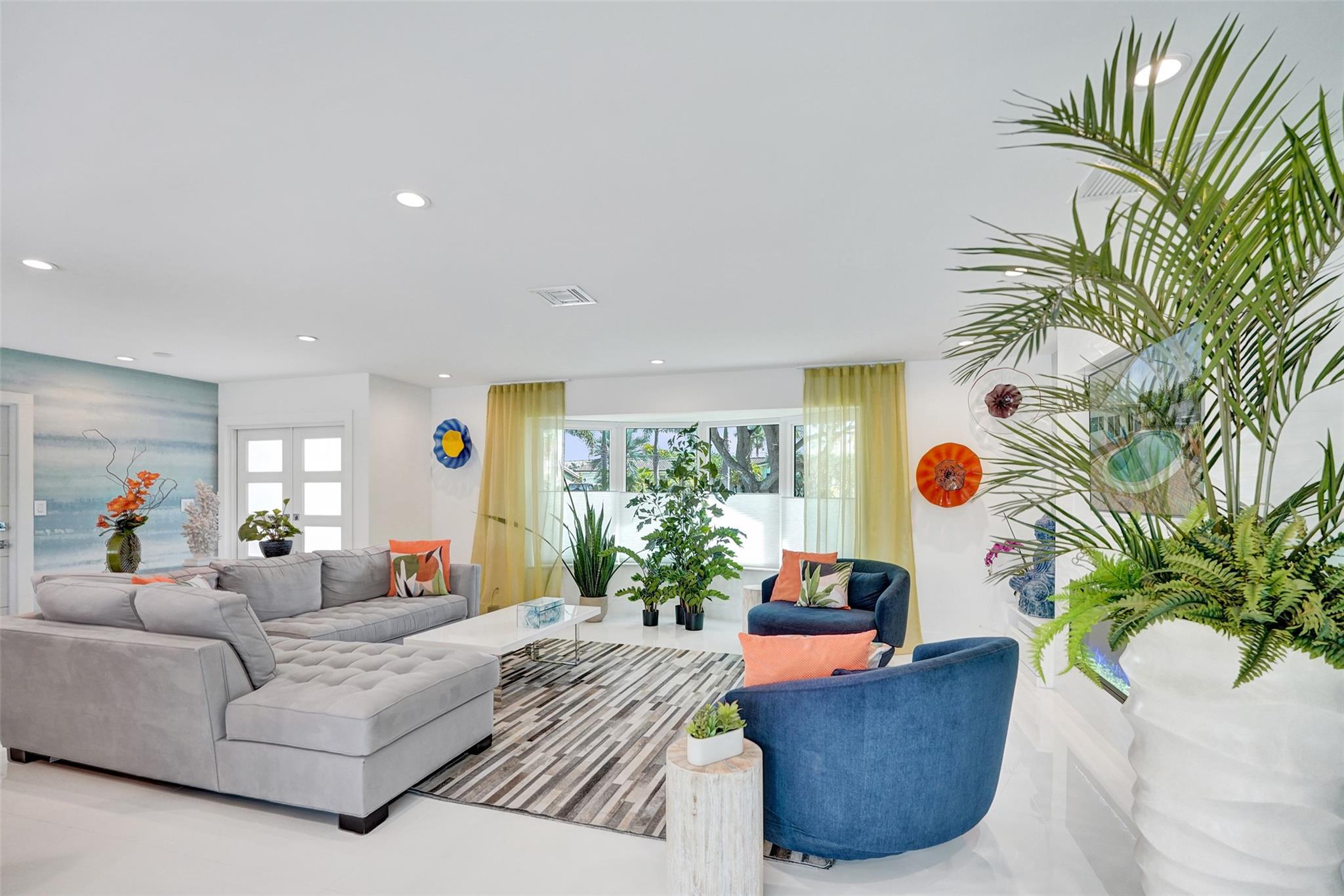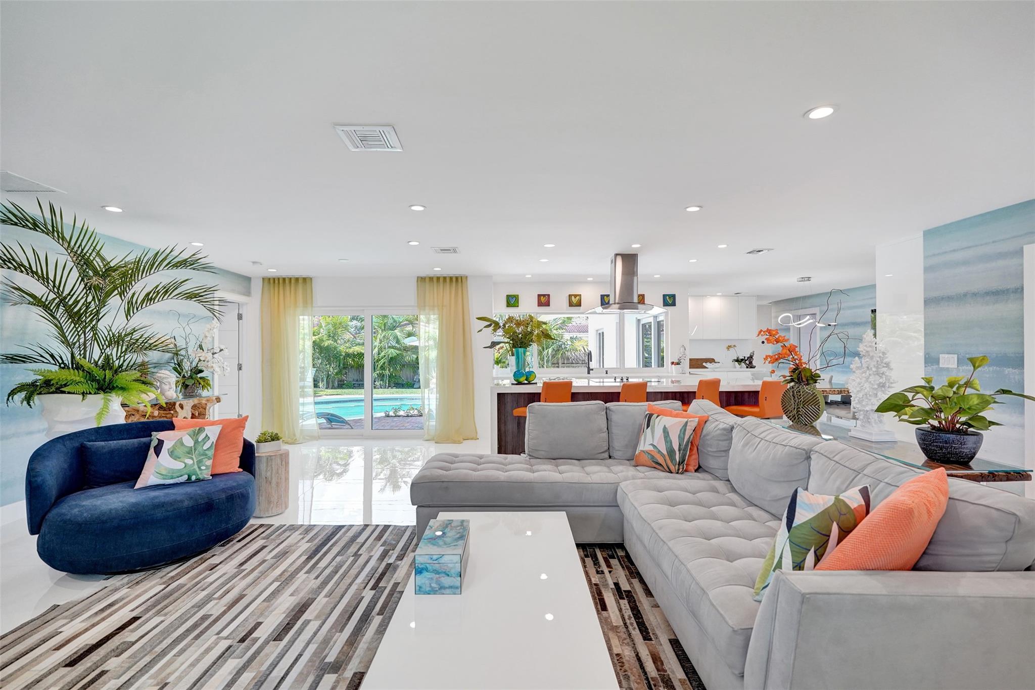 Gorgeous Imperial Point Renovation! This expansive estate home features 4 spacious bedrooms & 3 beautifully appointed bathrooms, including a versatile In-Law/Teen/Rental Suite with private exterior access & kitchenette. Complete interior update in 2021 included open living/kitchen layout with huge island, porcelain waterfall countertops, all bathrooms, white porcelain floors, Philip Jeffrey custom textured wallpaper, custom lighting, AC, electrical, & PVC drainage plumbing. California Closets & custom storage throughout. All impact windows/doors, roof was just professionally cleaned, sealed, & painted. Fresh landscaping front & back, mature Mango tree, auto well irrigation! Large garage with epoxy flooring + even more storage. Sonos, FRAME TV, and portable generator included in sale.