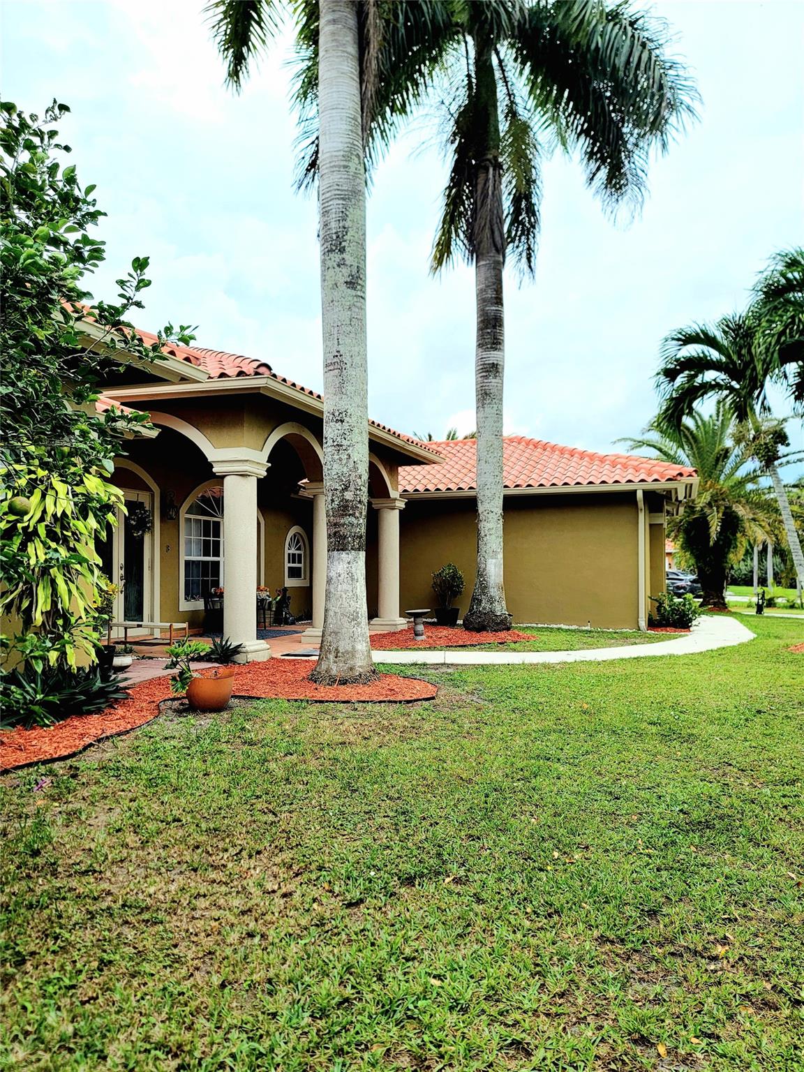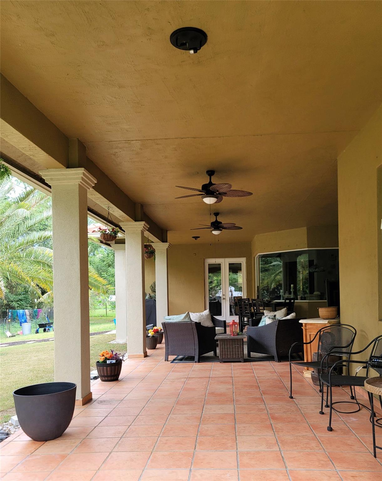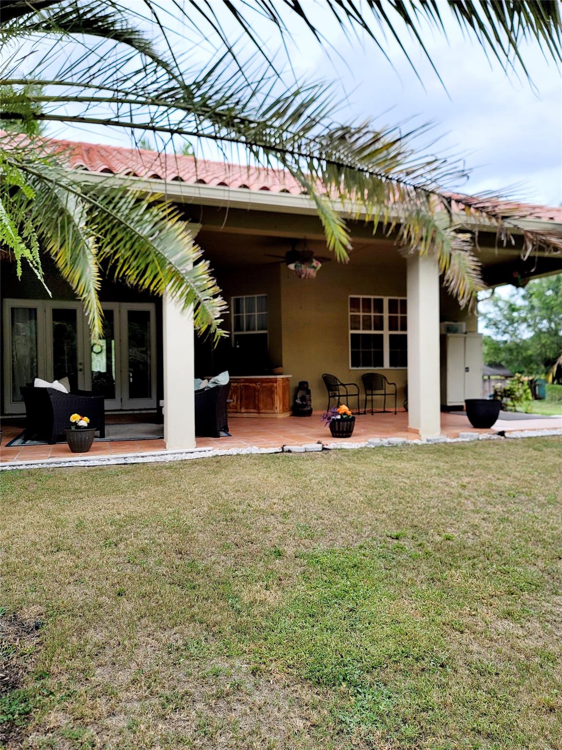 Tucked away on a peaceful and spacious 1.2 acre lot, this beautiful custom home offers the perfect balance of luxury, comfort, and refined Florida living. This expansive home spreads out just under 3,300 square feet under air, but the palatial pad extends to 4,700 sq. ft. plus, including the back patio under the roof and a converted garage. This carefully designed single story layout features a Primary bedroom, including walk-in closets and ensuite spa bathroom. The split floor plan allows 2 more large bedrooms with walk-in closets and a guest bedroom/office. French doors greet you from every entrance, front and back, where you are welcomed by the bright, open interior, extra volume ceilings and natural light flowing throughout the entire home. R.V. hookup and sheds. Horses allowed.