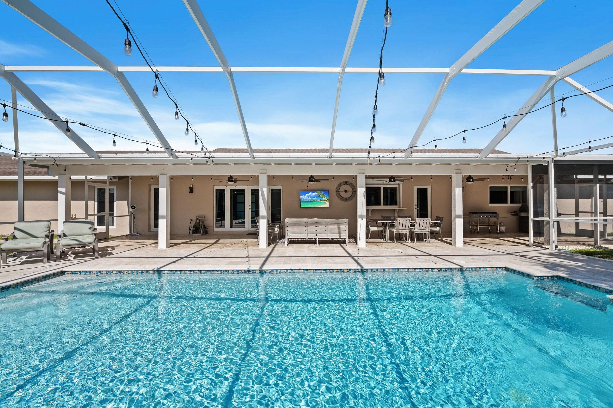 Welcome to your dream home! This beautifully maintained 5-bedroom, 3-bathroom residence offers the perfect blend of comfort, luxury, and functionality. The home features two primary suites and an open-concept living, dining, and family room with vaulted ceilings—perfect for entertaining. Enjoy peace of mind with a new roof, impact doors/windows, & a whole-house generator powered by a 500 lb propane tank. Relax in your screened-in pool & patio area, ideal for outdoor living. The property sits on an expansive 29,000 sq ft fenced lot, offering privacy and plenty of space for recreation or future additions. Additional highlights include a 2-car garage, new circular driveway, & a well-maintained fenced yard. This home combines comfort, security, & style—ready for you to move right in!