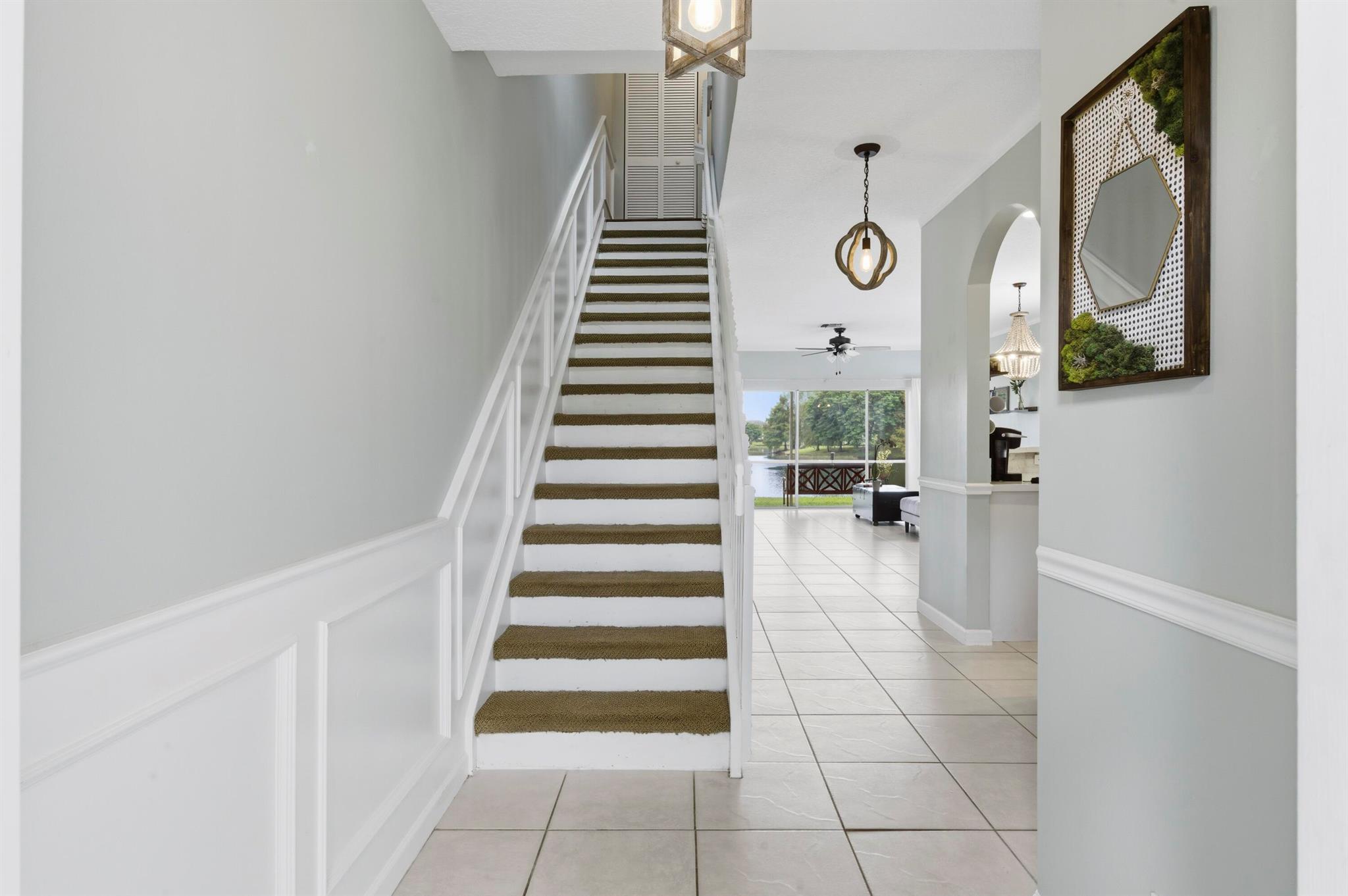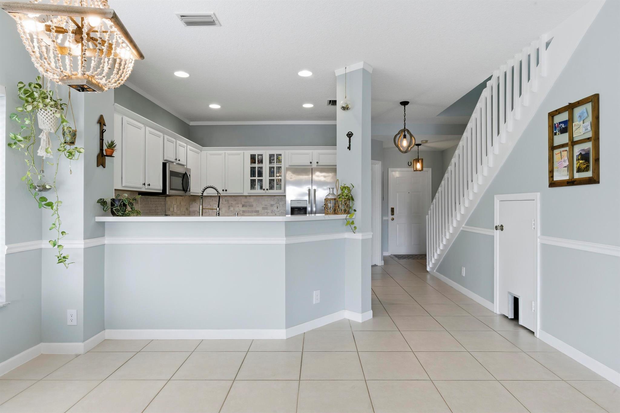 INVESTORS DREAM! You can lease immediately. This beautiful home features picturesque lake views, and includes a convenient one-car garage, two cozy bedrooms, and 2.5 bathrooms, creating a perfect retreat with scenic waterfront scenery. The first floor is adorned with stylish tile flooring, while the second floor showcases warm laminate wood floors. The walls are tastefully accented with exquisite wood paneling, complemented by contemporary artwork that enhances a touch of sophistication and character. The bright, vibrant painted walls enhance the cheerful atmosphere with an abundance of natural light. The kitchen is equipped with sleek stainless-steel appliances, white cabinets, and an open floor plan perfect for modern living and entertaining.
