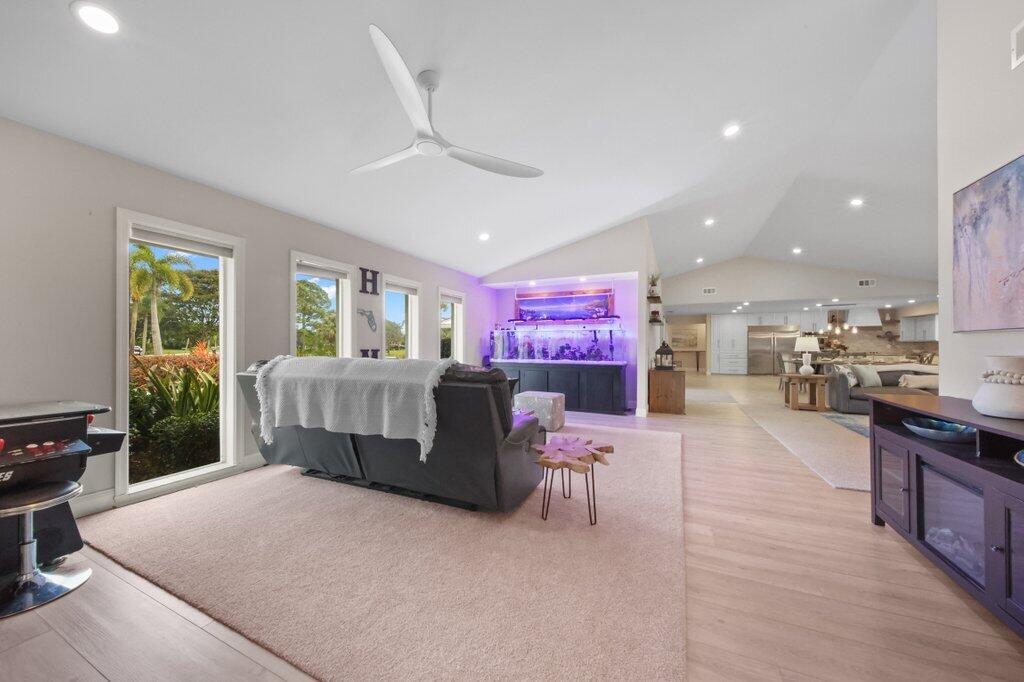 This 4BR/3BA CBS pool home sits on a private 1-acre cul-de-sac lot. Offering over 3,500 sq. ft., it features vaulted ceilings, crown molding, fireplace, & an expansive 2+ car garage. The NEW remodeled kitchen boasts granite counters, NEW appliances, and a large island for entertaining. Outdoor spaces include a screened pool, outdoor kitchen, & beautiful 3rd fairway lake views. Updates include a NEW roof, NEW interior/exterior paint, NEW LVT floors & carpet, TWO NEW A/Cs, TWO NEW water heaters, custom closet built-ins, projector & projector screen included & NEW voice-activated LED lighting. Evergreen offers 24hr manned guard gate, NO club membership required but offered for enjoyment OR play as you go! Located in the ''A'' Palm City school zone, this home is move-in ready