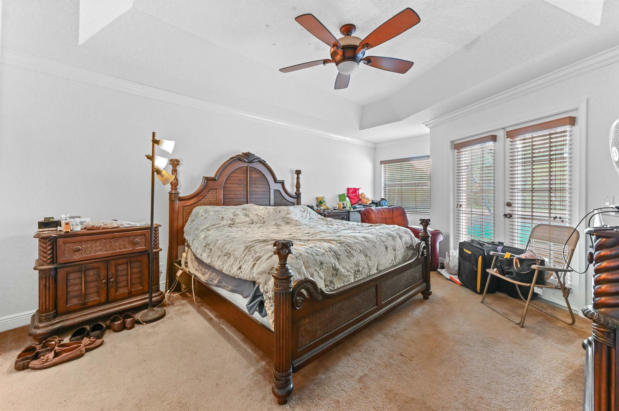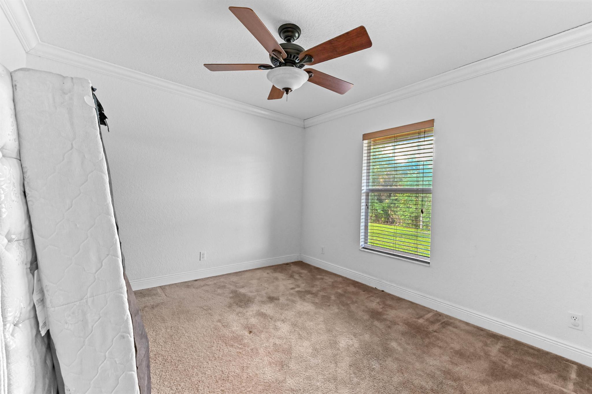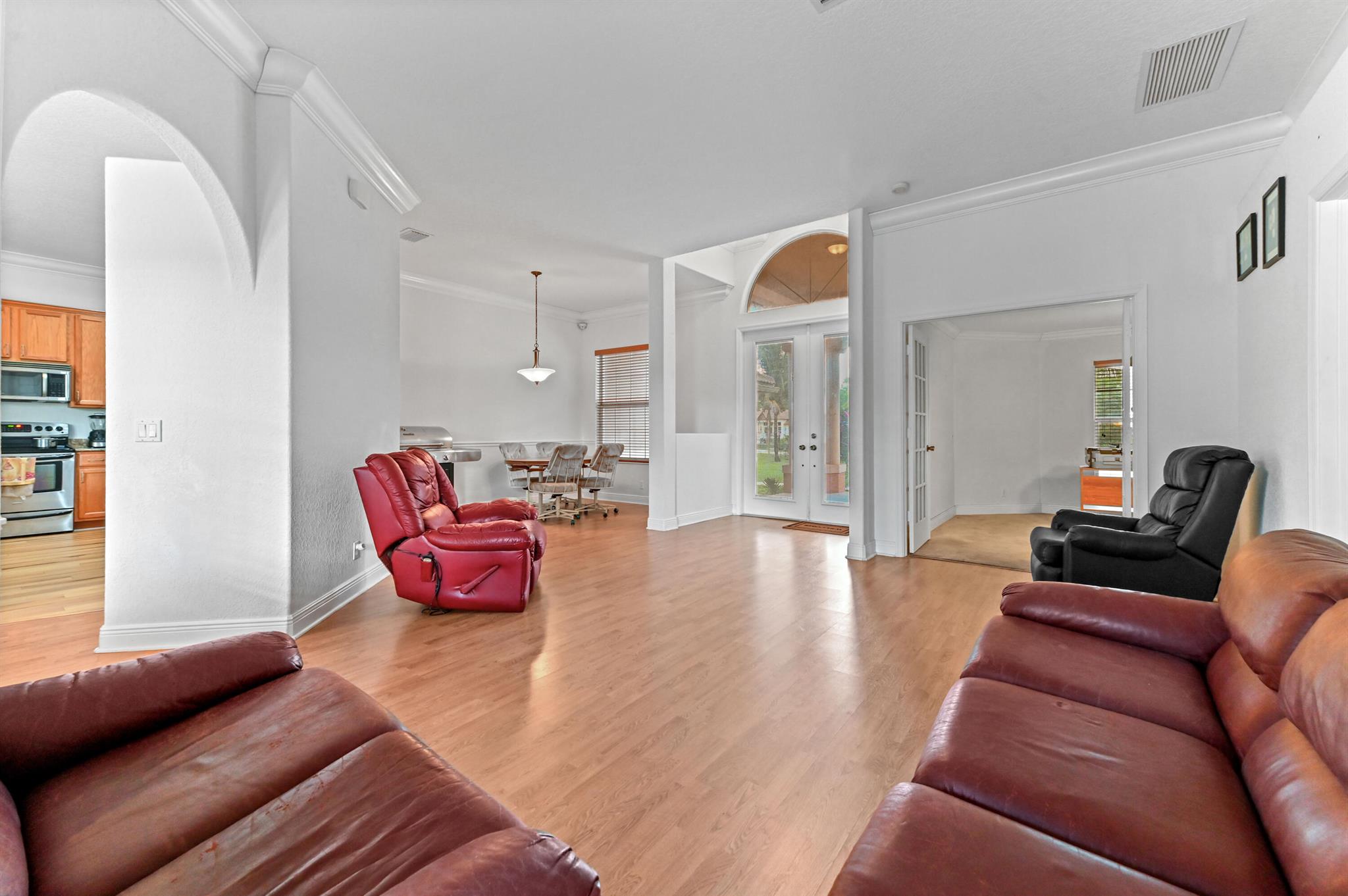 Prepare to be amazed by this truly stunning and feature-rich ranch home, perfectly situated on a fully fenced 1.25-acre canal-front lot in a highly desirable Acreage location. This magnificent property was designed for luxury and comfort, featuring five bedrooms and three baths, all meticulously planned. Step inside to discover a spacious and elegant interior boasting designer features, including knockdown textured walls and ceilings and stylish wood laminate flooring throughout the main areas. The home offers both formal living and dining spaces, complemented by a truly huge family room perfect for large gatherings.