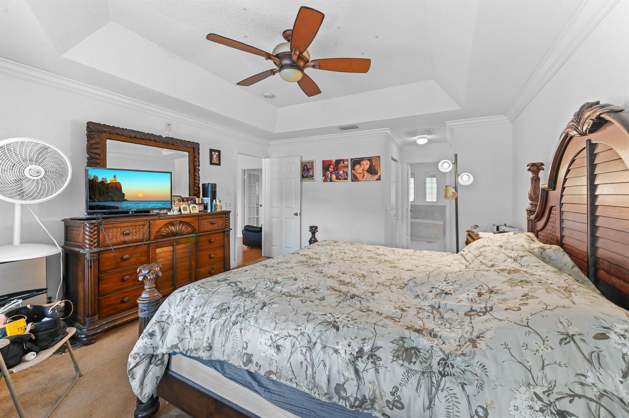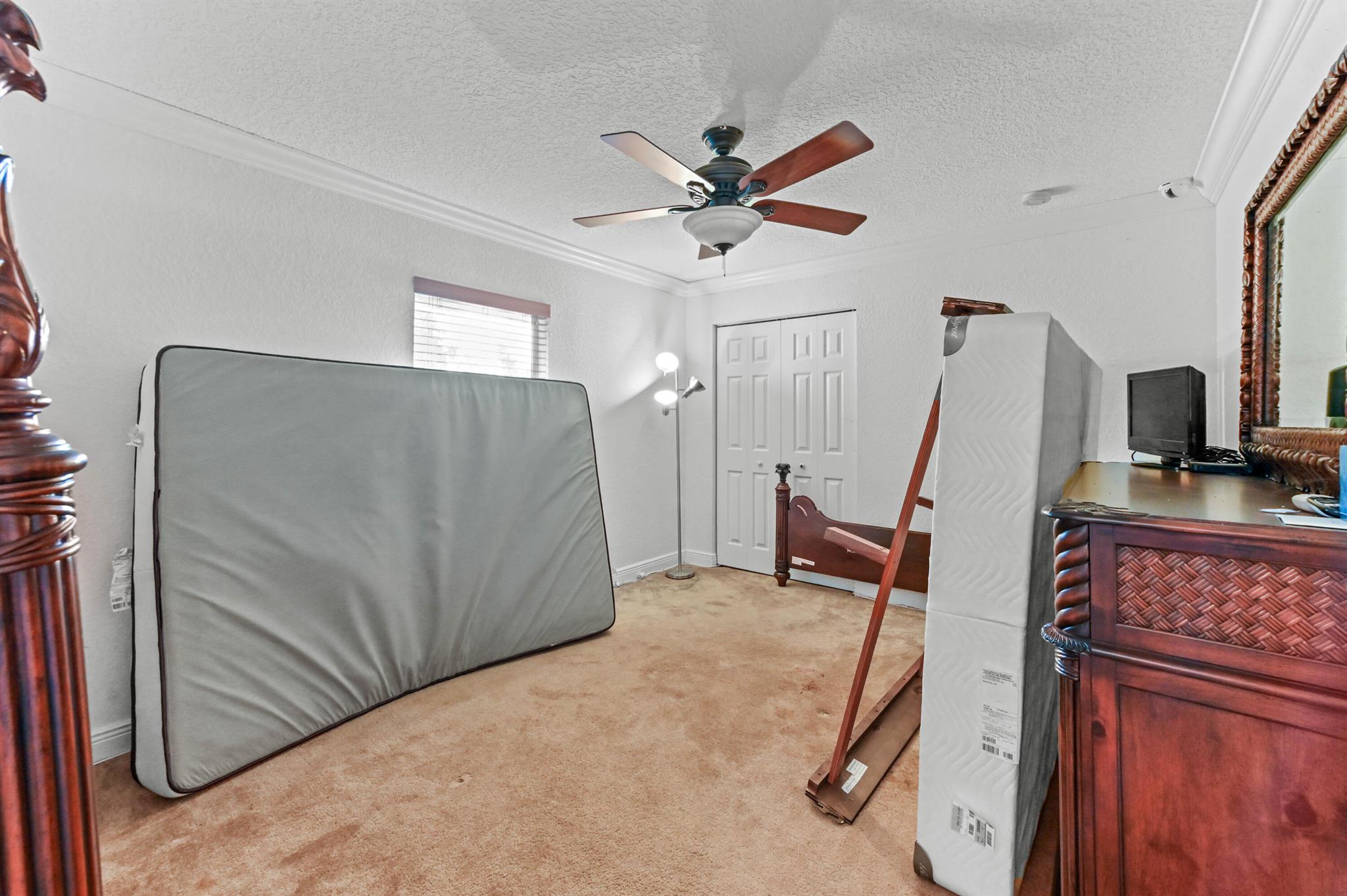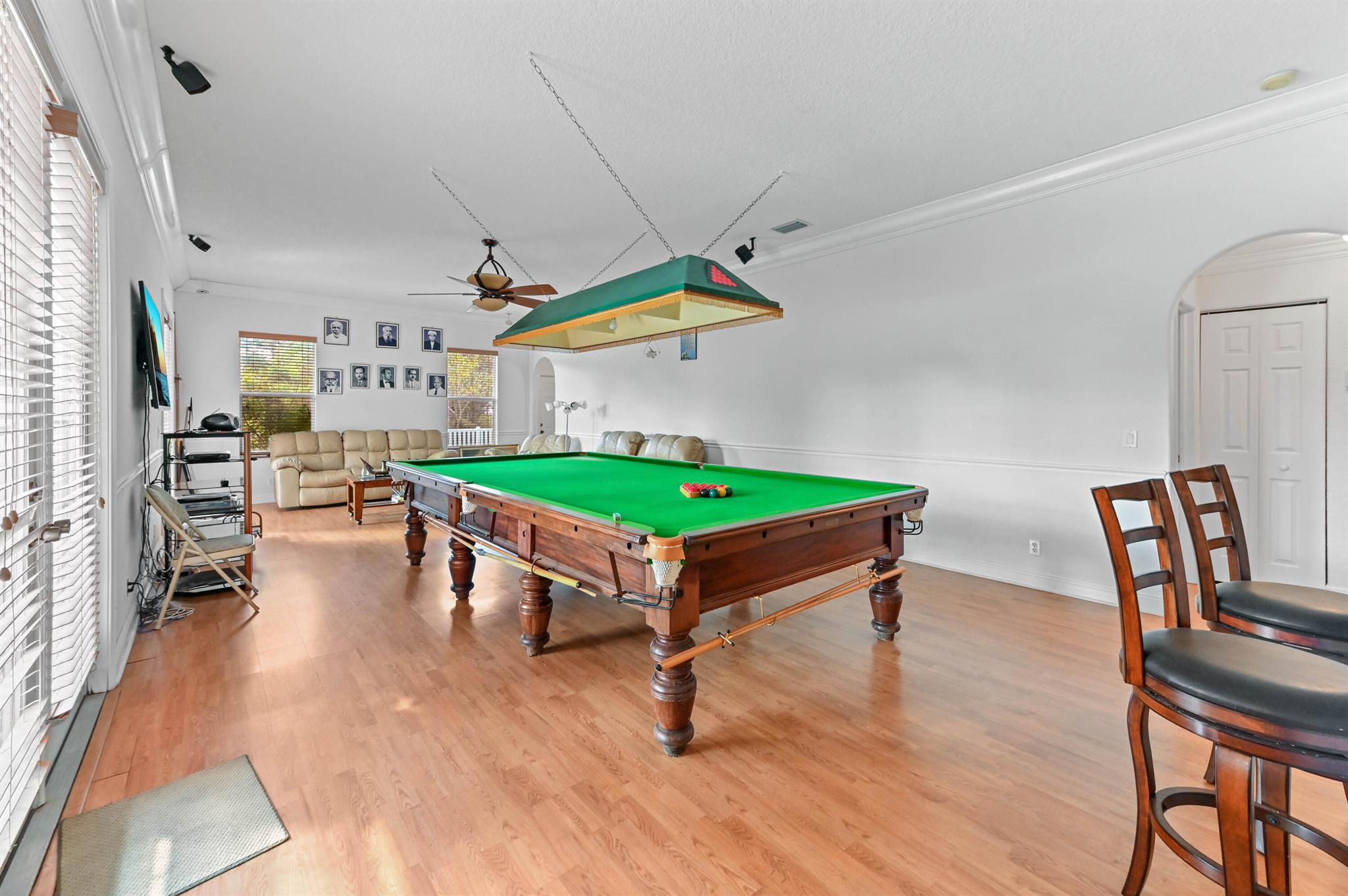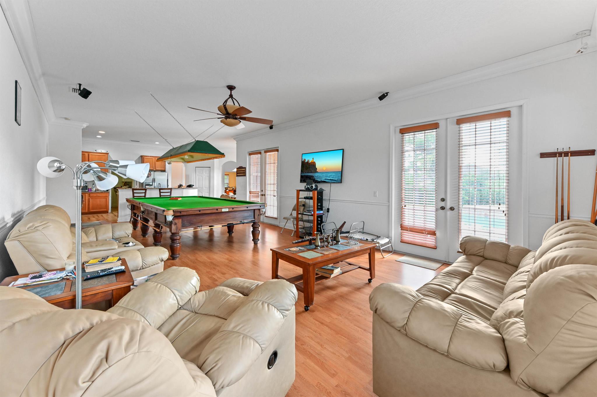 Prepare to be amazed by this truly stunning and feature-rich ranch home, perfectly situated on a fully fenced 1.25-acre canal-front lot in a highly desirable Acreage location. This magnificent property was designed for luxury and comfort, featuring five bedrooms and three baths, all meticulously planned. Step inside to discover a spacious and elegant interior boasting designer features, including knockdown textured walls and ceilings and stylish wood laminate flooring throughout the main areas. The home offers both formal living and dining spaces, complemented by a truly huge family room perfect for large gatherings.