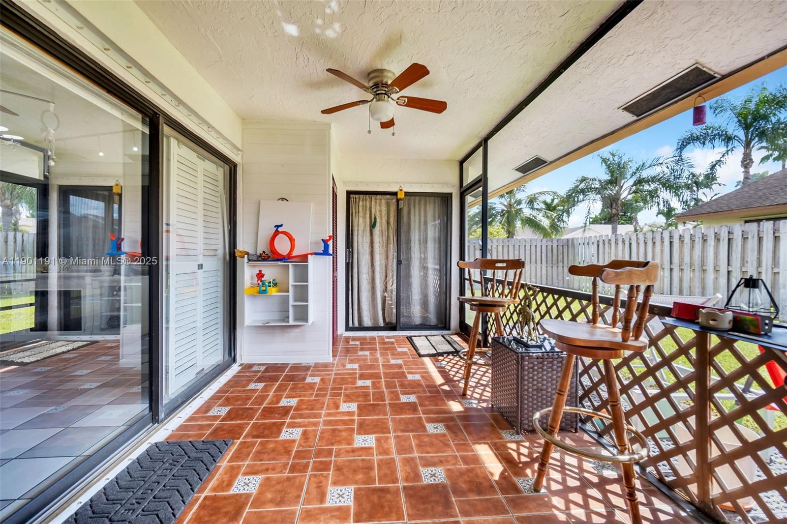 Incredible value in Sunrise! Spacious 3-bedroom / 2-bath home featuring a garage flex room that offers multiple possibilities -ideal as a home office, fitness room, playroom, or possible in-law quarters with a private entrance. The primary suite includes generous closet space, and the additional bedrooms are well sized. Step outside to a covered patio and fully fenced backyard — perfect for outdoor dining, pets, or weekend gatherings. Located in a quiet, well-maintained community with a clubhouse and pool, and just minutes to Sawgrass Mills, major highways, shopping, dining, and parks. Low HOA and currently the best-priced home in the subdivision, making this a rare opportunity for space, flexibility, and value in a highly desirable area. Don’t miss it — homes like this go fast!