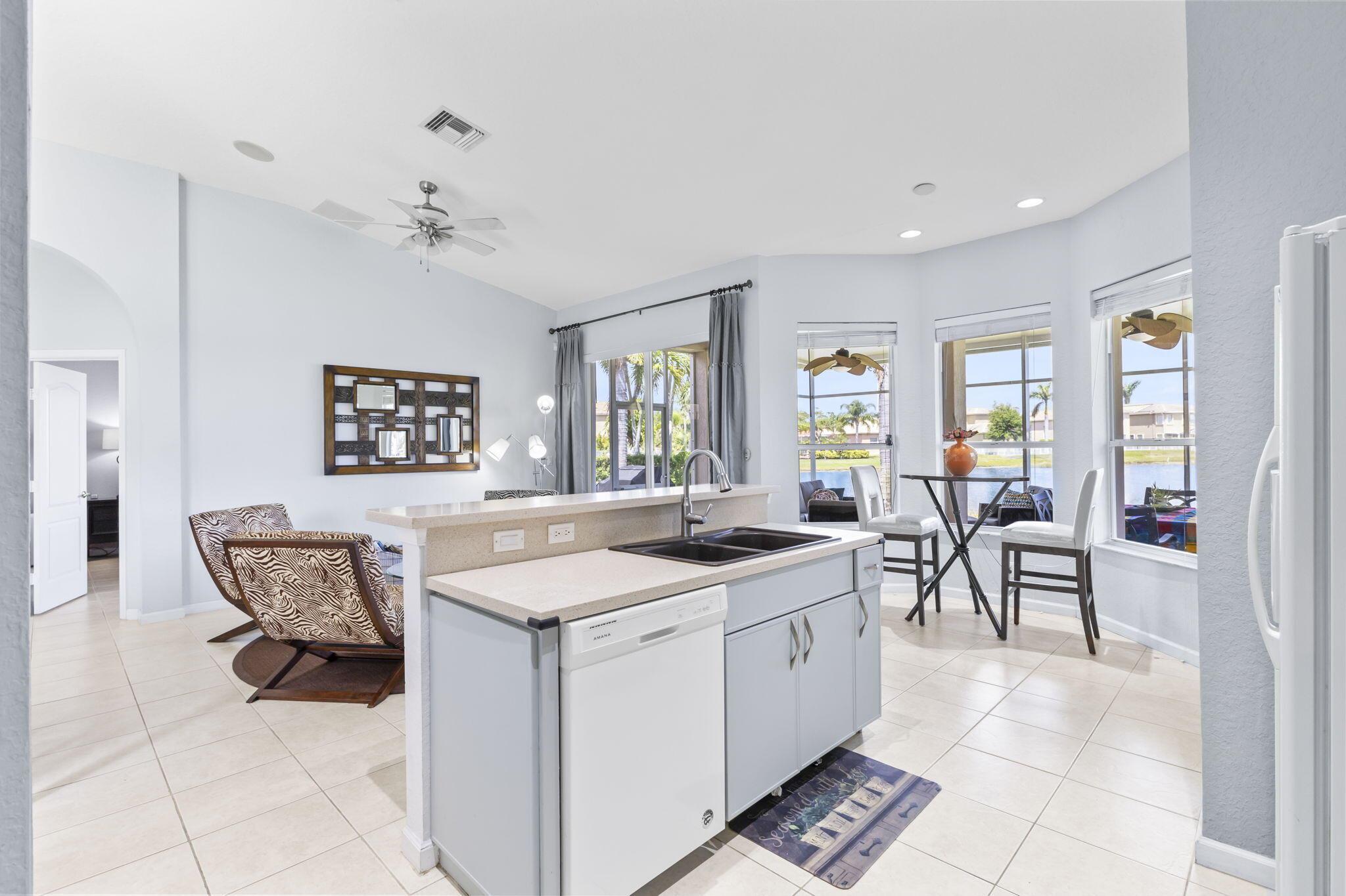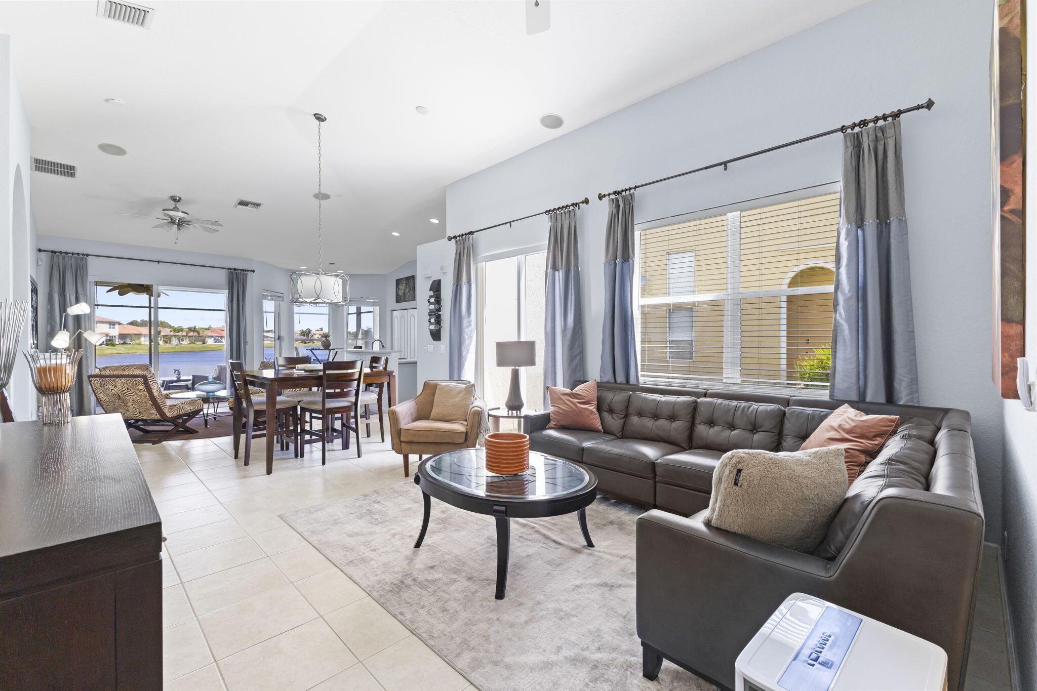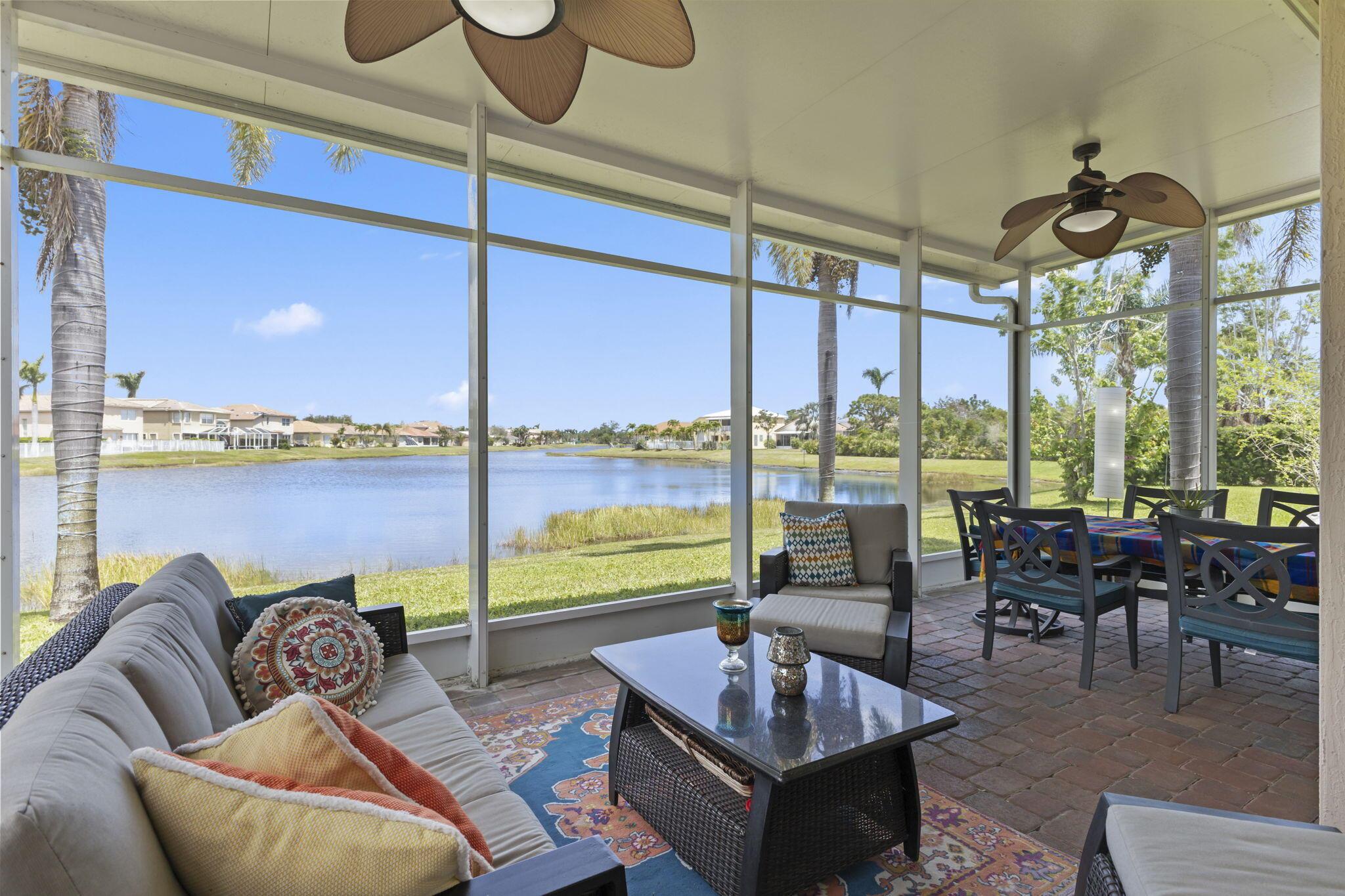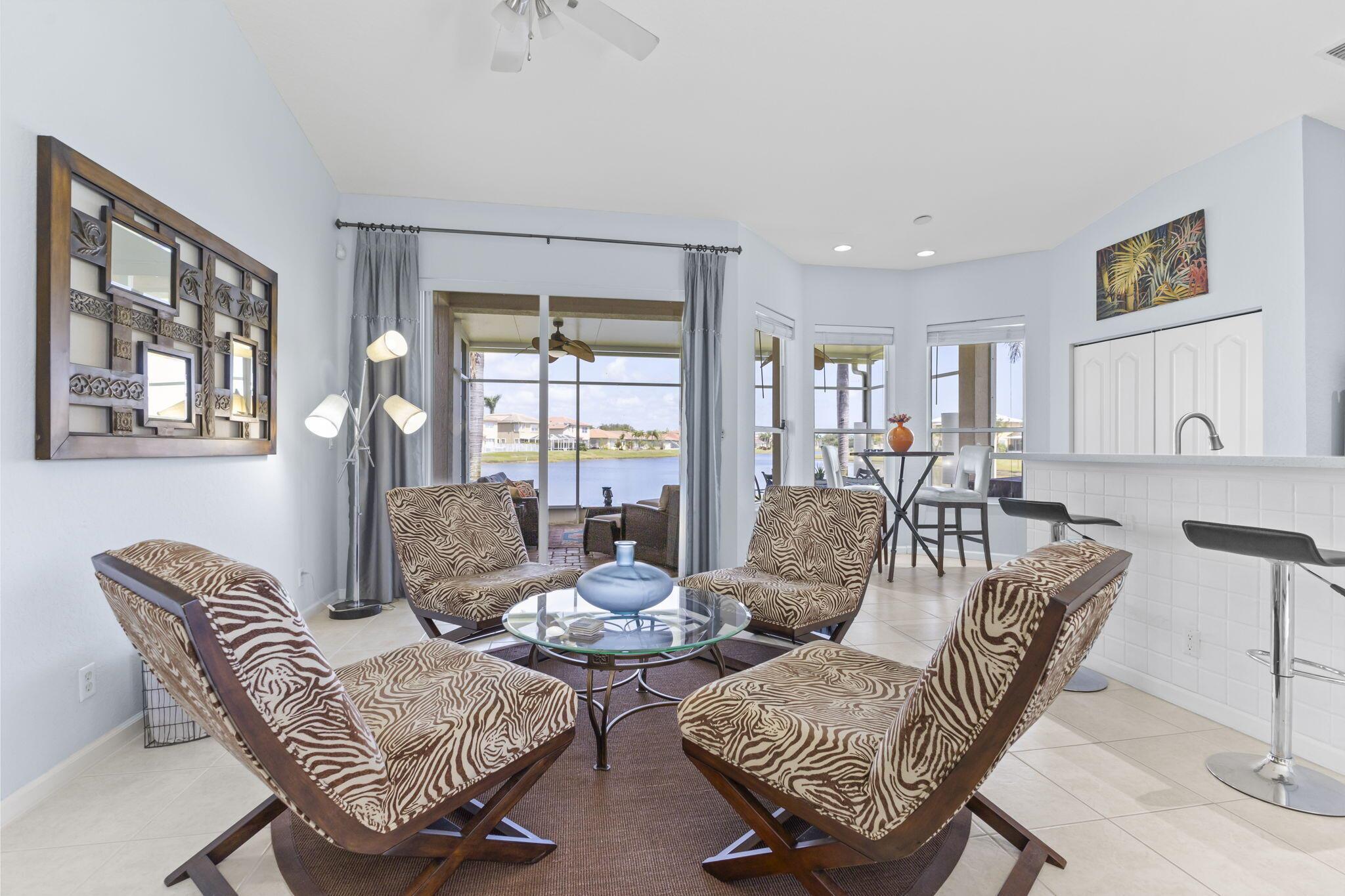 Impressive waterfront home on oversized lot located in sought after Portofino Shores community! Welcome to this luxurious and modern 3 bed 2 bath open concept floor plan with cathedral ceilings, tile flooring plus an oversized screened lanai surely to leave you relaxed! A bonus patio space provides room for grilling and chilling. Portofino Shores offers an abundance of amenities which are well maintained and add to the beauty of the community. Amenities include a lovely clubhouse, pool and patio areas, tennis, pickleball and bocce courts, a fitness center as well as double sidewalks and a preserve trail. You will enjoy gorgeous expansive lake views throughout this stunning home! Close to white sandy beaches, world-famous fishing, boating, lush golf courses and fine dining! Check it out!