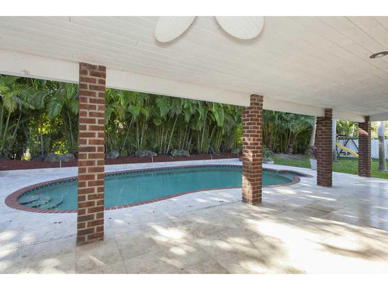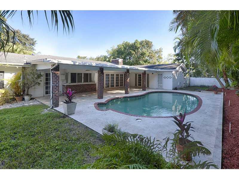 Charming home on quiet street.Story book Colonial brick, red door, front porch, ivy, and white picket fence.Wood floors throughout, fireplace. Bright living and dining open thru French doors to large covered terrace and Saturnia pool deck.Eat-in kitchen. Marble master bath. Master living, dining, kitchen open to covered terrace. Garage converted to family room.Smaller 4th bedroom split...best suited for Office or Maids room.Wonderful Pinecrest neighborhood! Some TLC needed.Easy to Show