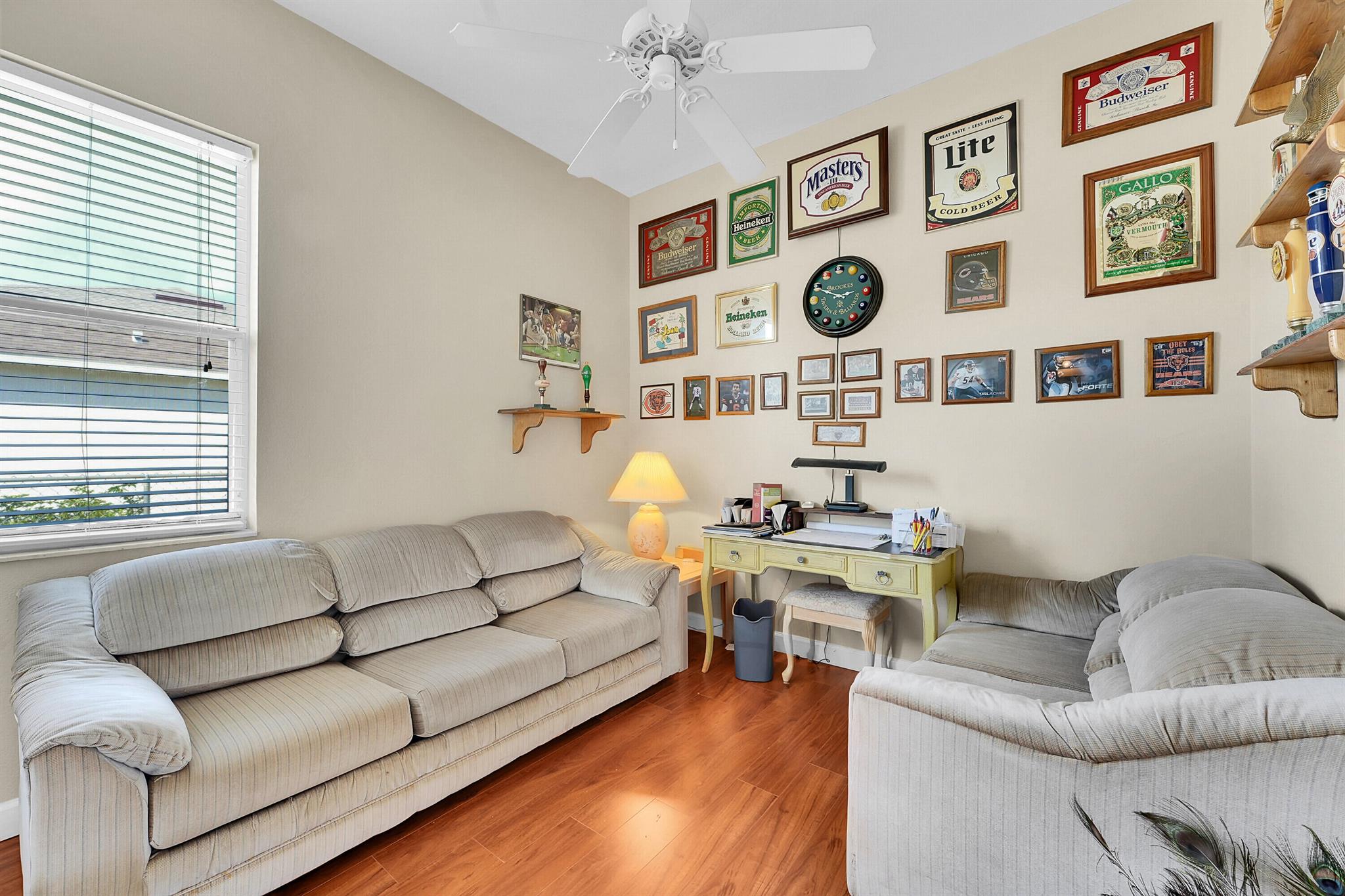 Located in a fantastic neighborhood off California/Cameo, close to Turtle Run Park, this well-maintained home offers space and functionality with 4 bedrooms, and 3 bathrooms. A jack & jill bathroom serves the front 2 bedrooms. The cabana bath serves both the 4th bedroom and the covered and screened back patio.Don't' need 4 bedrooms? Easily convert 1 or more bedrooms into a den, reading or craft room. Flexibility abounds in this 2185 sq ft home.There is mealtime flexibility with a formal dining room, an option for dining in the family room or snacks at the kitchen countertop easily accommodating 4 stools.A convenient built-in desk in the kitchen provides a great place for mail, bills or homework.The covered/screened back patio looks over a serene backyard and interior canal.