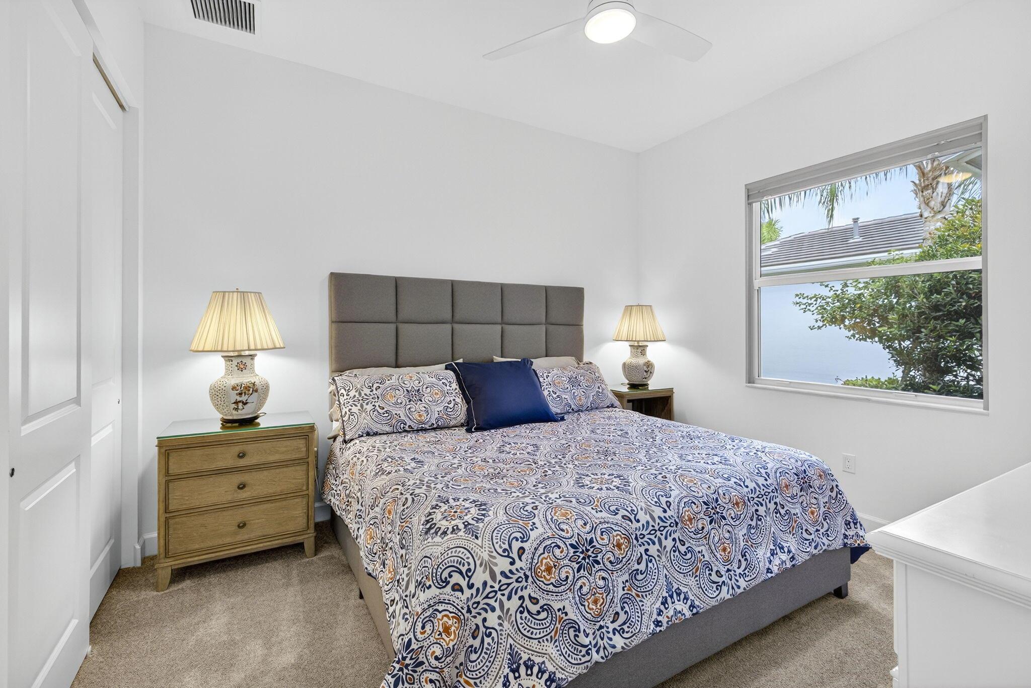 Welcome to this elegant 3 bedroom, 3 bath residence nestled in one of the areas most desirable active adult community of Valencia Sound. Thoughtfully designed for comfort, convenience and style, this home offers a perfect blend of sophistication and low maintenance living. Step inside to find an open concept layout with volume ceilings, sun filled living spaces and high end finishes. The gourmet kitchen features upgraded cabinets, counter tops and stainless steel appliance. The oversize kitchen island is ideal for entertaining or creating a cooking masterpiece. The ensuite guest area is ideal for short stay or long stay guests. Enjoy year round relaxation in the expanded outdoor living space complete with picture screen viewing screen enclosure.