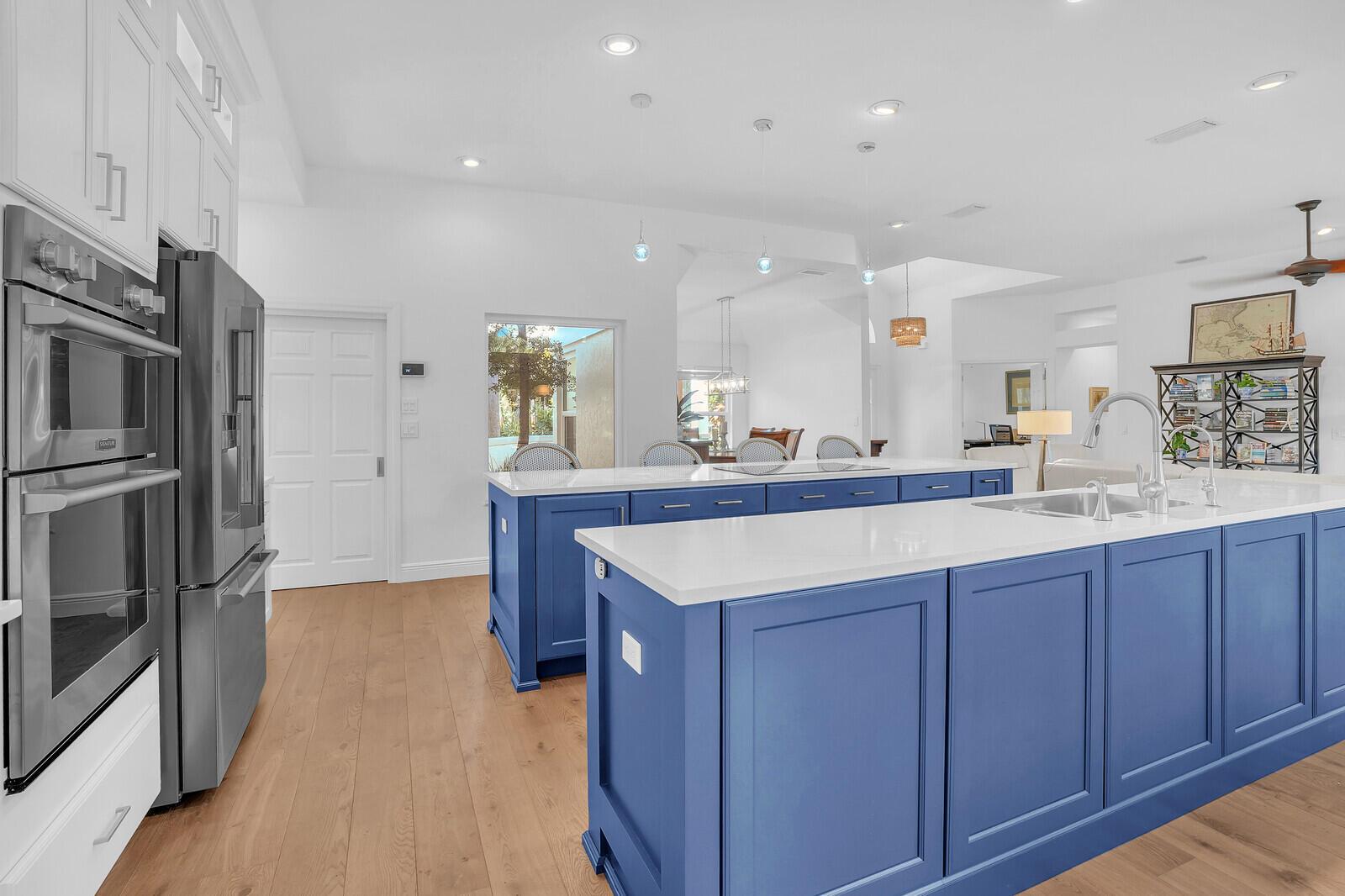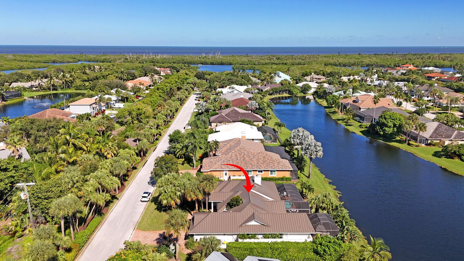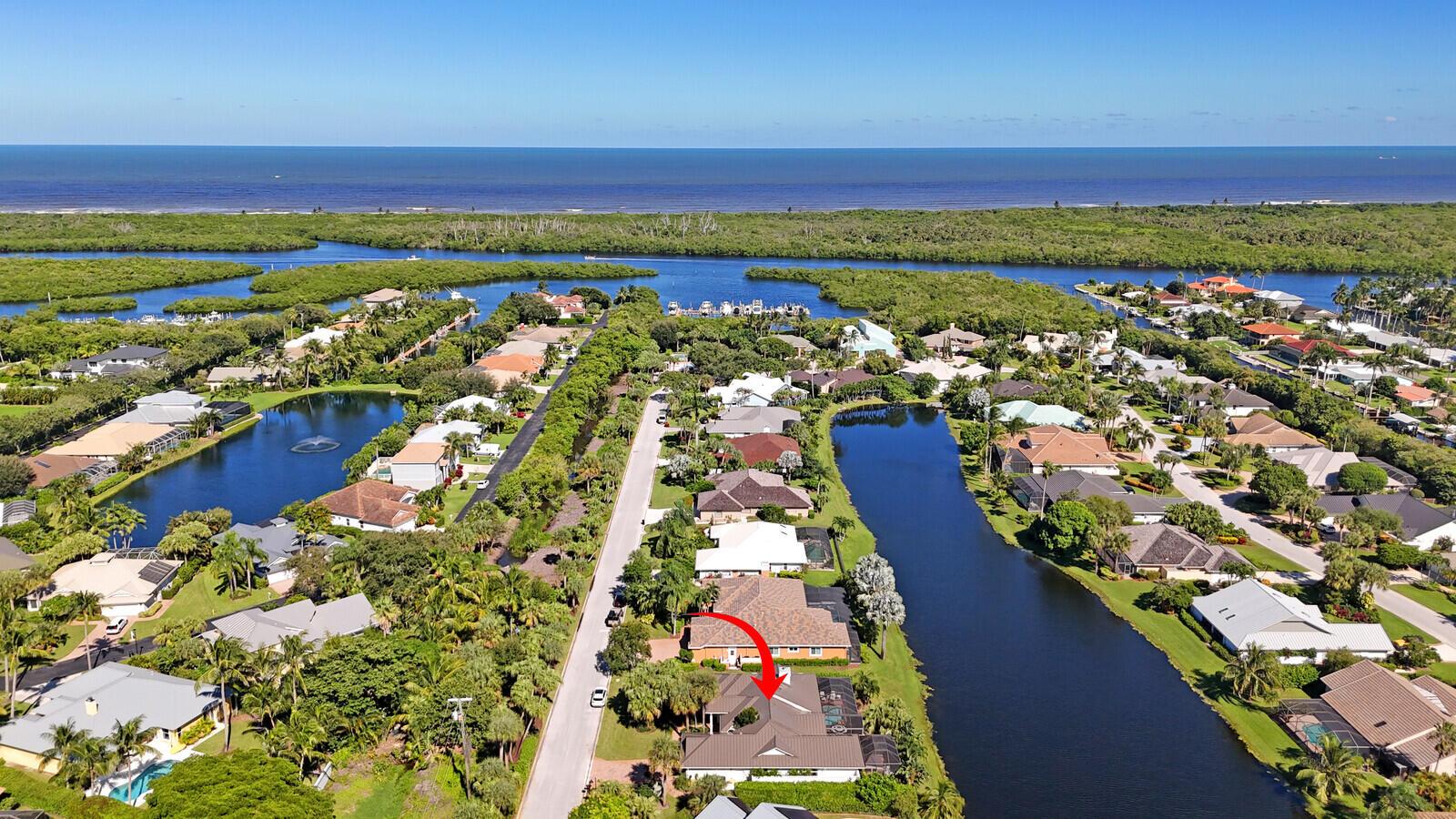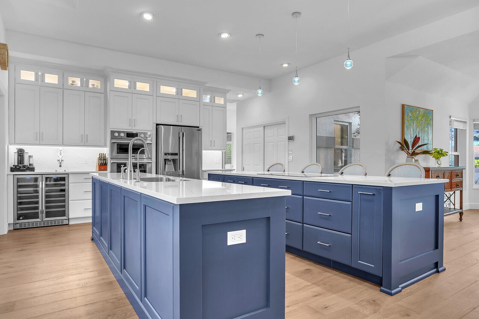 Bring Your Boat! Experience luxurious coastal living in this exquisitely remodeled 3-bedroom plus office, 3.5-bath lakefront, pool home with 2-car garage, located in the sought-after gated community of Marina Bay in Hobe Sound. One of only 37 homes in this private waterfront enclave, this former model home is perfectly positioned on a generous .459-acre lot, offering rare privacy, tranquil lake views, and an assigned 50-foot boat slip in Marina Bay's private marina just off of the ICW. Completely reimagined between 2023 - 2025, the heart of the home features a forward-thinking dual-island kitchen design, with custom one-piece quartz countertops, a seamless motion-activated sink, and reverse osmosis water to both the sink and refrigerator. Outfitted with Signature Kitchen Suite