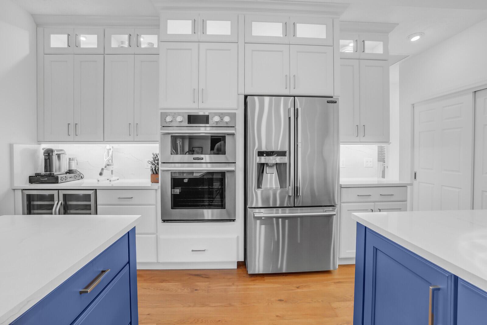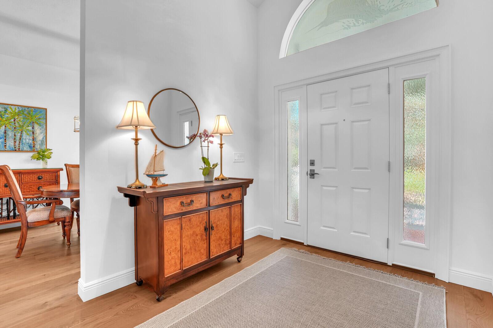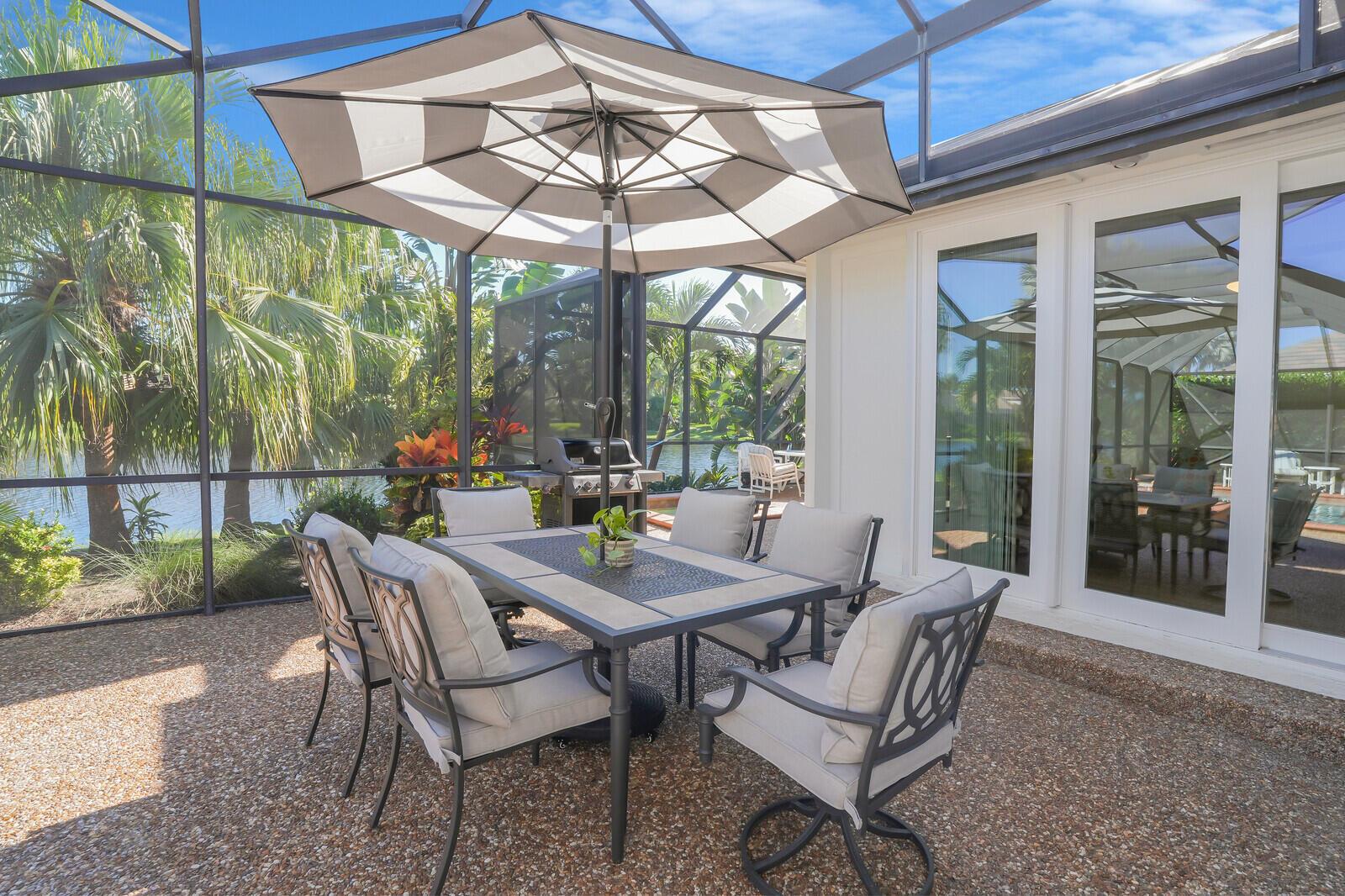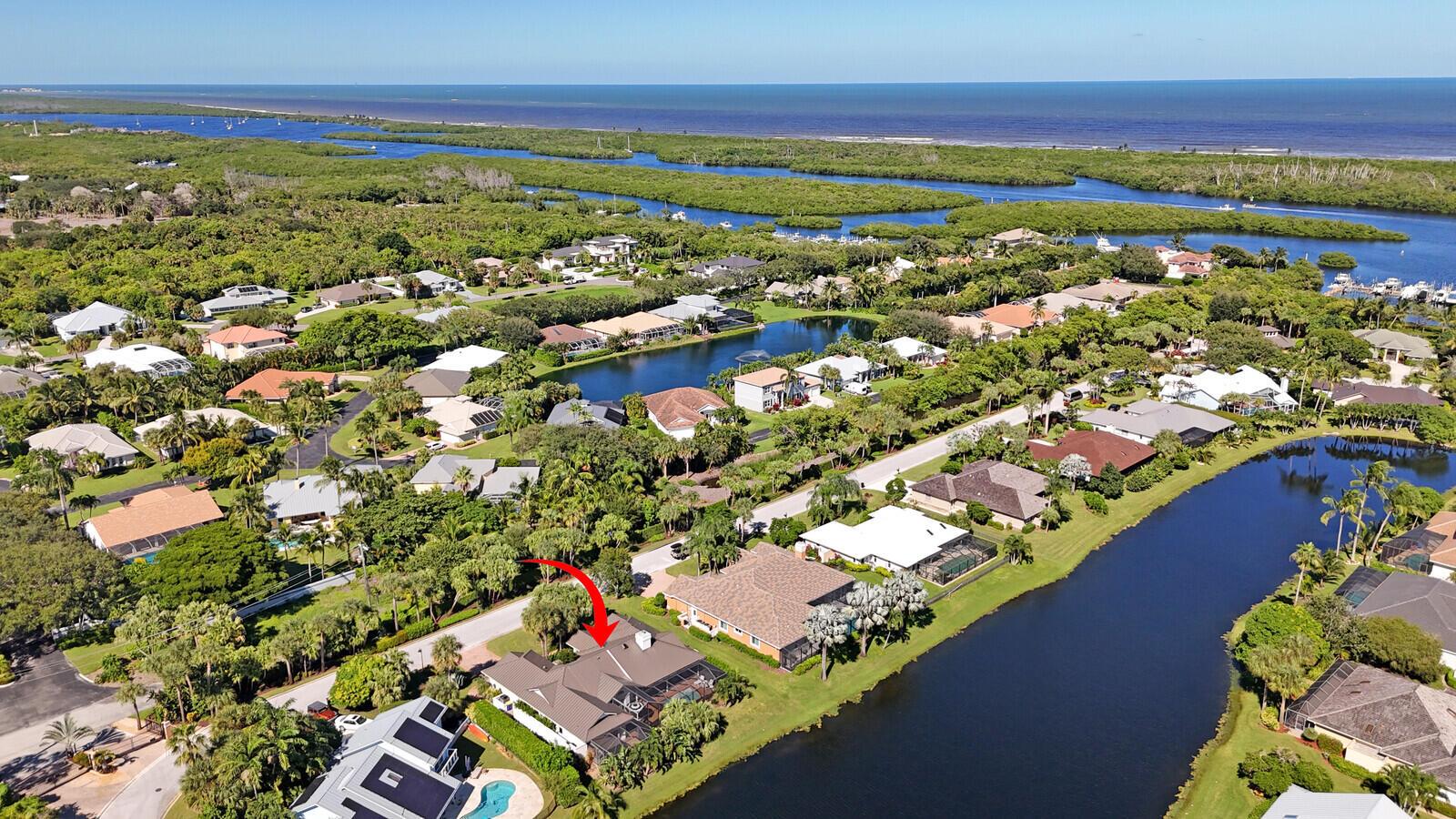 Bring Your Boat! Experience luxurious coastal living in this exquisitely remodeled 3-bedroom plus office, 3.5-bath lakefront, pool home with 2-car garage, located in the sought-after gated community of Marina Bay in Hobe Sound. One of only 37 homes in this private waterfront enclave, this former model home is perfectly positioned on a generous .459-acre lot, offering rare privacy, tranquil lake views, and an assigned 50-foot boat slip in Marina Bay's private marina just off of the ICW. Completely reimagined between 2023 - 2025, the heart of the home features a forward-thinking dual-island kitchen design, with custom one-piece quartz countertops, a seamless motion-activated sink, and reverse osmosis water to both the sink and refrigerator. Outfitted with Signature Kitchen Suite