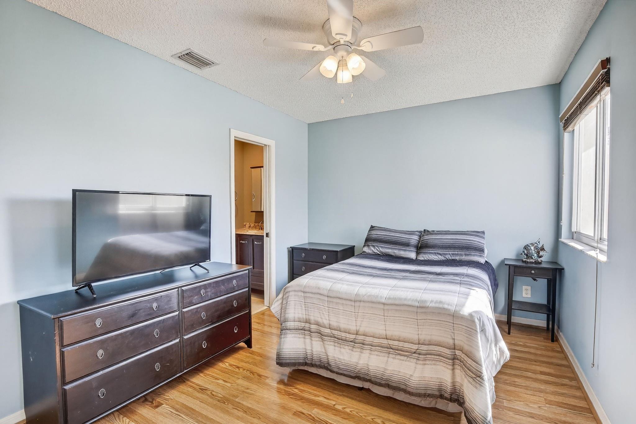 Rare DelMar Model in Laguna Isles! Beautifully updated 5 bed 3.5 bath, 2-sty home with over 2,500 sqft in sought-after Laguna Isles. This unique model offers a side-load garage and a builder-optioned addition, adding 2 extra bedrooms and a full bath for a spacious, flexible layout. The upgraded kitchen features crowned wood cabinets, granite counters, stainless appliances, and natural gas cooking and water heater. The dining room and primary bedroom showcase tray ceilings, and large windows fill the home with natural light. Enjoy wood and tile floors throughout, updated baths, and a freshly painted interior. Outdoor highlights include a screened, covered patio, paver brick driveway and patio, plus accordion shutters. A rare opportunity to own one of Laguna Isles’ most desirable floor plans