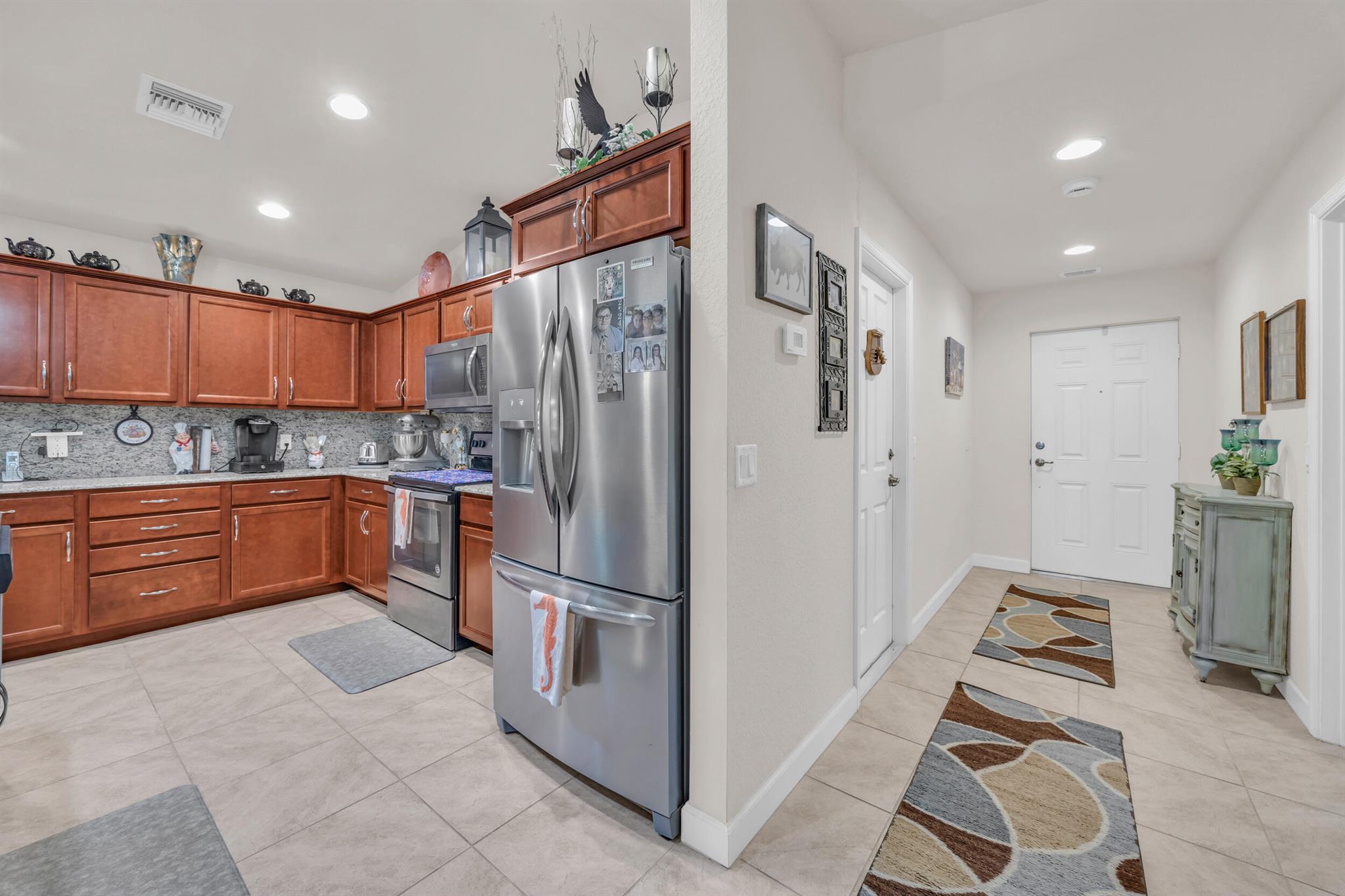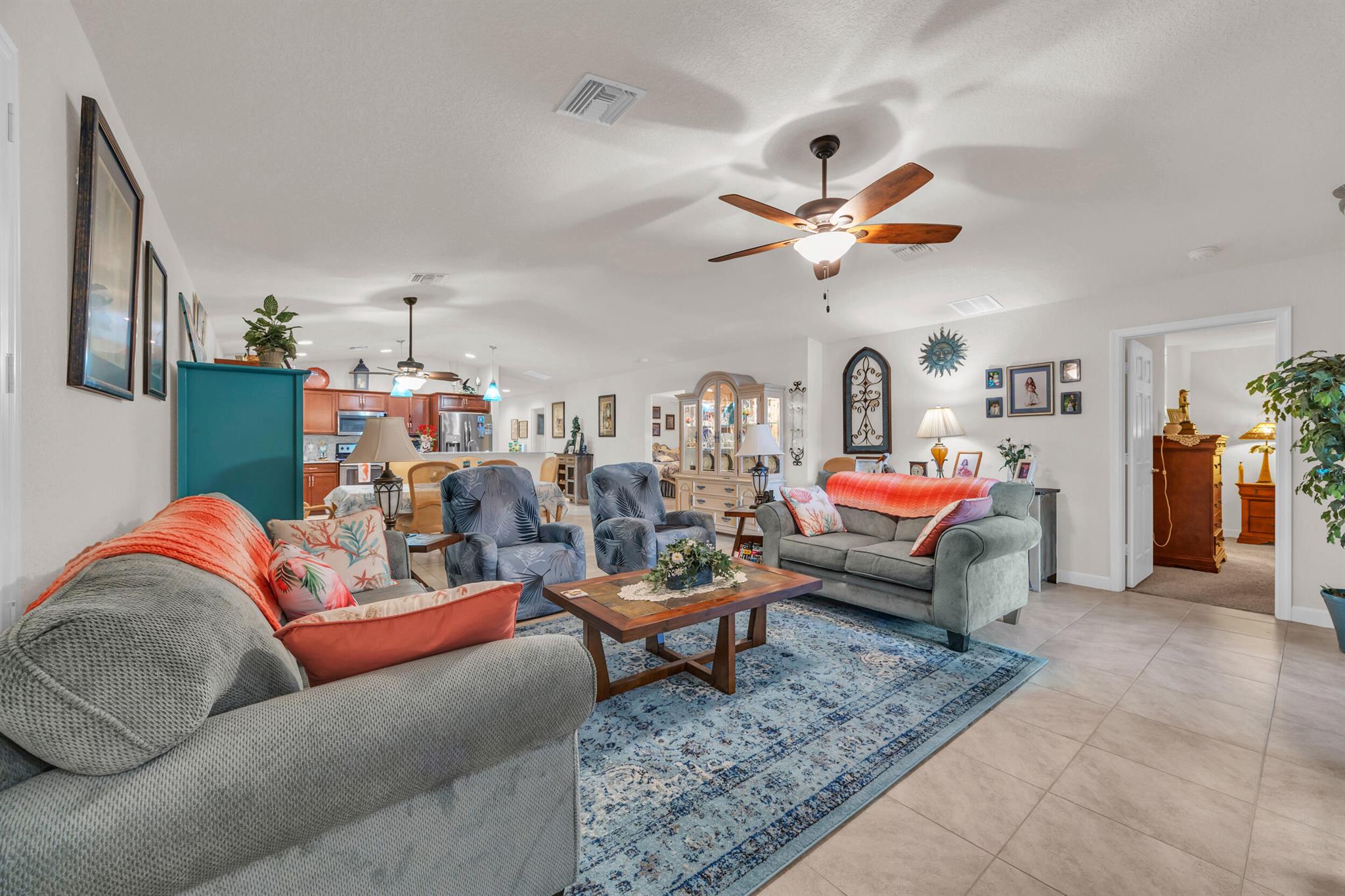Welcome to this beautifully maintained home in Spanish Lakes Fairways, a vibrant 55+ community in Fort Pierce. This open-concept layout features a spacious kitchen with wood cabinets, granite countertops, and stainless-steel appliances. Enjoy large living and dining areas perfect for entertaining, plus a cozy enclosed porch with stunning lake views. The primary suite offers a double-sink vanity and walk-in closet. Community amenities include free golf, pool, clubhouse, fitness center, tennis, and endless social activities. Move-in ready and perfectly designed for the Florida lifestyle!