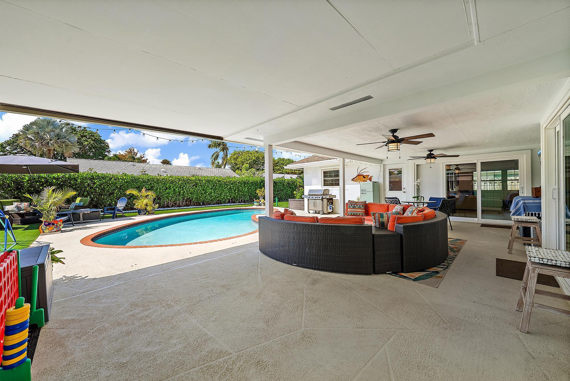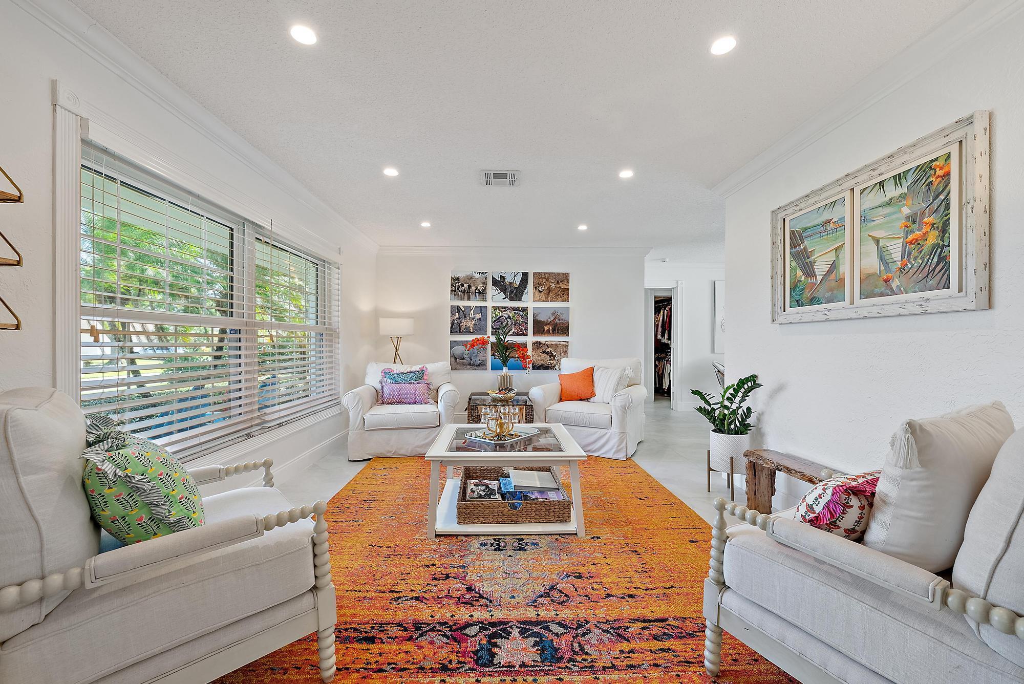 Experience the ideal blend of Florida elegance and Serena & Lily-inspired design in this light & airy Palm Beach Gardens CBS home. Featuring designer finishes throughout, this residence exudes modern sophistication & comfort with sleek, modern details such as 36'' porcelain flooring (2024), crown molding, Impact glass, new interior/exterior paint, 2024 professionally designed bathroom renovations & a 2024 customized resort-style entertainment area -- featuring an expansive covered patio, large heated saltwater pool, lush turf backyard, and plenty of space for soccer, a garden party or a backyard BBQ. Perfect for fun or relaxed Florida evenings with friends. (see more)