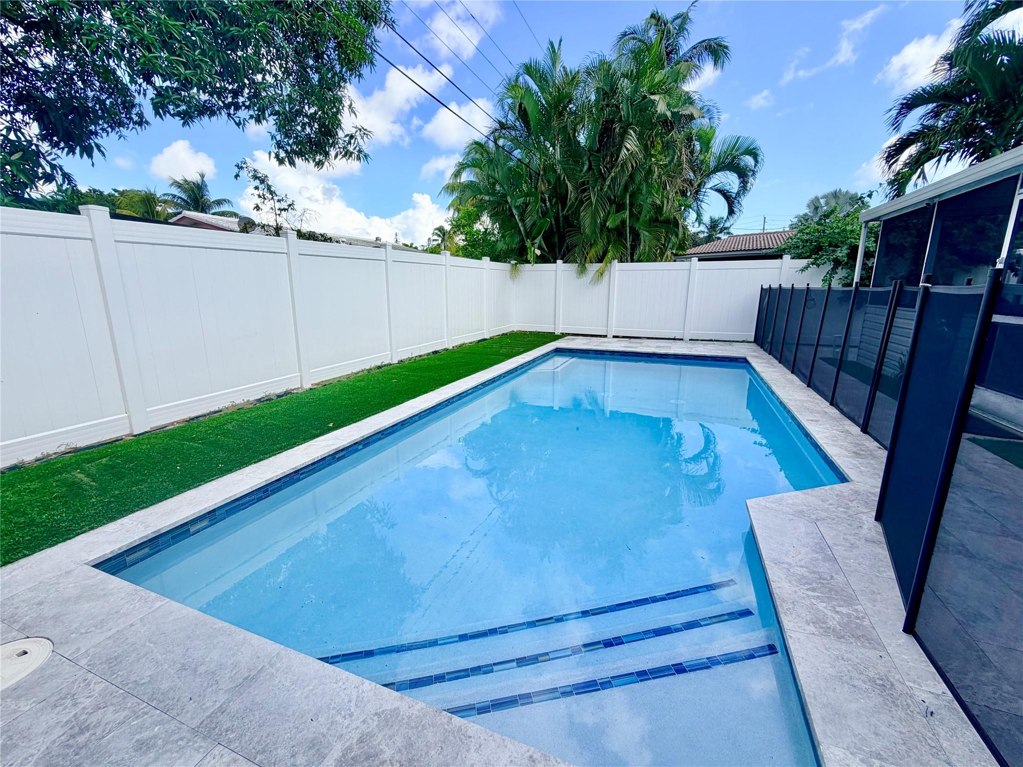 Wilton Manors Home made for Entertaining!!! Wood burning fireplace. Vaulted ceilings with exposed beams. New ductwork throughout. HVAC 2022. Saltwater pool with Screened in Patio. Backyard has new PVC fencing and artificial grass. Pool was redone in 2024. House has all impact windows.