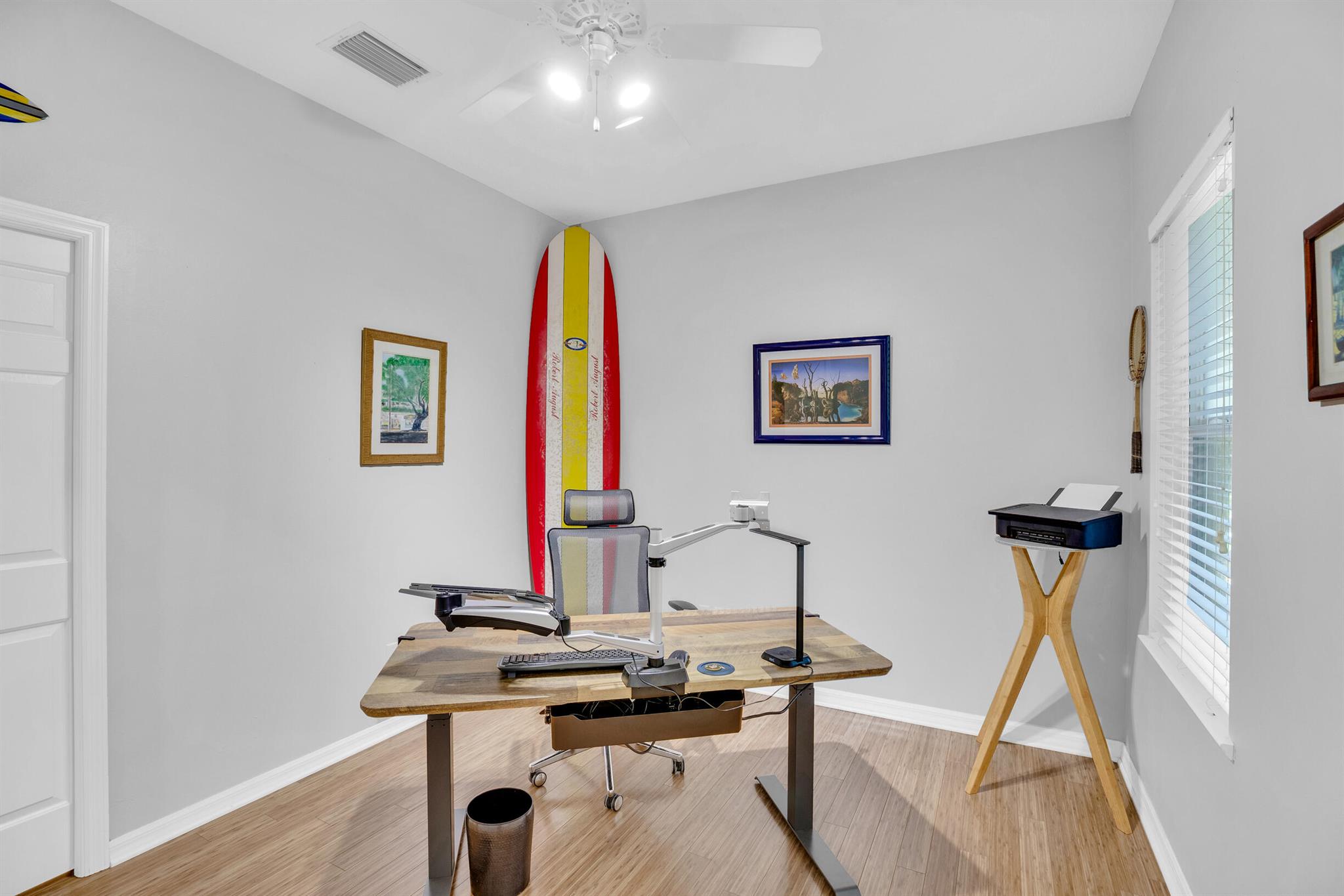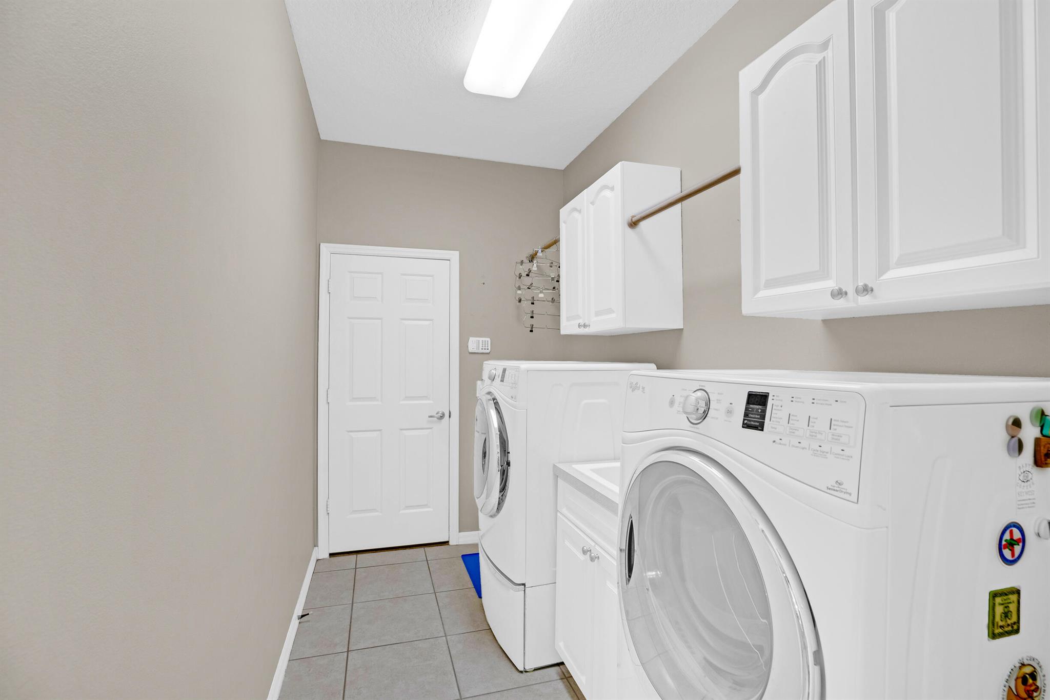 Nestled in the sought-after enclave of The Crossing, this custom-built pool home awaits. Lush .36/acre lot affords tranquility and privacy. Step inside to enjoy living areas that open to the solar-heated pool. Island kitchen features miles of cabinets and counter space with bar seating. Luxe master suite has walk-in closets, dual vanities, soaking tub, and roomy shower. Den adjoins the primary suite and can easily flex as 4th bedroom/nursery with walk-in closet. Circular drive and side-entry garage can park plenty of cars! Reroofed and replumbed, with up-to-date HVAC units and water heater, full hurricane protection and built-in generator. One-acre lake is the focal point of this elegant neighborhood. Life is a breeze on these oak-canopied streets!