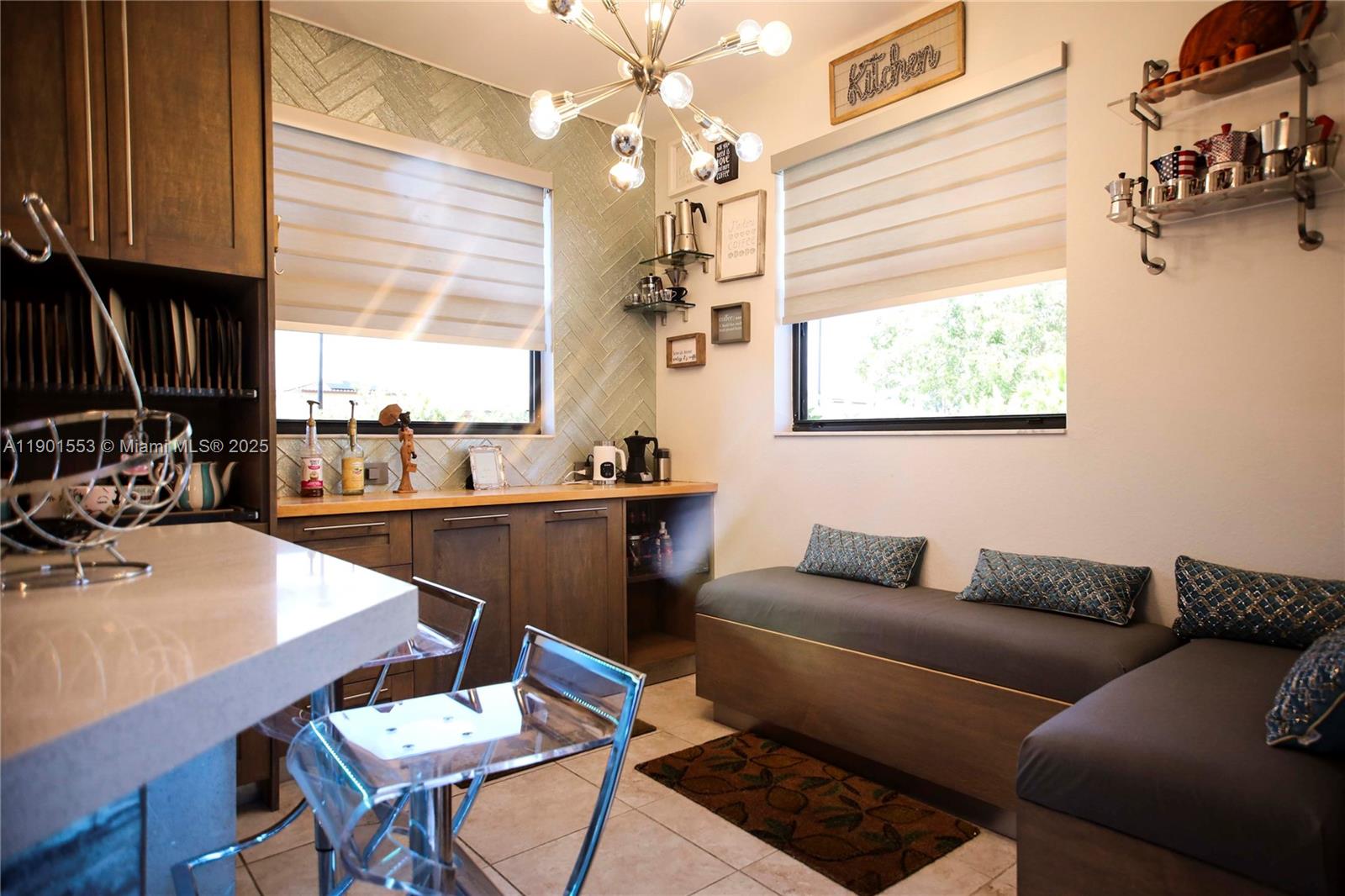 Welcome to this beautifully upgraded 5-bedroom, 3 bath corner-lot home in the desirable Silver Palms community. This residence offers a perfect blend of modern style, space, & functionality. The open layout features tile floors, spacious living & dining areas, & a stunning kitchen with ceiling-height cabinetry, quartz countertops, a waterfall island, SS appliances, a spice cabinet, plenty of storage, & a charming coffee bar. A private in-law suite on the 1st floor with a full cabana bath, ideal for guests or extended family. Upstairs, 4 bedrooms & 2 baths are complemented by elegant vinyl flooring, & a convenient laundry room. The primary suite includes a custom-built closet. The fenced backyard features an extended marble paved patio with lighting. The lot is large enough for a pool.