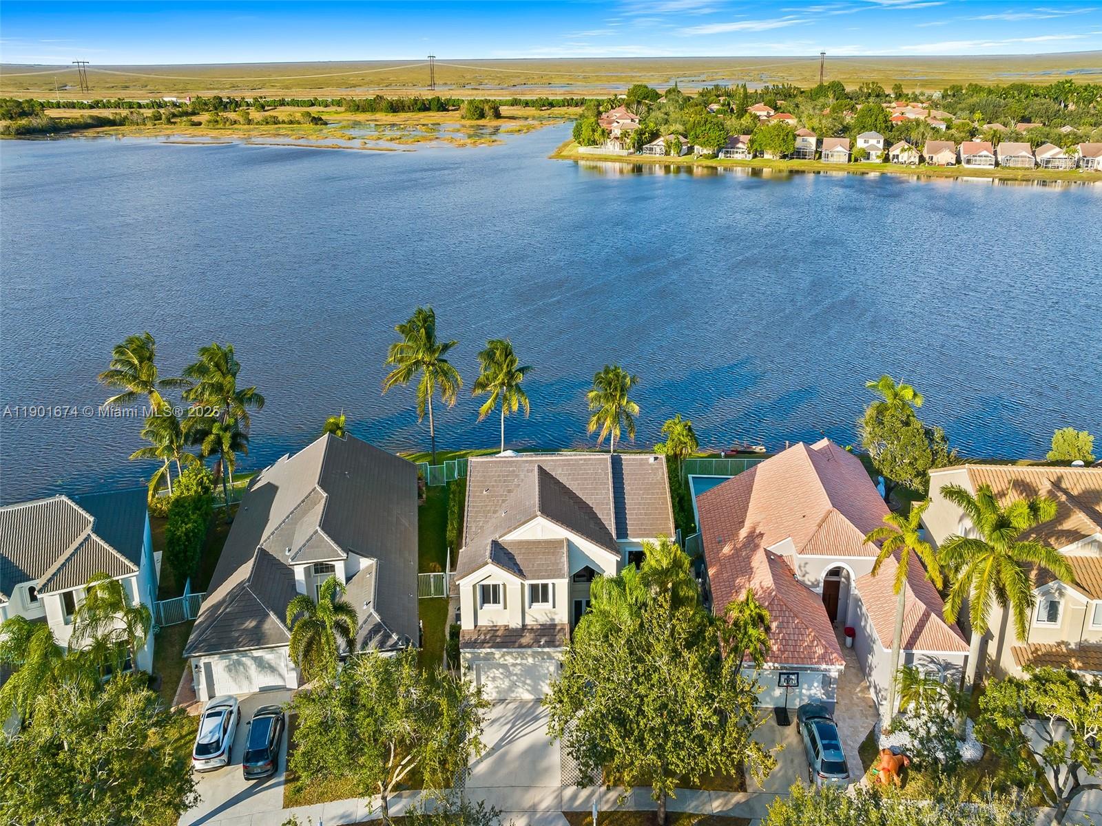 Welcome to this beautifully maintained and thoughtfully updated home, showcasing true pride of ownership. With over 3,400 total sqft, this spacious 5-bed, 3.5-bath residence offers a formal living and dining room, plus a separate family room—all with expansive lake views.The updated kitchen features 42” cherry wood cabinets, granite counters, a Sub-Zero fridge, and KitchenAid appliances, perfectly positioned to overlook the serene backyard, pool, and lake.Upgrades include FULL impact windows and doors (plus accordion shutters), a brand new roof (2024), and a newer AC unit. The fully fenced backyard is an entertainer’s dream with a saltwater pool and built-in outdoor kitchen. Located in the gated community of The Falls and zoned for A++ schools—this is the home you’ve been waiting for!