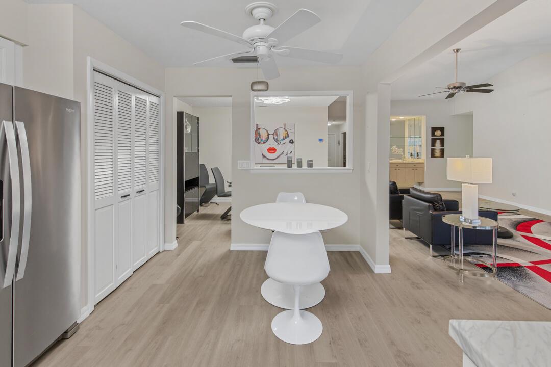 Welcome to this beautifully maintained 3-bed, 2-bath CBS home in the desirable Osprey Creek community of MDCC/West Villages. Features include cathedral ceilings, plantation shutters, and an open layout perfect for relaxed living and entertaining. The kitchen offers upgraded appliances, new cabinetry, and a designer backsplash, flowing into a bright dining area and wet bar. The spacious primary suite includes a walk-in closet and a modern, updated bath. Enjoy year-round outdoor living from the screened porch, surrounded by lush landscaping. Extras include accordion shutters, a 1-car garage, and an extended driveway fitting 5-6 vehicles. Close to A-rated schools, golf, shopping, dining, I-95, and the Turnpike. Leases allowed 2X a year. no waiting period