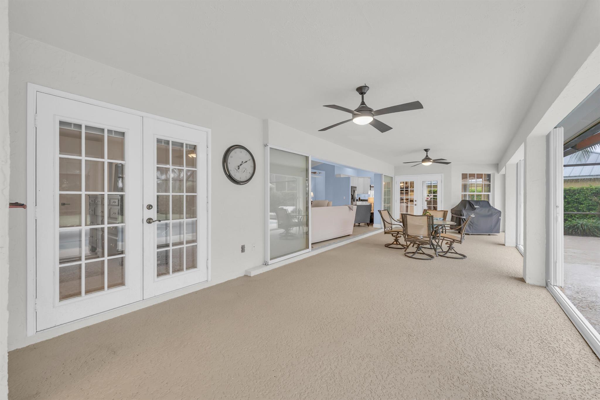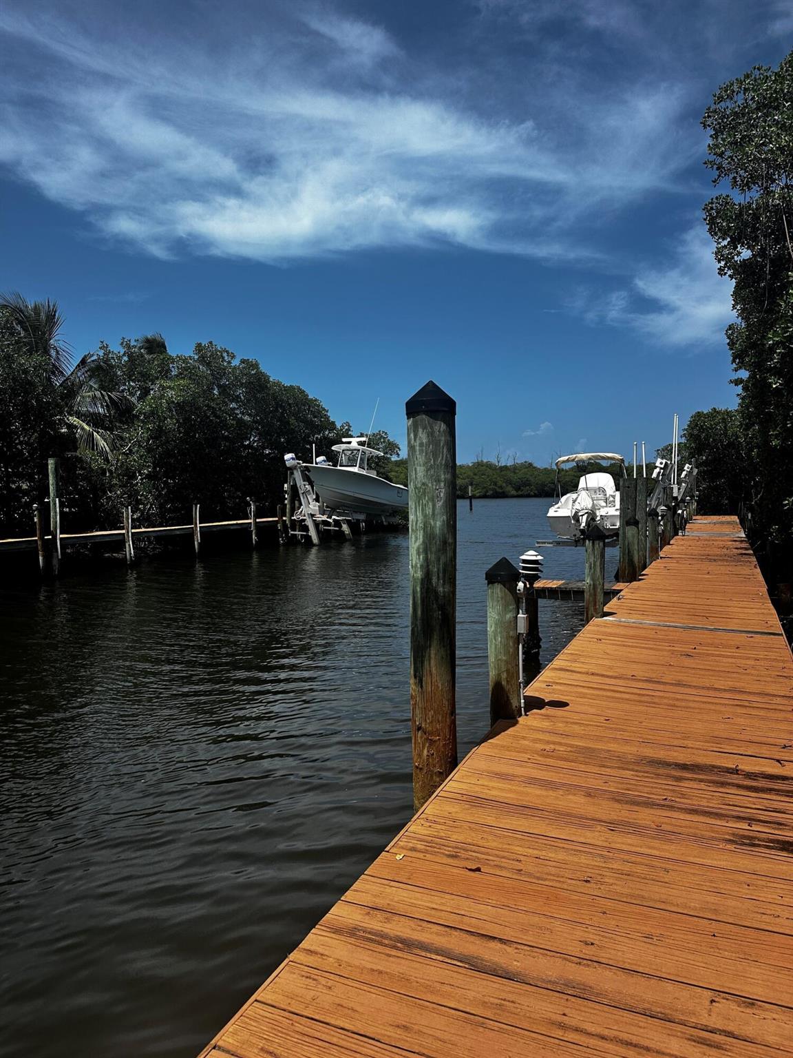 Single family home located in the gated waterfront community of Governors Landing. Enjoy coastal living in this beautifully maintained 3 bed 2.5 bath home. 35-foot DEEDED DOCK is included, ideal for boating enthusiasts & those seeking a relaxed Florida lifestyle. Open concept floor plan & volume ceilings. Kitchen features a sandstone counters, newer appliances & inviting dining area. Large covered & screened lanai includes half bath & outdoor shower, Primary suite offers dual sinks, walk in custom closet, separate tub & shower. All new interior solid core wood doors. 3rd bedroom includes murphy bed, perfect for spare bedroom/den or office. 2 car garage with custom cabinetry & epoxy floor. Accordion shutters and 2015 roof. Only a 5 min drive to the scenic Jupiter Island beach.