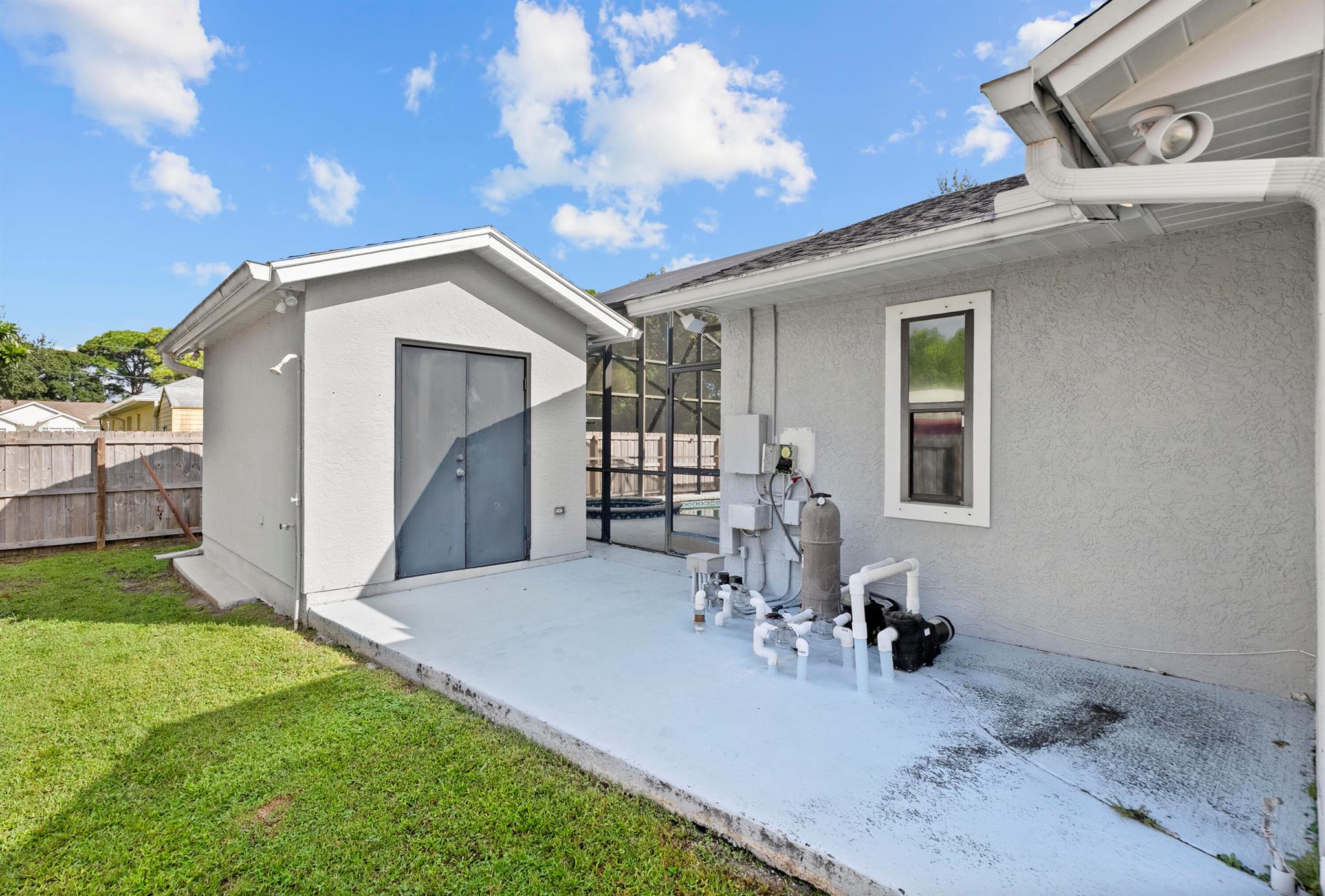 Inviting 3-bedroom, 2-bath pool home featuring a versatile bonus room located just off the primary suite, ideal for a home office, gym, or nursery.Recent updates including a roof and water heater (2018), kitchen appliances, washer, dryer, and patio screens (2022), and a new A/C system and fence (2023). The kitchen and bathrooms have been recently renovated, and the pool deck has been recently painted.The backyard offers a relaxed setting for everyday living and entertaining, complete with a summer kitchen, screened patio, and pool, along with a storage shed for added convenience. With no HOA, you'll enjoy the freedom to truly make this property your own.Ideally located minutes from the Turnpike, I-95, Crosstown Parkway, and US-1, this home provides an easy commute to nearby shops,