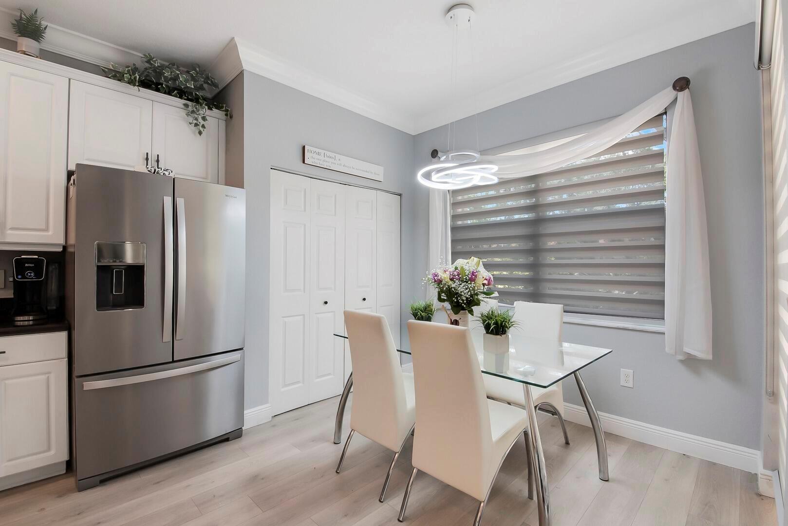 Welcome to this beautifully maintained 4-bedroom, 3.5-bath townhome nestled in the sought-after Greystone neighborhood. This home offers a perfect blend of style, comfort, and functionality, featuring neutral flooring and elegant crown molding throughout the main living areas. Enjoy formal gatherings in the spacious dining room or relax in the inviting living room with sliding glass doors that lead to a covered and open patio--ideal for indoor-outdoor living. The kitchen is a chef's dream, boasting granite countertops, sleek stainless-steel appliances, crisp white cabinetry, under-cabinet lighting, snack bar and a cozy breakfast nook with its own slider to the patio.