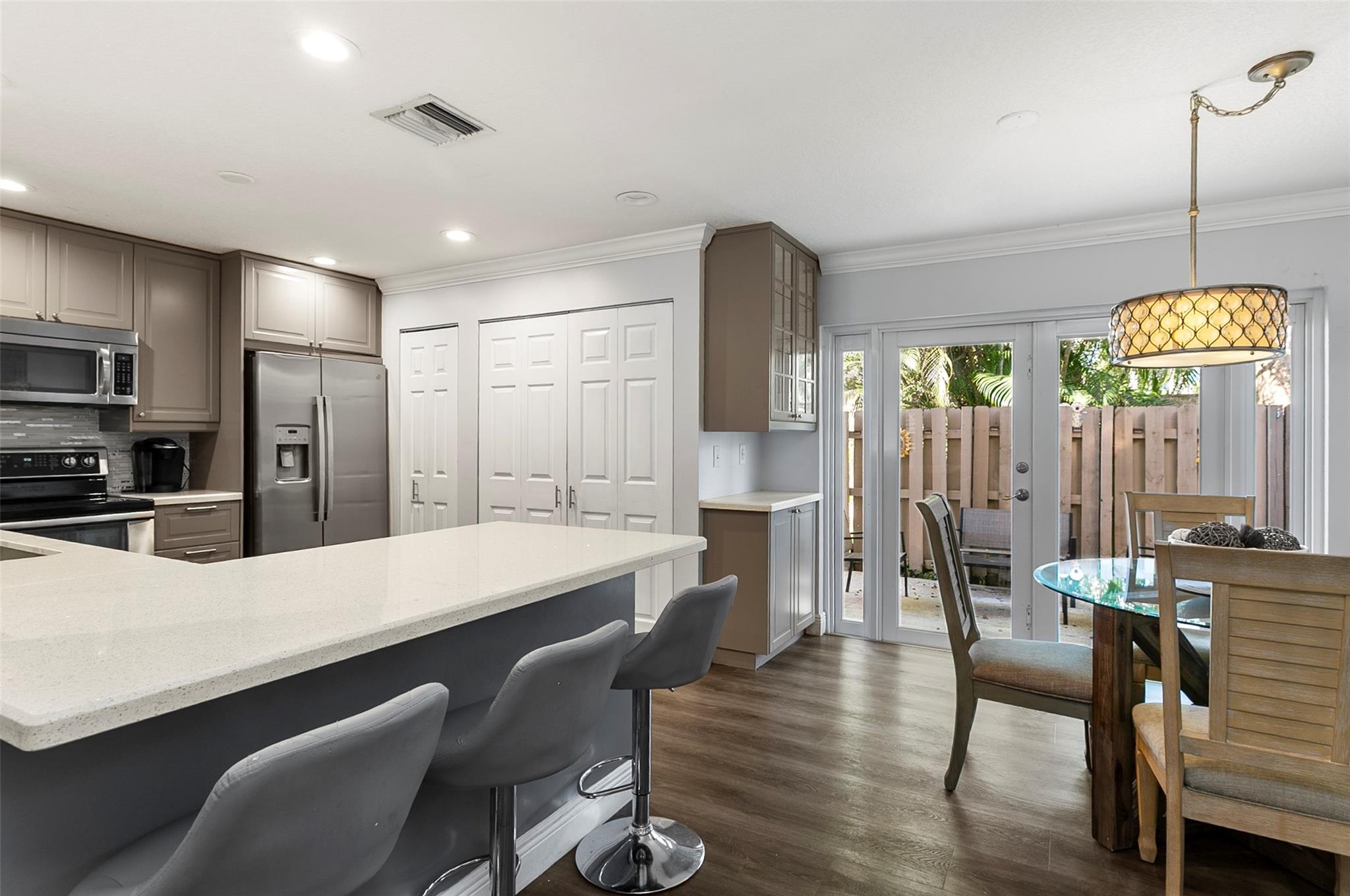Welcome home to this beautifully updated 3-bedroom, 2.5-bath Townhouse in the heart of Sunrise! This light & bright two-story home features an open-concept layout with a stunning modern kitchen, oversized island, sleek cabinetry, and plenty of counter space for entertaining. Enjoy brand-new flooring throughout, modern ceiling fans in every room, hurricane windows, and a spacious outdoor patio perfect for relaxing or hosting guests. The home has been immaculately maintained with fantastic upgrades and thoughtful details throughout. Located in a desirable community with lovely amenities. Conveniently situated near shopping, dining, and major highways — this townhouse truly has it all including a roof from 2019!