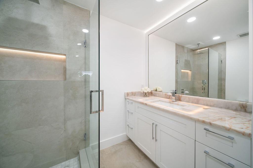 Bring only your toothbrush and move right into your dream home! Completely redesigned with the finest finishes, this 3BR/3.5BA home offers luxury and comfort at an incredible price. Enjoy a chef's kitchen with a butler's pantry, stunning custom cabinetry, and high-end appliances. Each bedroom is an ensuite with custom walk-in closets. The built-in outdoor kitchen overlooks a beautiful golf and lake view, perfect for entertaining or relaxing in total privacy. Elegant, move-in ready, and located in the prestigious Boca Woods Country Club--this home is a true gem!