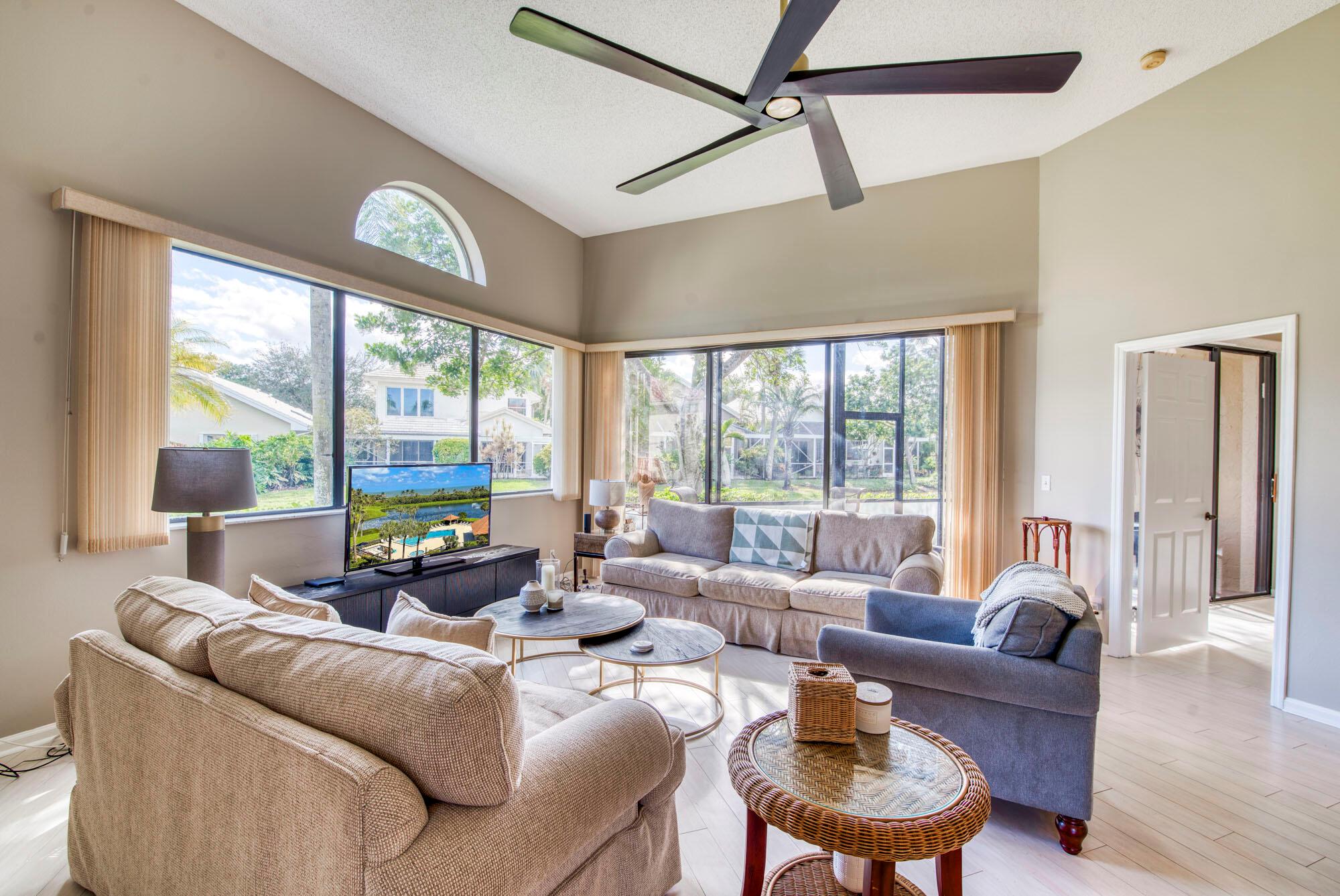 Welcome to this single level 3BR 2BA corner unit with highly desirable southern exposure all on one level, in the friendly community of Windermere in PGA National. A few highlights include, high ceilings, 2025 AC, LVP flooring, added windows offering extra natural light, and extended garage. The oversized screened lanai has gorgeous peaceful views of the canal - perfect for enjoying a morning coffee or evening cocktail! The community of Windermere offers a heated community pool and well-maintained landscaping. All located just minutes from the PGA National amenities including world-class golf, tennis, pickleball, croquet, and more.