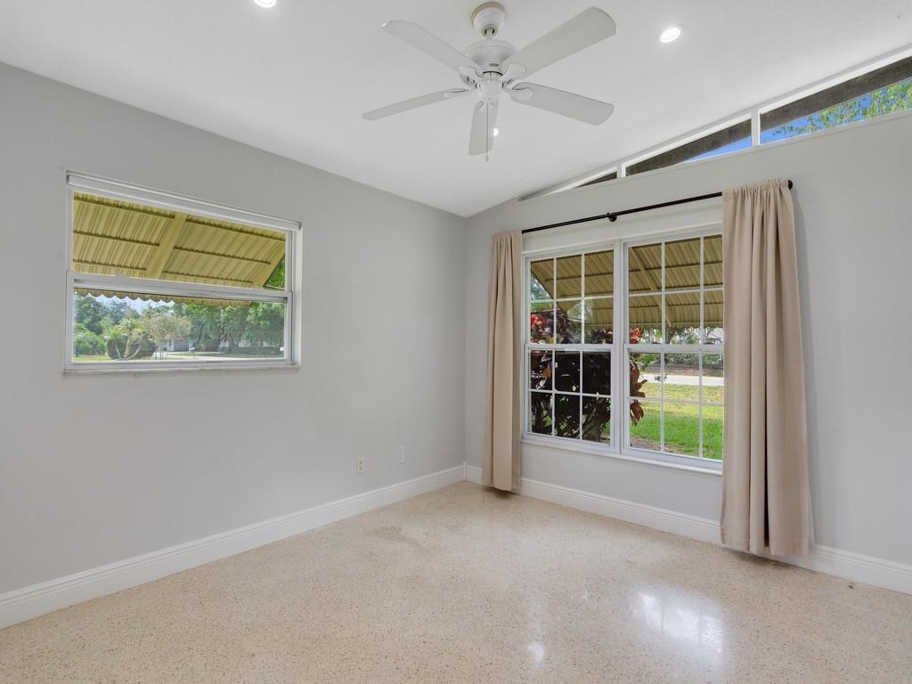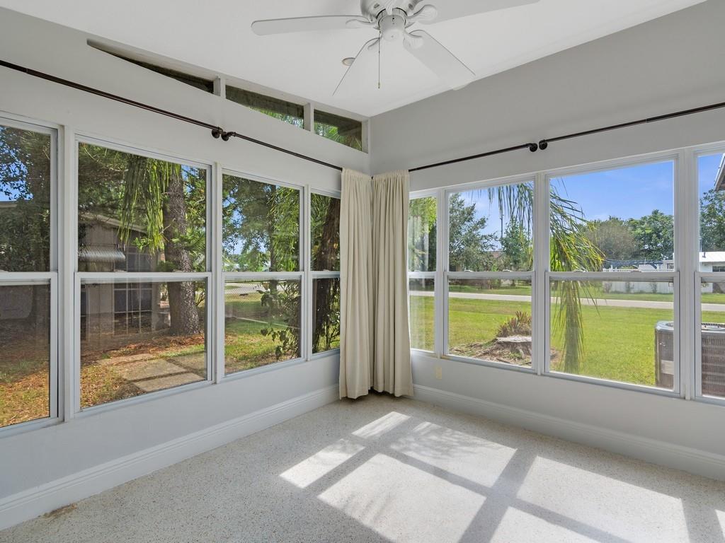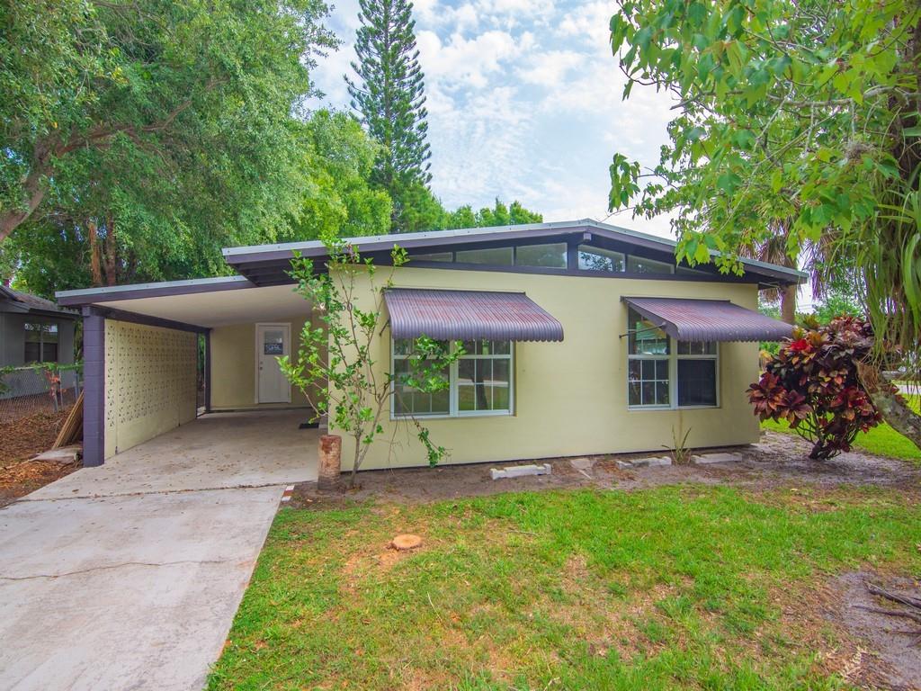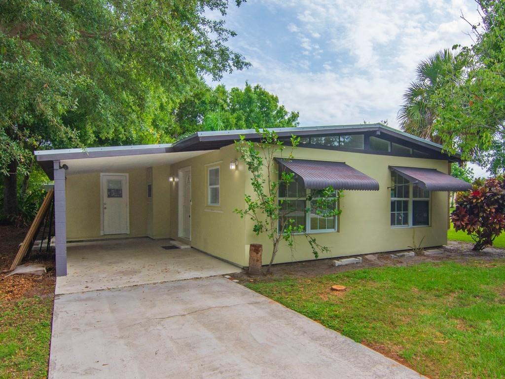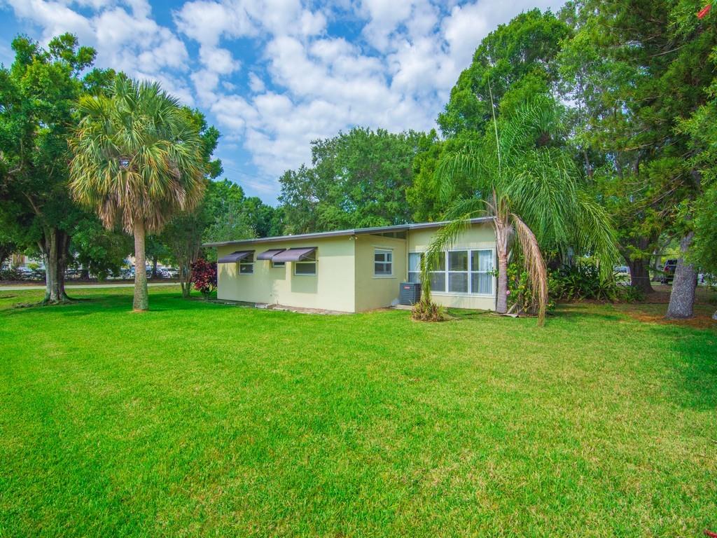 Income Property... Charming 2 bed, 1.5 bath concrete block home on a large corner lot in a safe & quiet neighborhood. Features incl: 2017 metal roof, updated 2017 electric panel, refinished terrazzo floors throughout, central A/C (2016), ceiling fans in every room & a freshly painted interior. Enjoy the air-conditioned Florida room, separate laundry space, and rinse off after the beach in the outdoor shower. Just minutes from beaches, dining, and shopping. Great income potential—perfect for first-time homebuyers or investors seeking comfort, convenience & coastal living.