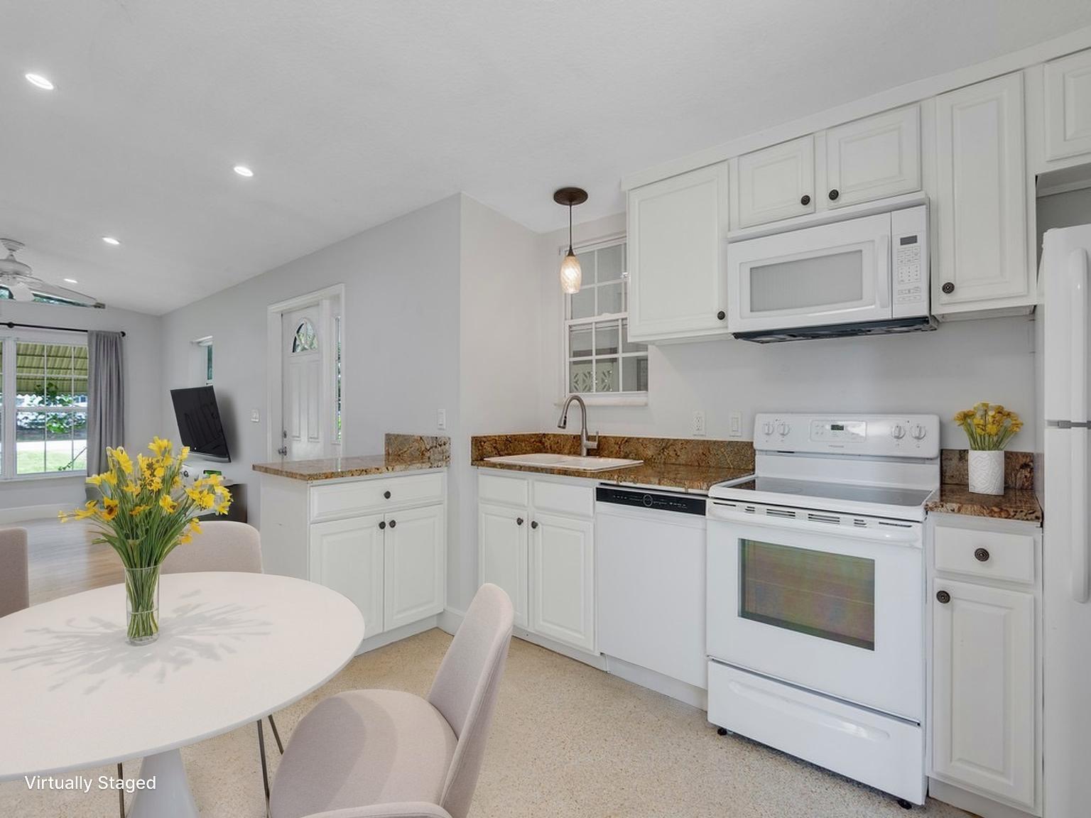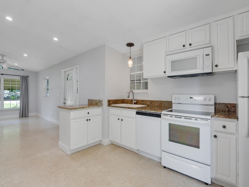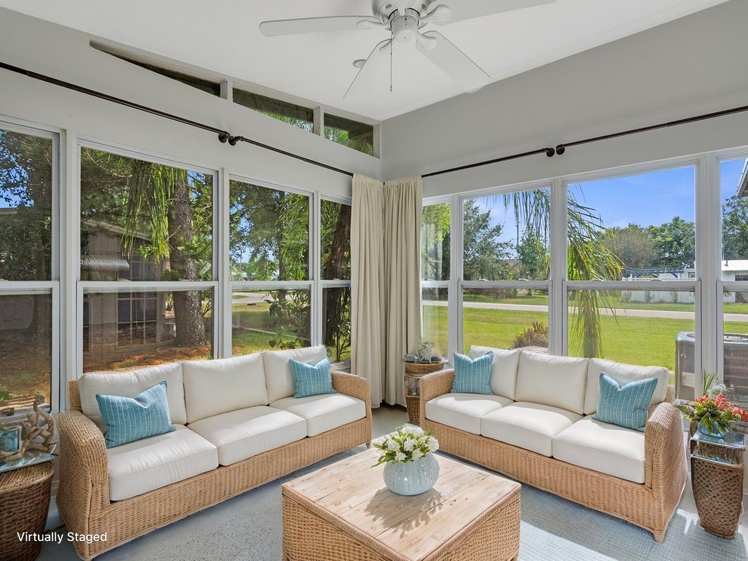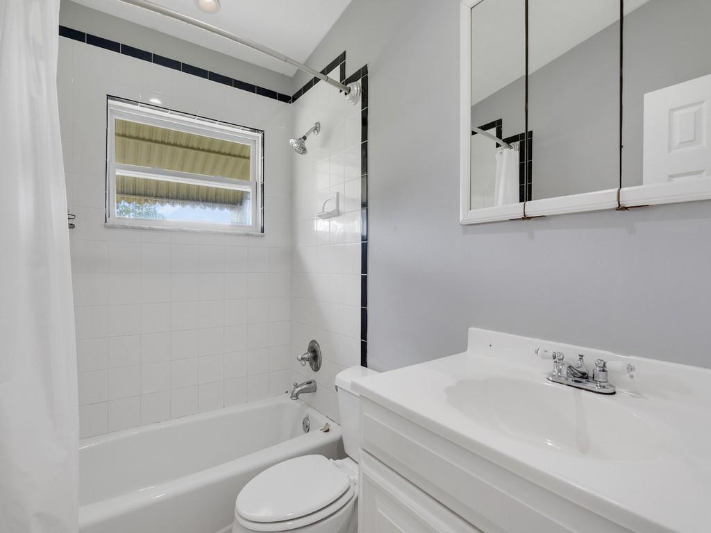 Income Property... Charming 2 bed, 1.5 bath concrete block home on a large corner lot in a safe & quiet neighborhood. Features incl: 2017 metal roof, updated 2017 electric panel, refinished terrazzo floors throughout, central A/C (2016), ceiling fans in every room & a freshly painted interior. Enjoy the air-conditioned Florida room, separate laundry space, and rinse off after the beach in the outdoor shower. Just minutes from beaches, dining, and shopping. Great income potential—perfect for first-time homebuyers or investors seeking comfort, convenience & coastal living.