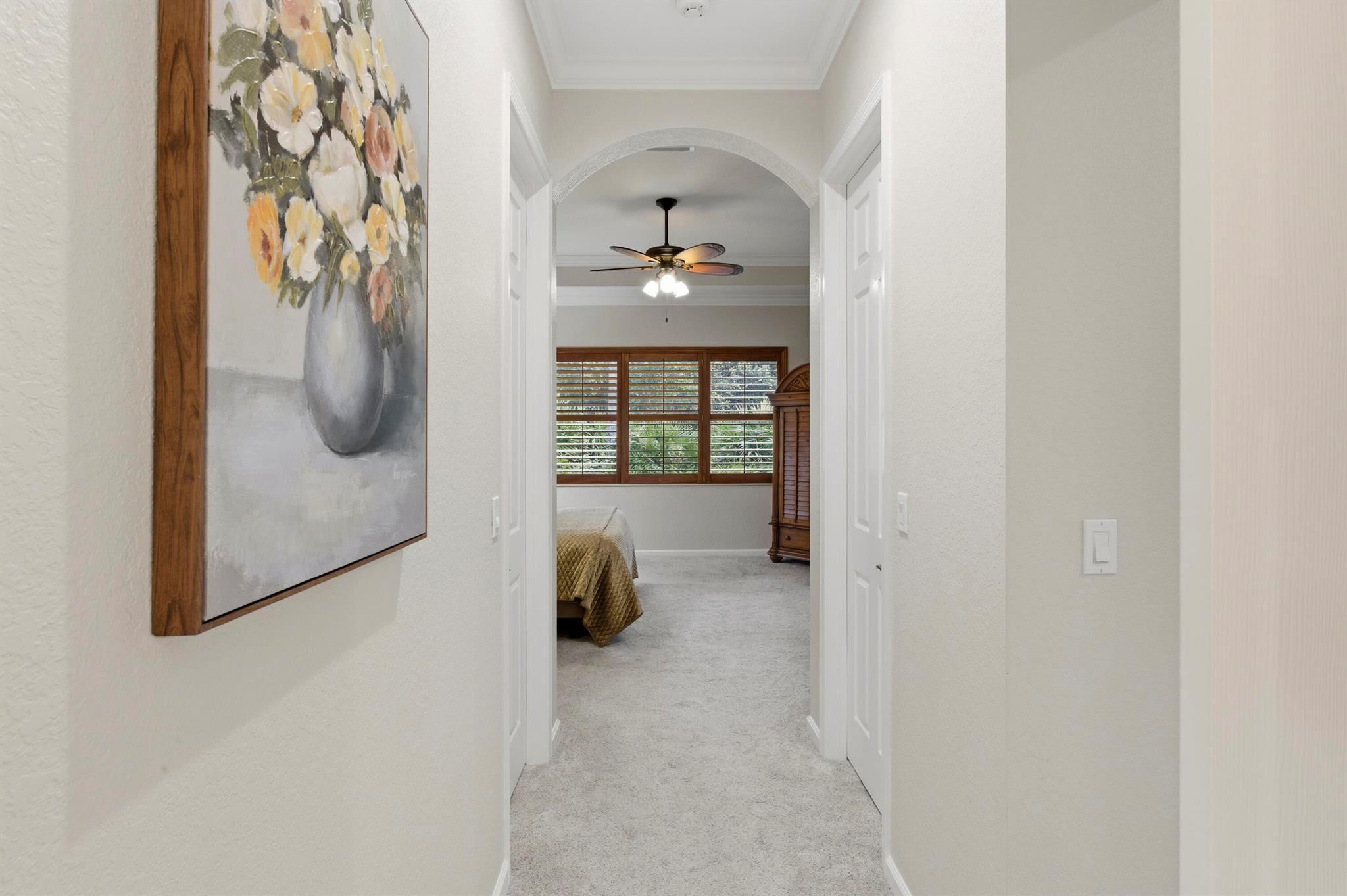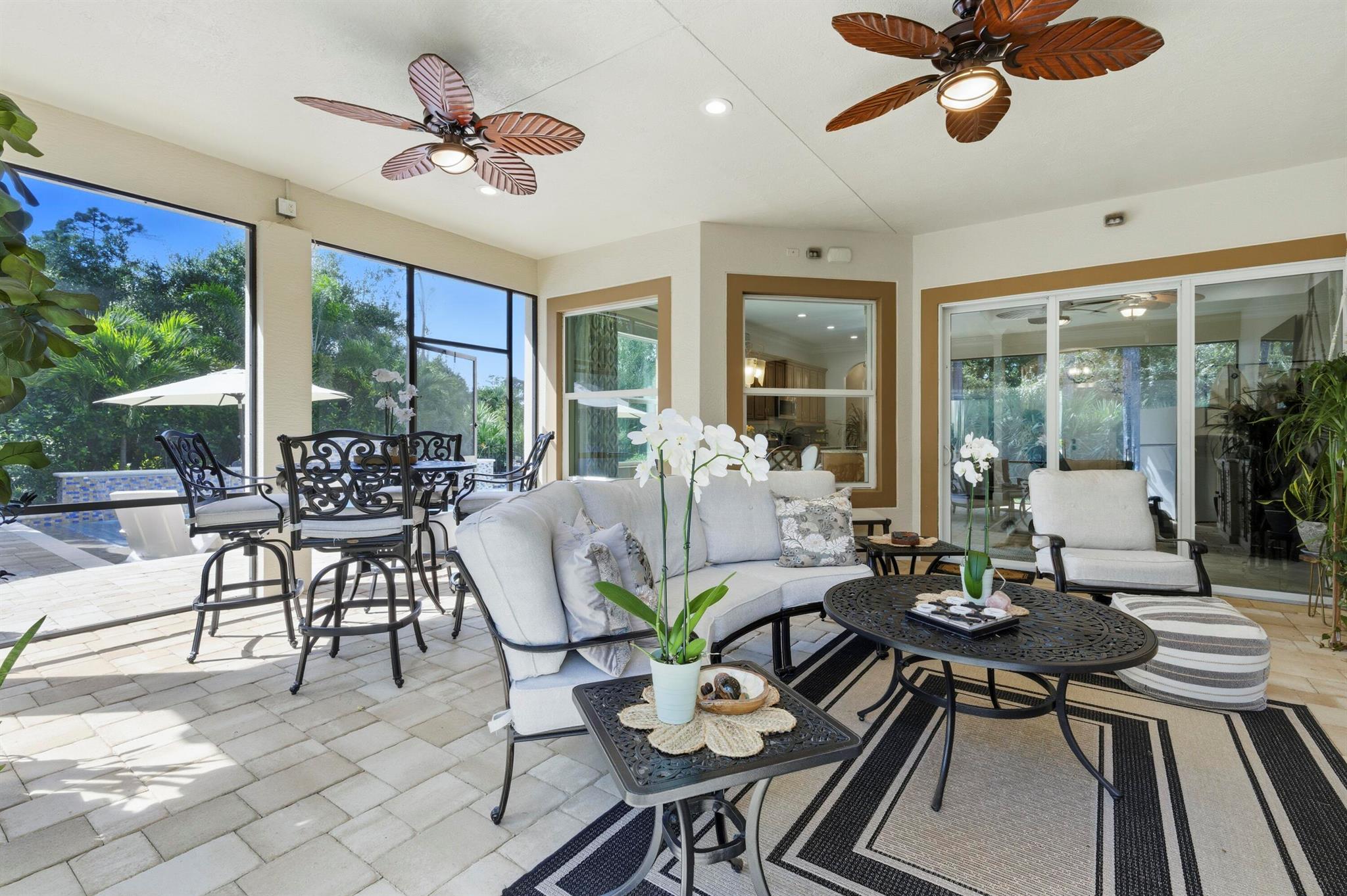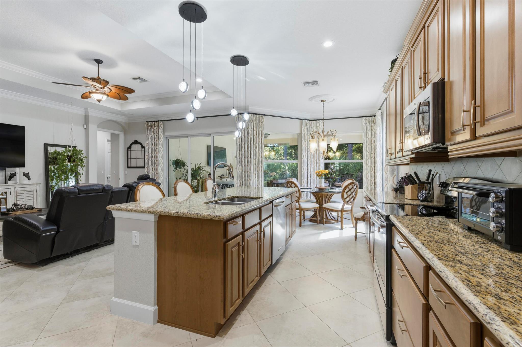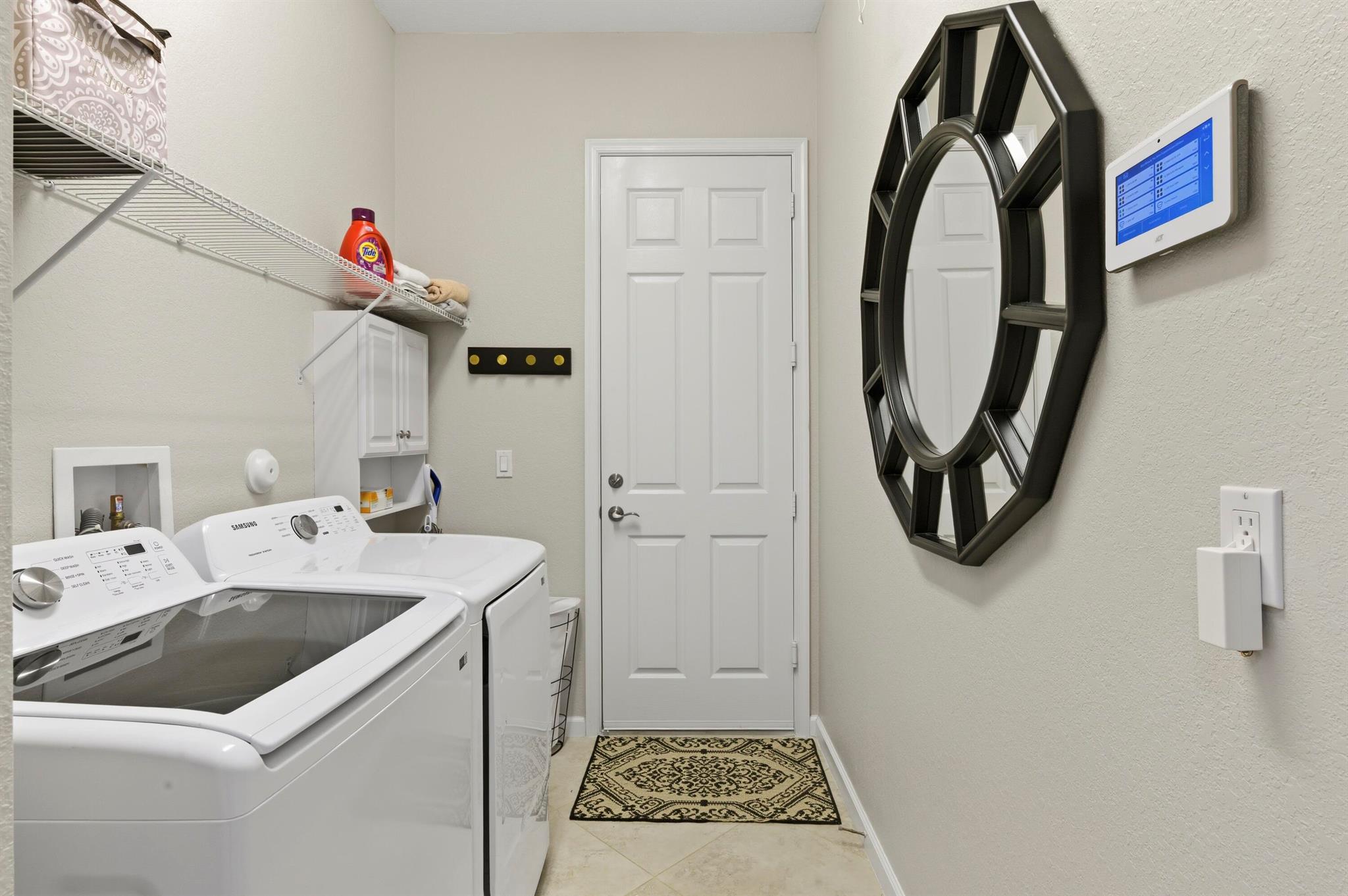 Welcome to Savannah Estates (aka Venetian Village), a gated community of just 50 homes. This well-maintained CBS 3BR/2.5BA pool home offers a 3-car air-conditioned garage with epoxy flooring and is ideally located on a cul-de-sac. Built in 2013, features include impact windows, crown molding, tiled common areas, and refreshed 2024 landscaping with remote irrigation. The driveway, patio, and pool deck are covered with brick-pavers. Enjoy a screened lanai overlooking the heated saltwater pool and spa with lighted waterfalls (2024) --perfect for entertaining or relaxing in style. A kitchen window was added for more natural light and a pool view. Convenient to I-95, schools, shops, medical services dining, parks, beaches, and golf. PBI is approx 45 minutes away. Up to three pets welcome.