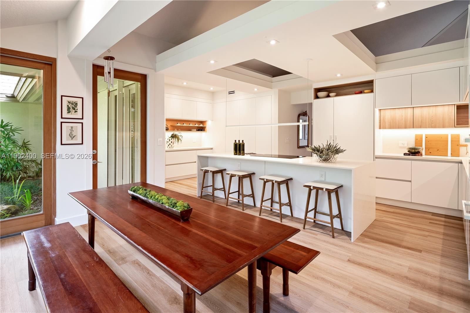 Welcome to an enchanting lakefront residence nestled within the prestigious gated enclave of Banyan Drive in Coral Gables. Remodeled in 2024, this spectacular contemporary estate offers 6,239 square feet under air, w/7,611 total square feet, set on over an acre of lush grounds graced w/majestic oak trees & sweeping water views. Hand-picked by the owner for its expansive lake vistas & the pleasure of continuous prevailing breezes, this elevated architectural masterpiece harmonizes seamlessly w/its natural surroundings & features an exceptionally low carbon footprint. Warm wood floors, brand-new chef’s kitchen, new spa-inspired baths, & multiple entertaining spaces create a refined yet relaxed atmosphere. Each room is thoughtfully designed to capture abundant natural light & frame breathtaking views of the tranquil lake & verdant landscape. The home’s exceptional orientation & generous outdoor areas make it ideal for both intimate gatherings & grand-scale entertaining w/indoor & outdoor surround sound. Experience nature’s beauty w/early morning sails & sunset kayak rides from your own backyard, embracing a lifestyle that blends elegance, comfort, & recreation. Ideally located near Miami’s finest private schools, this Coral Gables address is uniquely served by Pinecrest Elementary, offering an exceptional educational advantage. This remarkable residence embodies a lifetime of elegance, serenity, & distinction in one of the most coveted lakefront settings. A Very Special Home.