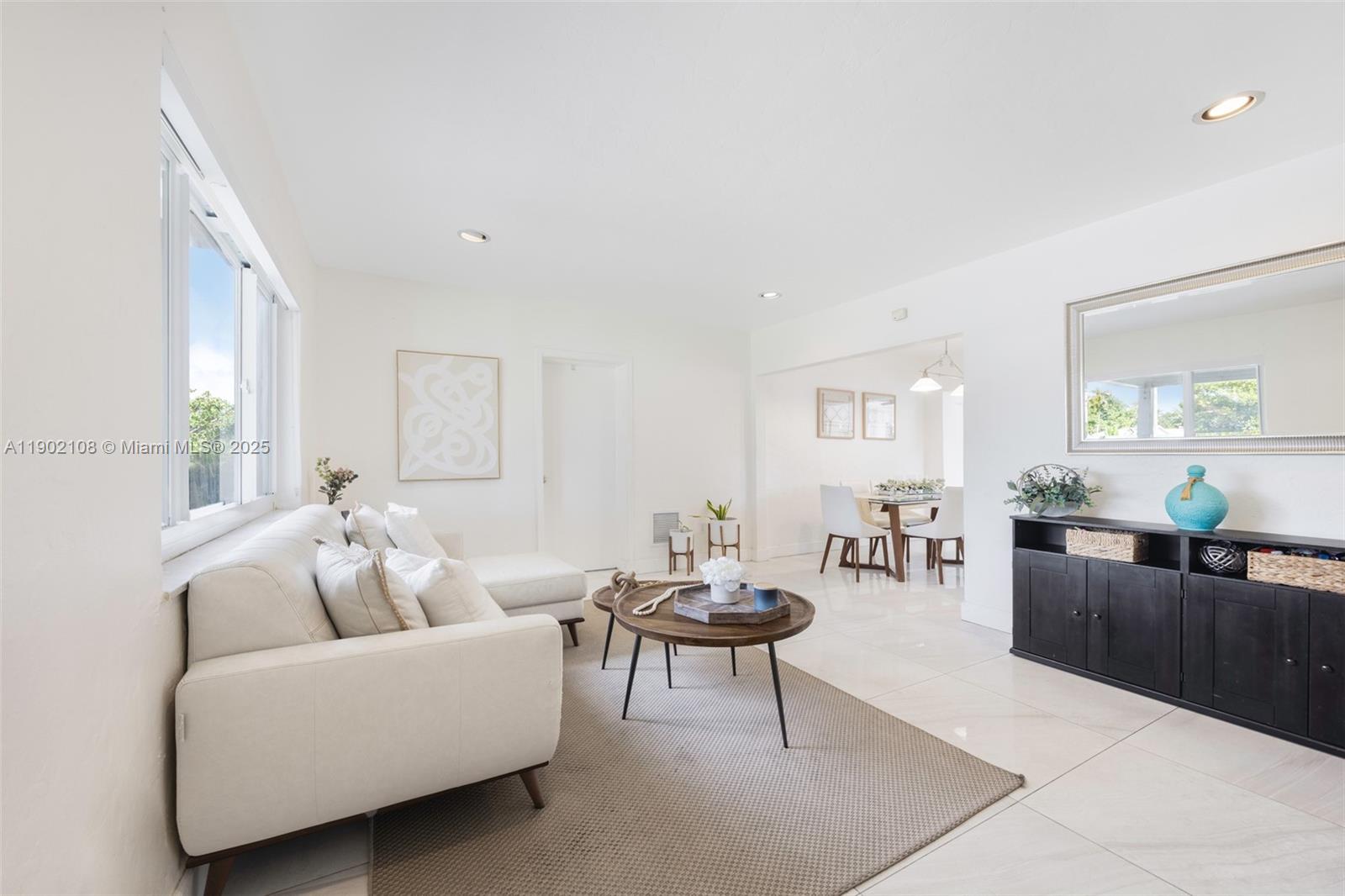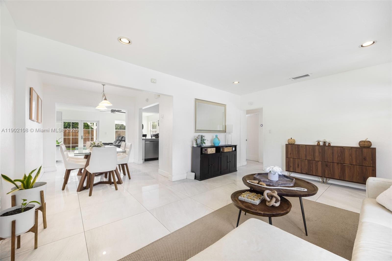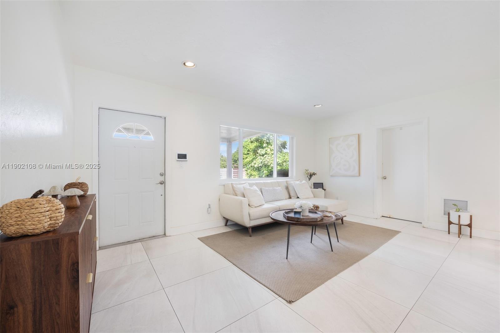 Set on a gated corner lot, this sun-filled 3-bedroom, 2-bath residence offers a practical layout with clean, updated interiors. The renovated kitchen features quartz countertops, stainless-steel appliances, and a snack bar that opens to bright living and dining spaces. Impact windows, a newer roof, and modern tile flooring enhance everyday comfort. Outdoors, a spacious covered terrace invites easy entertaining, while the fenced yard offers privacy and room to grow. Located just minutes from Coral Gables, Coconut Grove, and major roadways, this home offers both convenience and quiet residential appeal.