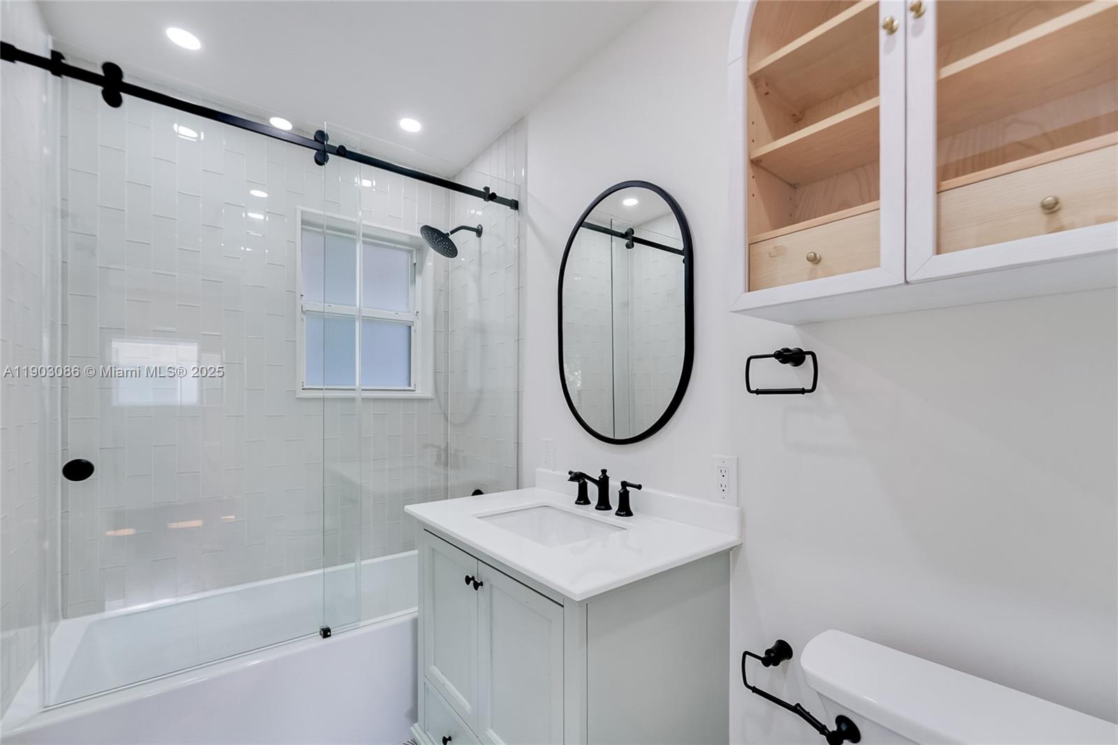 Beautifully renovated 3-bed, 2-bath home in Miami Shores featuring impact windows and doors, an open layout, and upgraded systems throughout. Interior highlights include engineered hardwood floors, Dolomite marble bathrooms, and a modern kitchen with white cabinetry, quartz countertops, farmhouse sink, KitchenAid appliances, and a gas stove. Smart-home upgrades—remote blinds, Ring cameras, and Vivint security—add comfort and peace of mind. Fenced backyard and recent updates: roof (2012), new A/C (2021), gas water heater (2024), and new washer/dryer. Conveniently located just a quick drive from the Miami Shores Country Club and community pool.