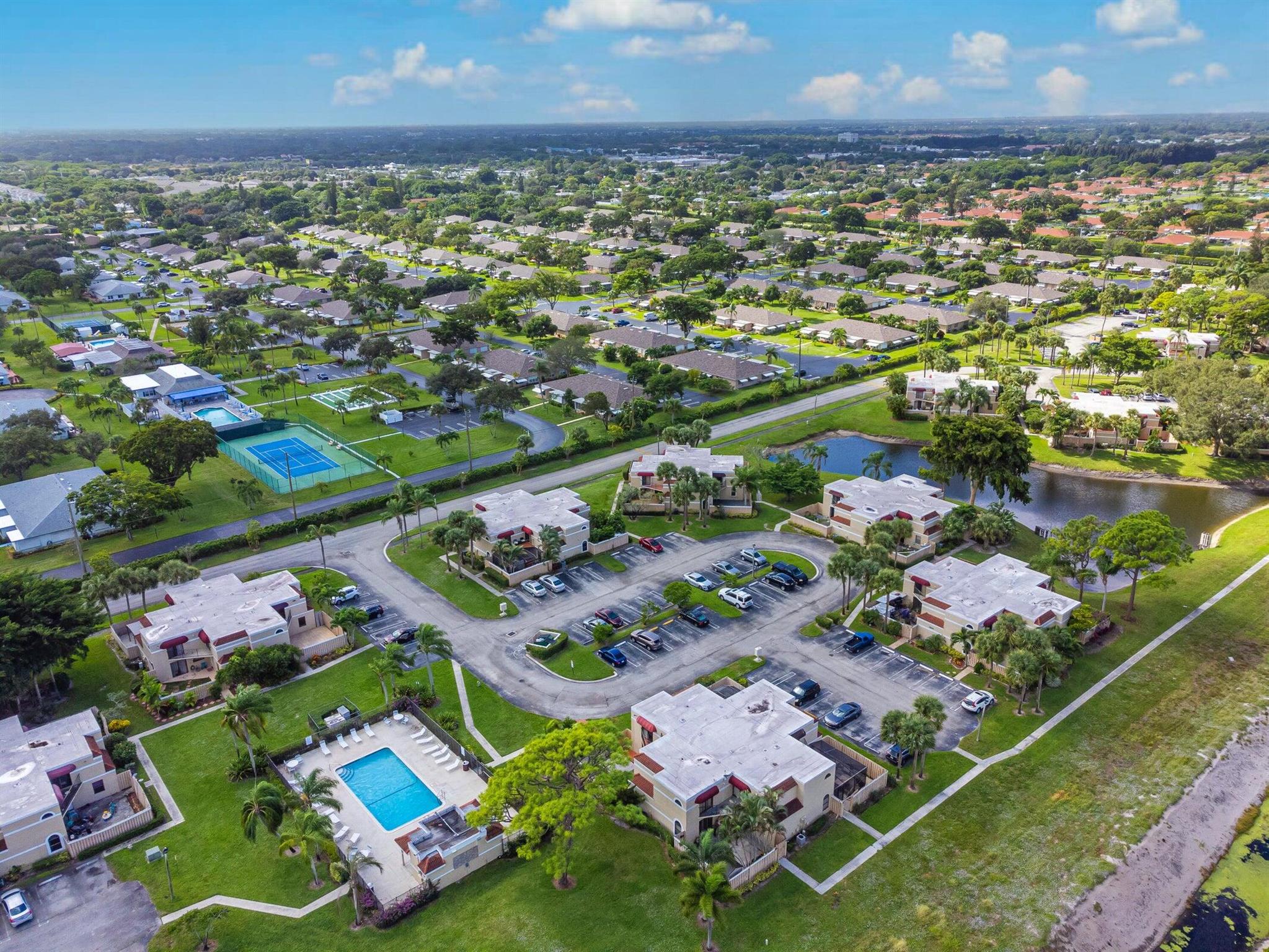 Beautifully updated 3BD/3BA townhome in the sought-after Chateau Wood community, offering tranquil lakefront views & stylish modern finishes! Enjoy peace of mind with accordion shutters throughout. The kitchen was fully renovated in 2020 with elegant cabinetry, granite countertops, tile backsplash, a large stainless-steel sink, and newer appliances, including a 2020 oven & dishwasher. All three bathrooms were refreshed in 2020 with new vanities & toilets, while the washer and dryer were replaced in 2023. The spacious living area opens to a private patio -- balcony overlooks the water -- perfect for relaxing or entertaining. Residents enjoy resort-style amenities including a pool, tennis courts, and a clubhouse. Conveniently located just minutes from Downtown Delray, beaches, dining, & I-95