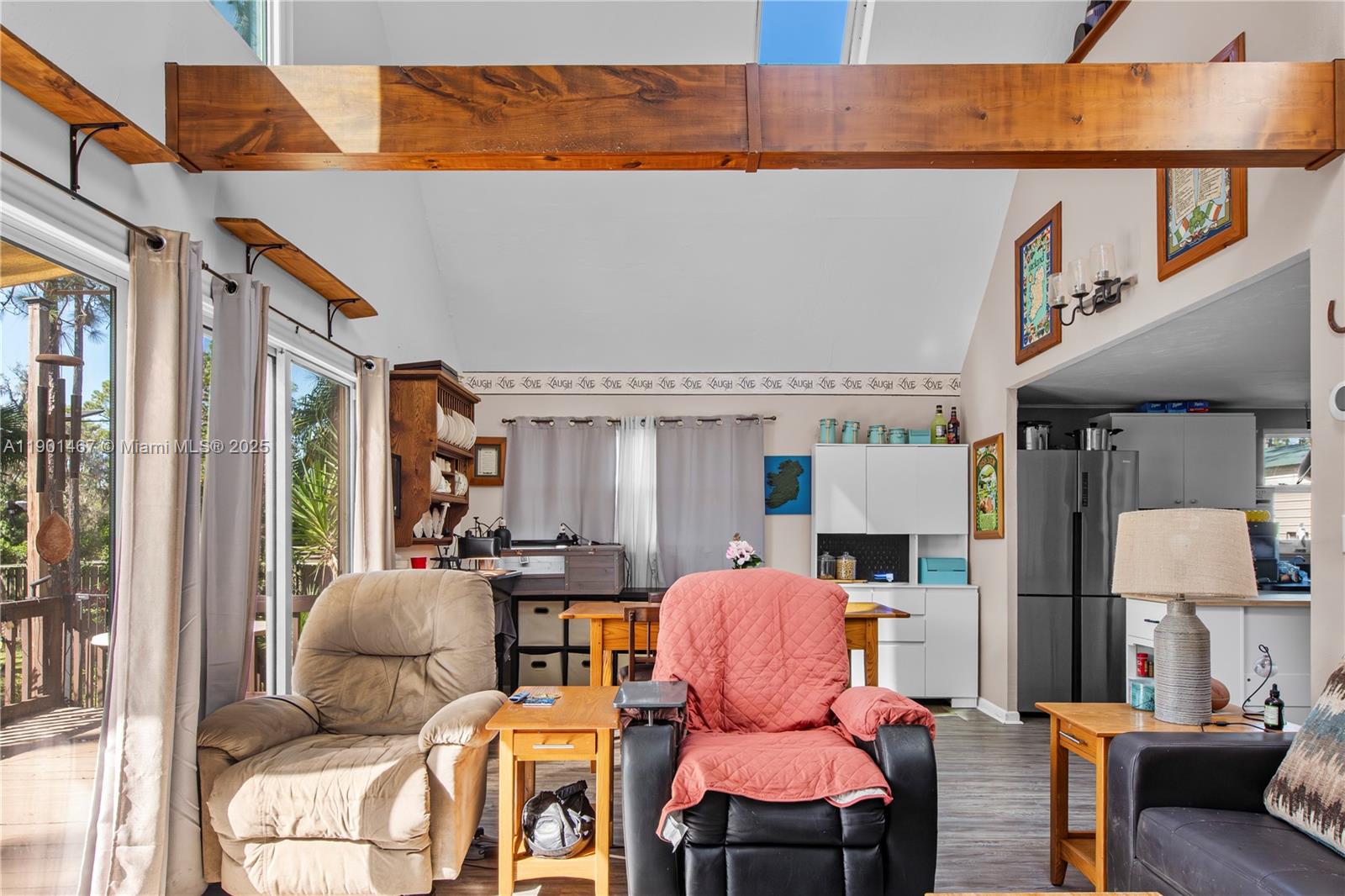 Rural Cabin surrounded by nature! This well maintained 2 bed 1.5 bath home is the perfect getaway. Upon entering you will be greeted by an open concept layout complete with cathedral ceilings and lvp flooring throughout! The open concept kitchen boasts ample cabinet space and stainless steel appliances. Large windows overlook the surrounding landscape while flooding the living space with tons of natural light. Downstairs is a large bedroom off the kitchen and a bathroom complete with an updated vanity and shower. The upstairs is split between a spacious loft and a bedroom boasting exposed beams and a half bath. In addition it has a newer AC and roof. Other amenities include a covered porch, deck, hot tub, and outbuilding. All appliances convey. Schedule your showing today!
