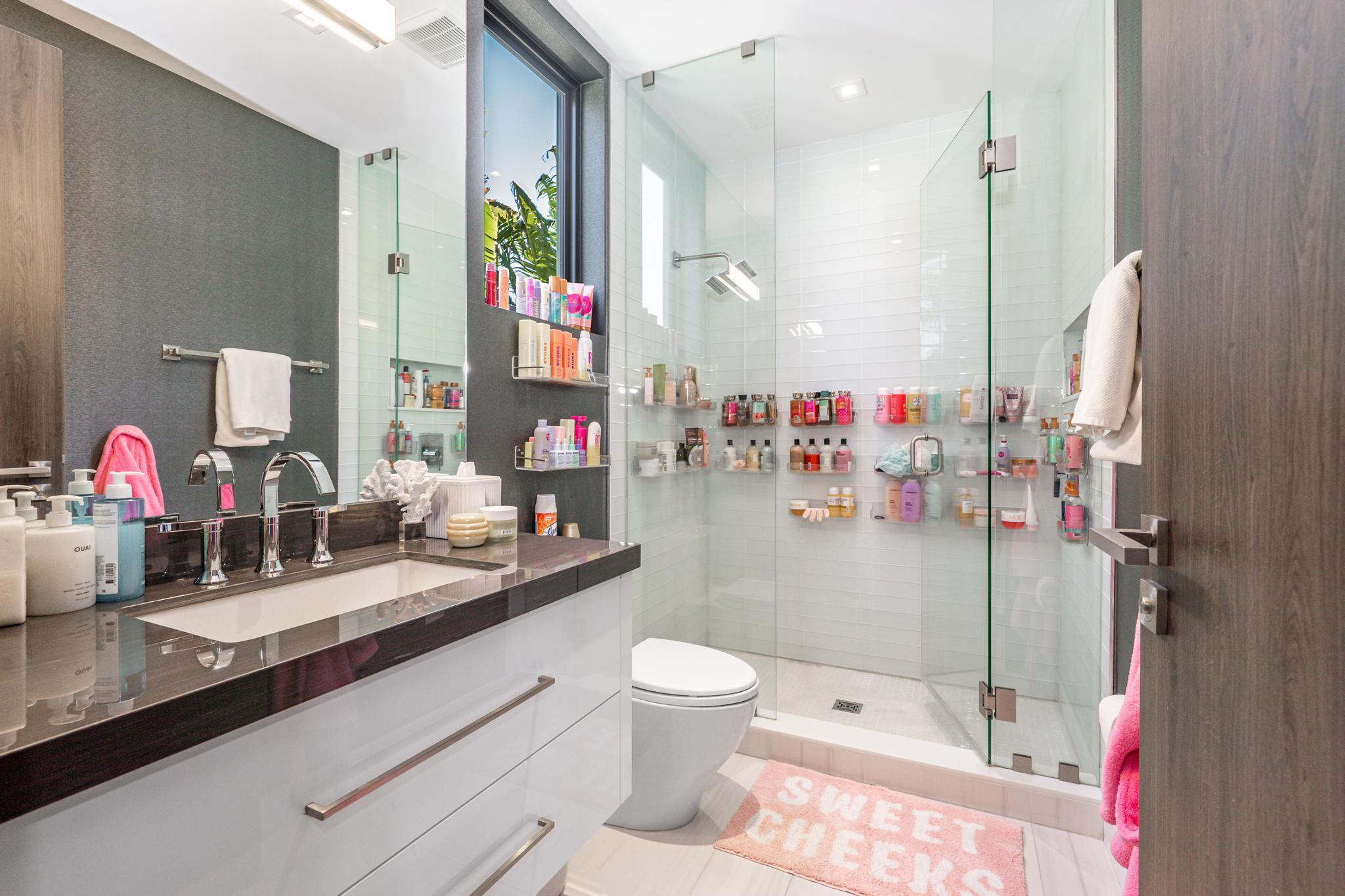 Tucked away on the smallest, most private cul-de-sac in Golden Triangle, a dramatic three story contemporary ultra custom residence is right beside Boca Raton's downtown intracoastal waterway. The sleek, modern facade captivates with bold geometric lines, floor-to-ceiling glass windows, a striking mix of smooth stucco and textured stone accents. The grand entrance, framed by custom glass doors and dark stone cladding, sets the stage for the exquisite interiors .Walking distance to the ocean and downtown Boca. East of NE 5th Ave the main house features a two story great room, open kitchen featuring Sub-Zero and Wolf, MAIN floor primary suite and full en-suite bedroom. The second level features three ensuite bedrooms (one currently used as a loft) a full theater, exercise room and office.