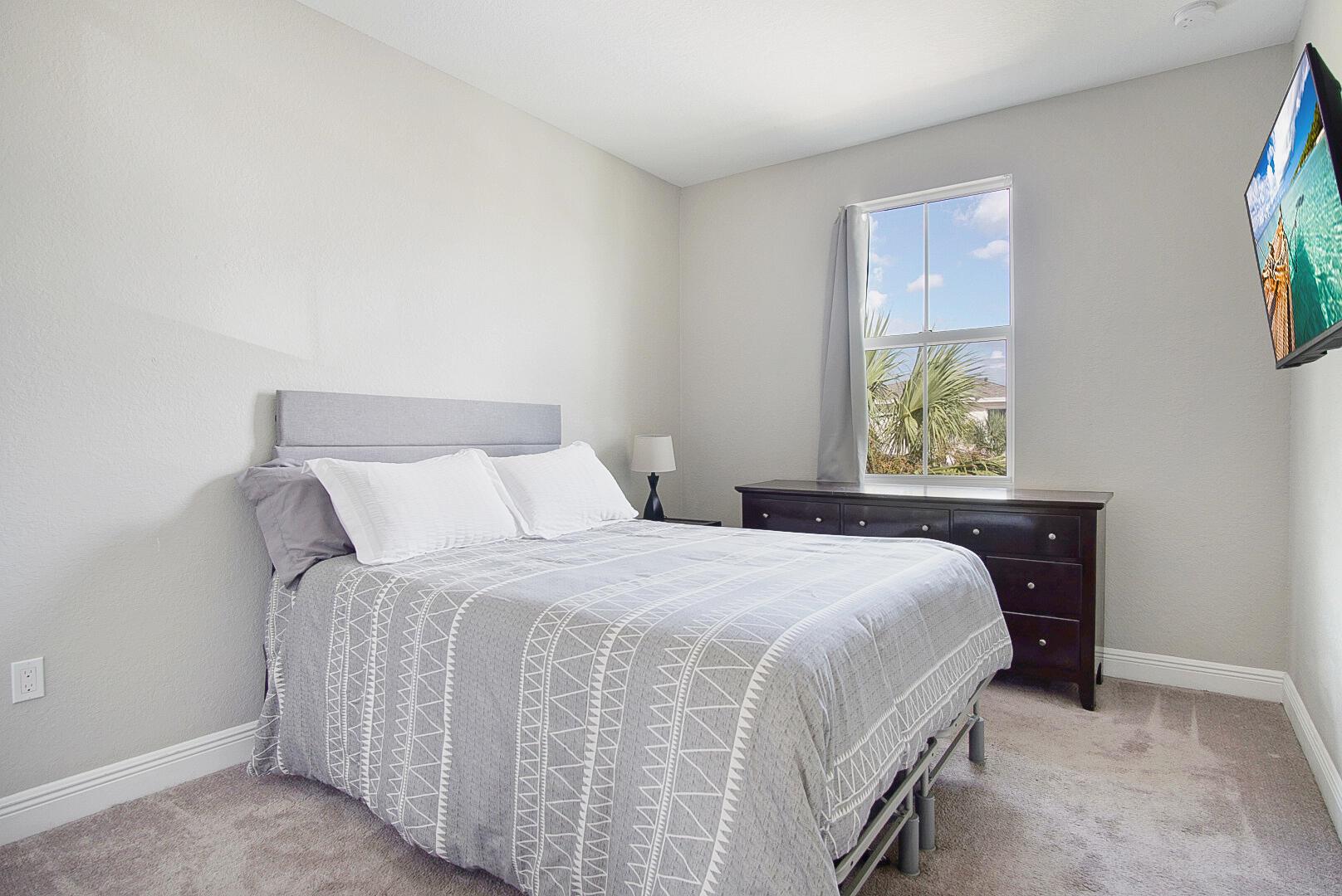 With well over 2000 square feet, this spacious lakefront home is a stunner. Built in 2021, you'll love the wall-to-wall white tile flooring on the main level, granite countertops in the kitchen, and a matching stainless steel appliance package. The open layout allows loads of natural light in, and your backyard views include the lake, a screened patio with paver flooring, black metal fencing, and an oversized paver pad for your hot tub and grilling. The dining and family rooms offer endless space, and 10' ceilings make it feel even larger. Walk upstairs and you'll love the large second family room and 3 bedrooms. The views of the lake from the master bedroom are my favorite, but the massive walk in closet is a close second. The glass front shower is adorned in matching white tile, and
